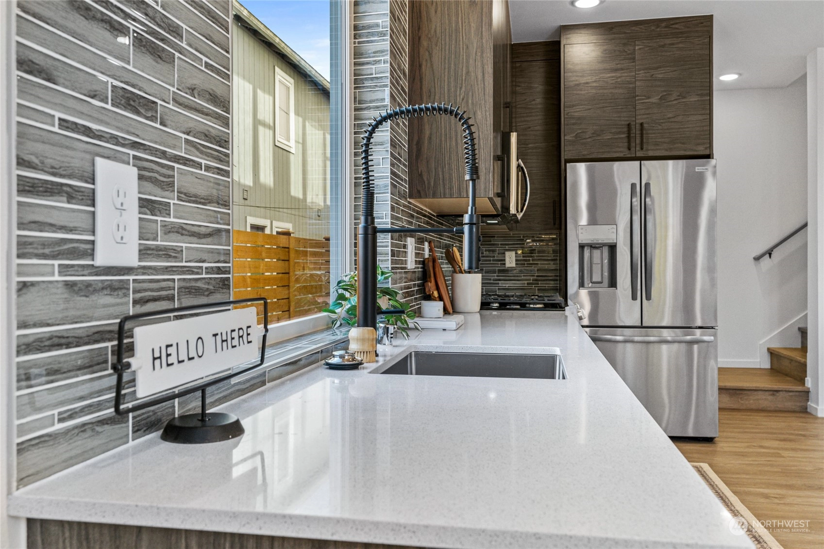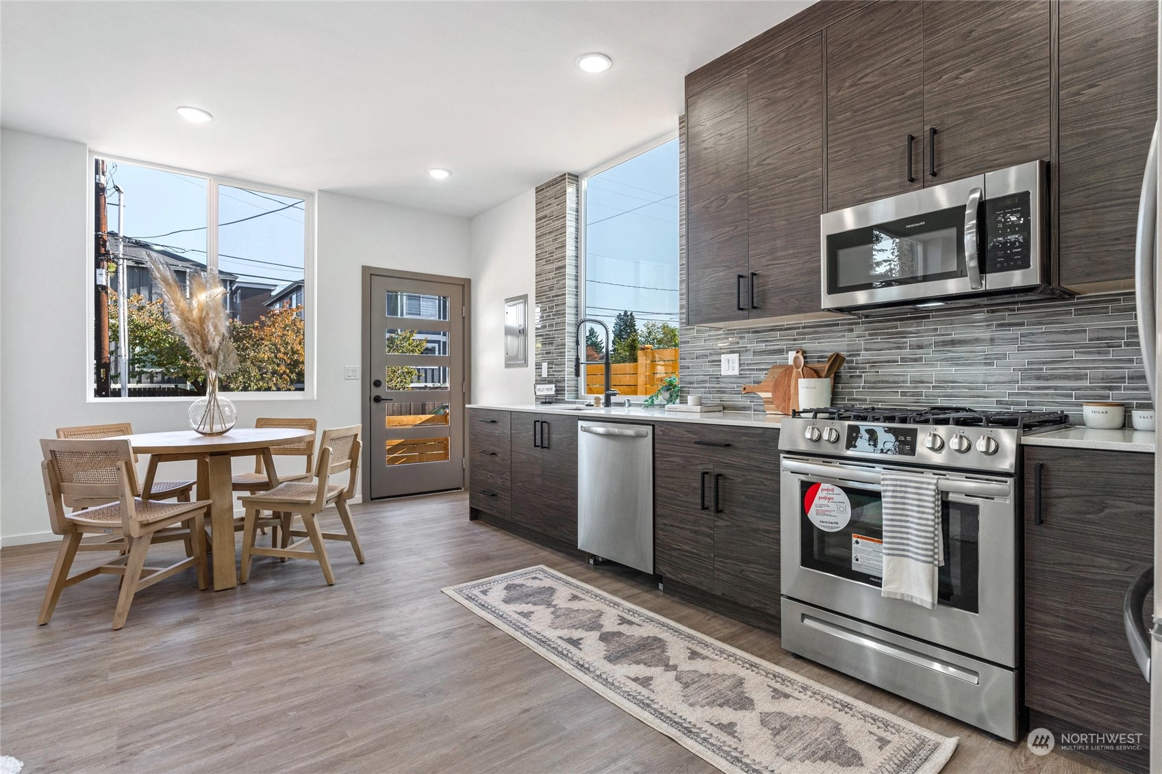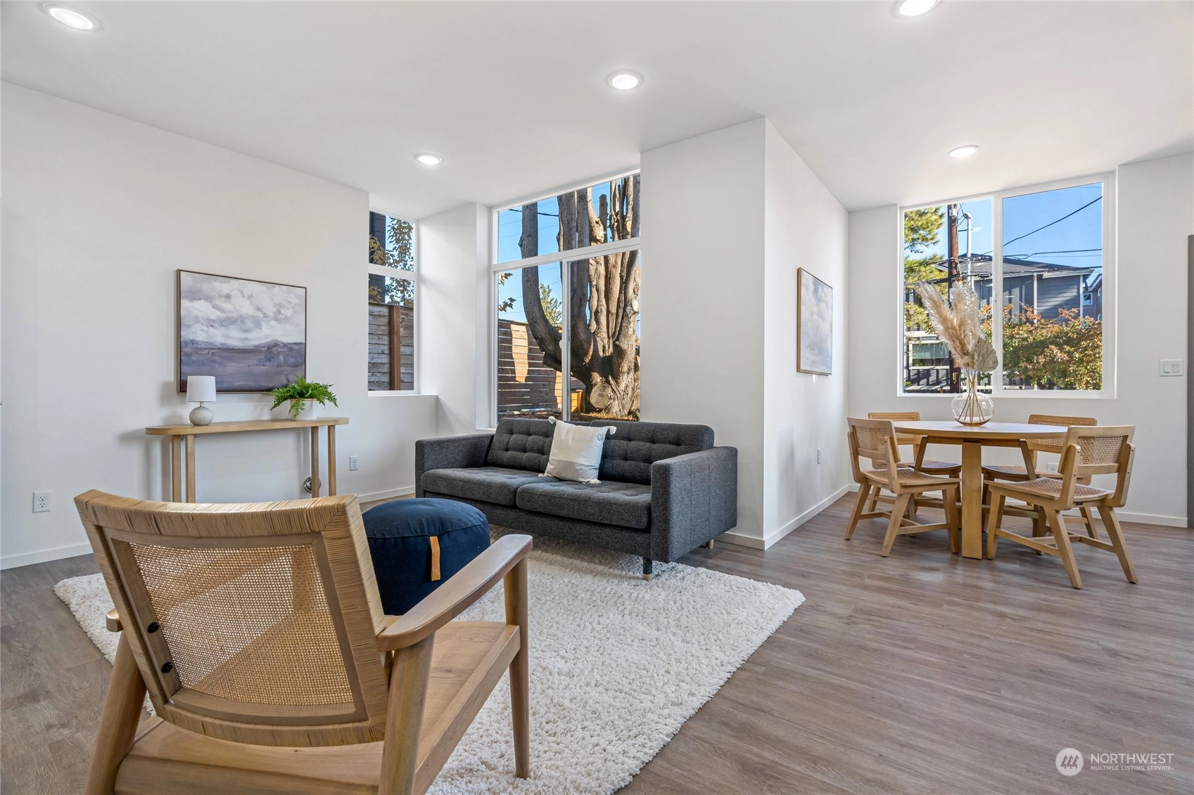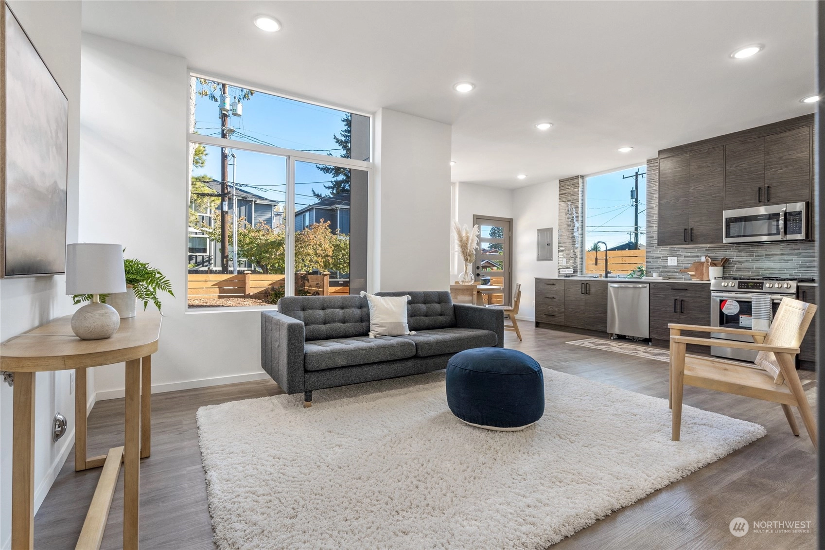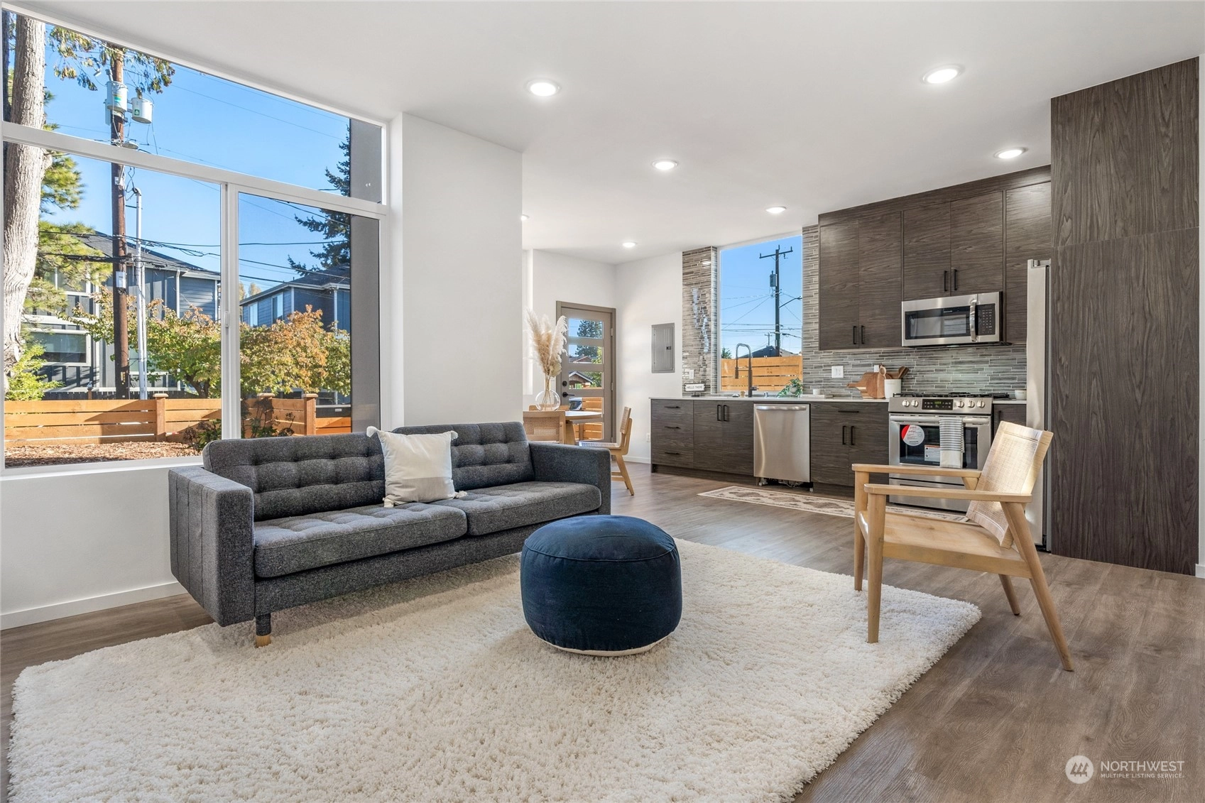 Last home! Don't wait until it's gone...Center of the known universe, (sorry Ballard)! The location you want- the Square Footage you deserve!! Absolutely GORGEOUS- NEW contemporary townhome, (one of four), with ACCESS TO EVERYTHING... Designer fixtures and CUSTOM finishes throughout. Quartz countertops, stainless steel appliances and on demand H20. Entertainment sized ROOF TOP DECK w/gas BBQ hookup! Primary with mini split, walk-in closet and a must see bathroom,(Double Vanity's & HUGE SHOWER). Amazing restaurants/bars, parks, unlimited shopping- all right outside your door... Near bike lanes, transit- new rapid ride and of course easy freeway access. NO HOA DUES!!