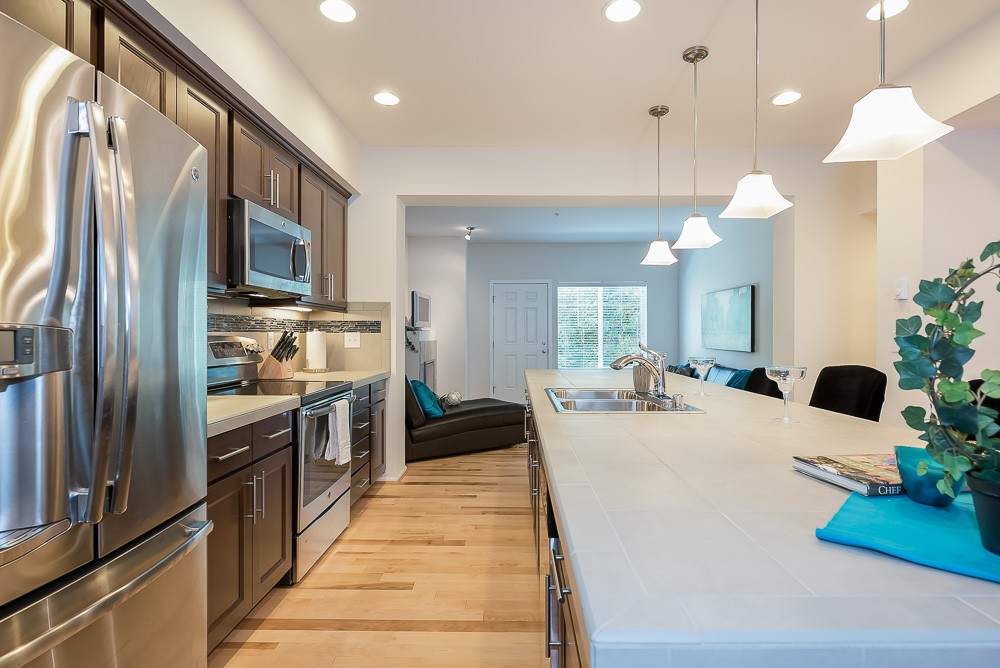 An excellent opportunity to own just over a year old townhome in the lovely Villas at Mondavio community that sits right on Sammamish River trail. This bright and stylish home has modern finishes throughout, open kitchen with lots of cabinets, SS appliances, 2 spacious master suites, tech loft, level entry, & a 2-car tandem garage. Close to sought-after Bella Bottega, Redmond Town Center, bus stop, freeways, Microsoft, and more. Low HOA dues include water/sewer/earthquake ins. No rental cap!