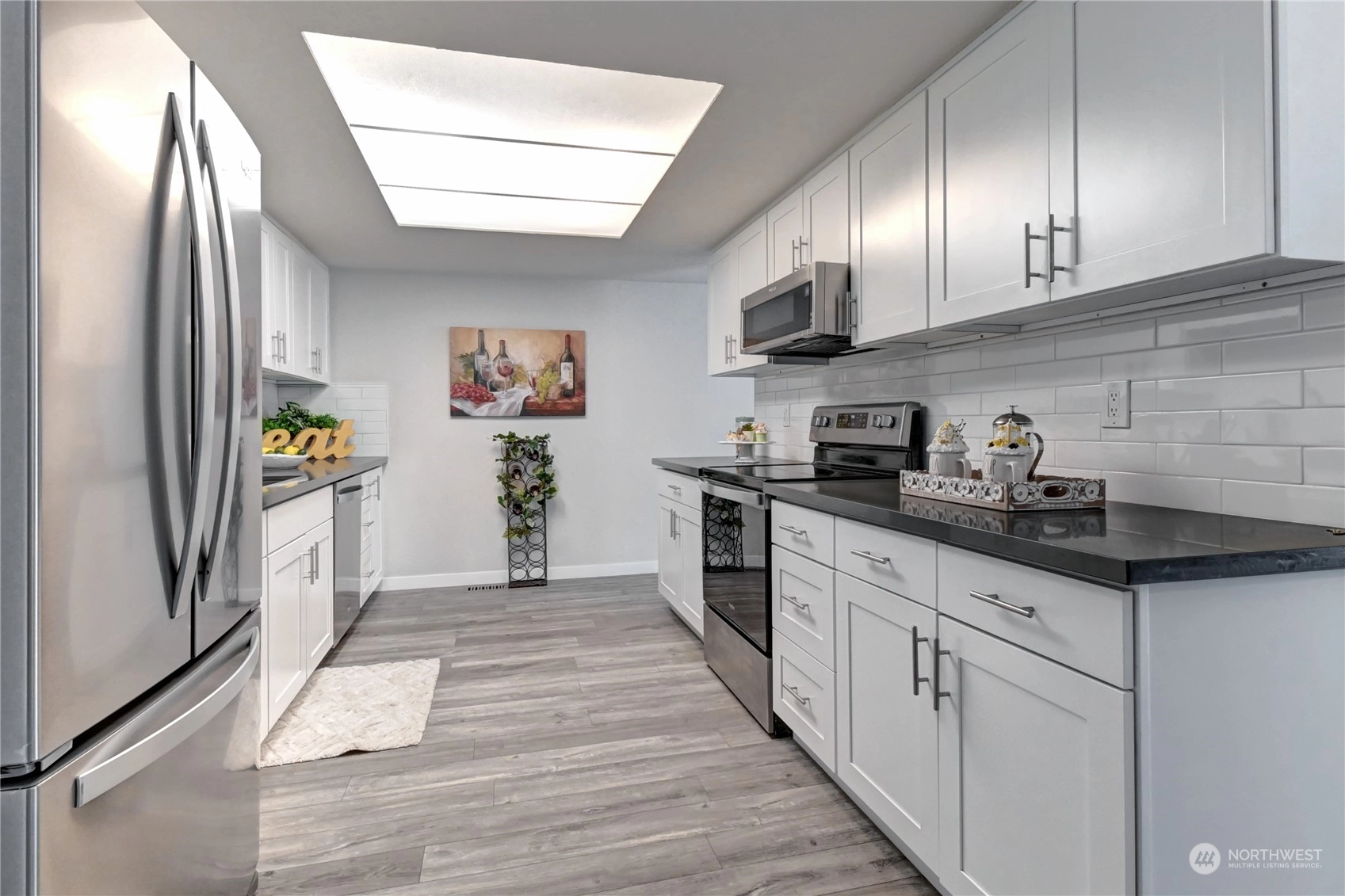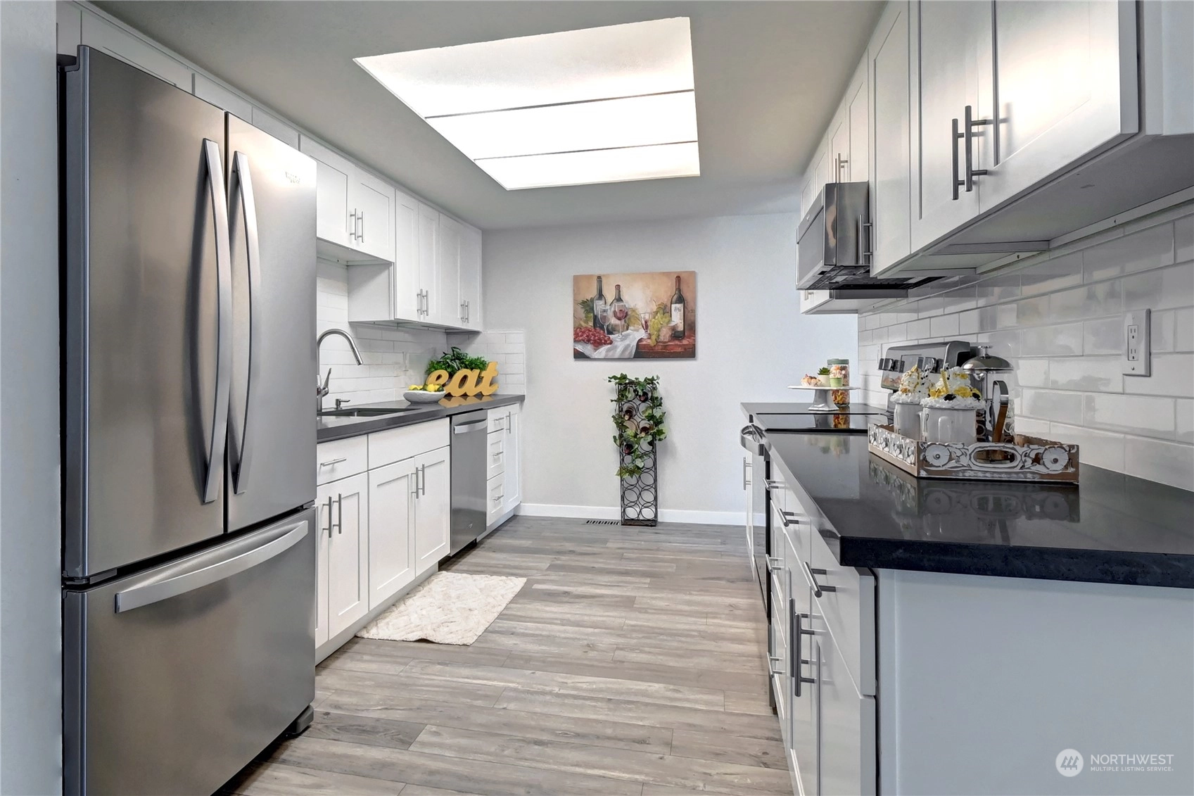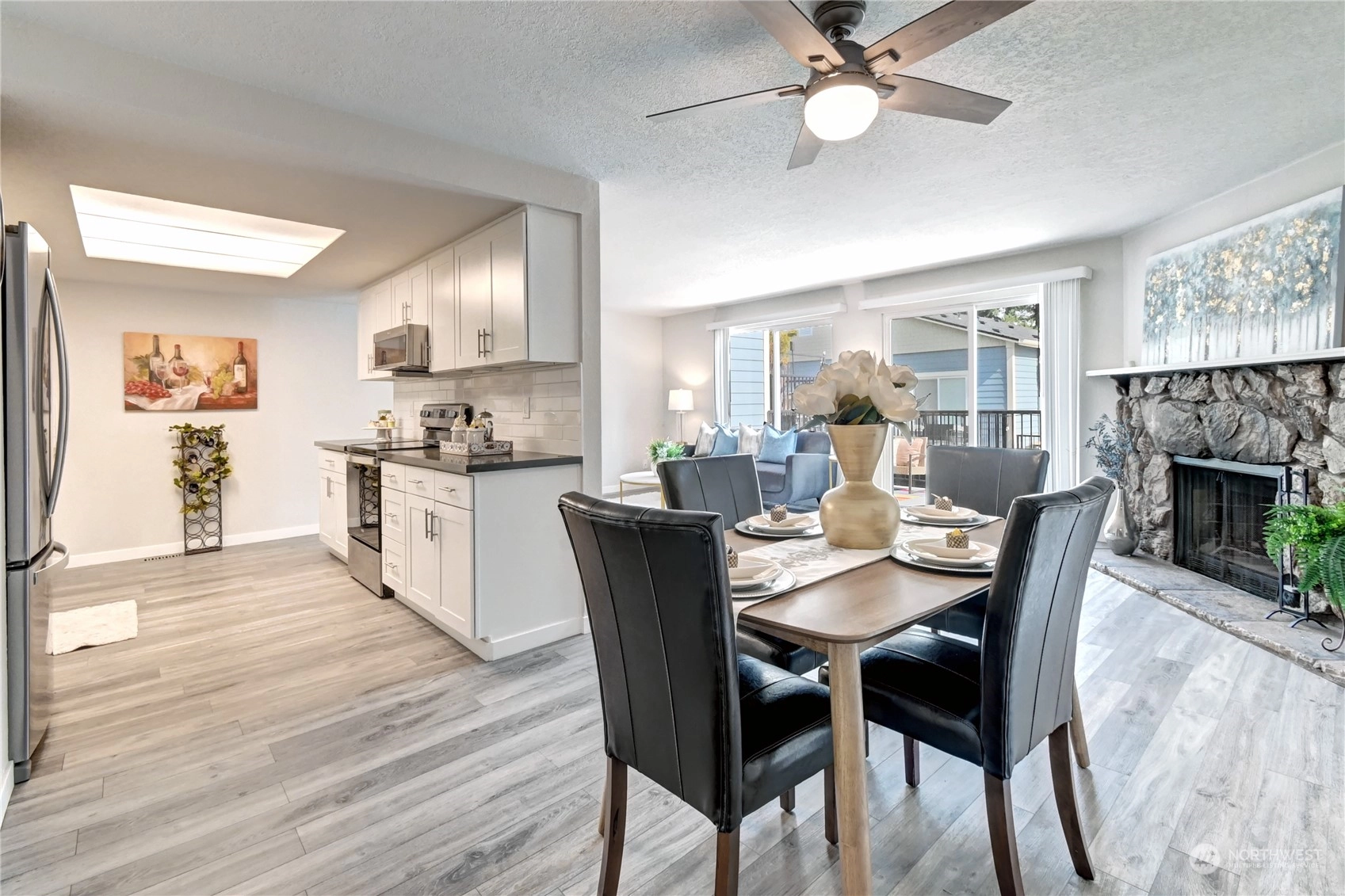 Rare opportunity for beautifully remodeled condo just steps from Juanita Beach Park! Walking distance to beach, dining, shopping. Brand New Chef’s kitchen w/ quartz countertops, ceramic backsplash, custom cabinetry & New SS appliances. New engineered hardwood flooring, millwork & interior paint thruout. Brand new furnace + wood-burning fireplace. New bathroom vanities, toilets & quartz countertops. Entertainment-sized deck. Community Dry Sauna w/ work-out facility & community garden! Pet friendly, no rental cap, no special assessment. Oversized 1 car garage w/ extra storage space + 2nd reserved parking space. New exterior siding, paint & windows in 2015. Water, Sewer & Garbage included in HOA Dues. MOVE IN READY & just minutes from I-405