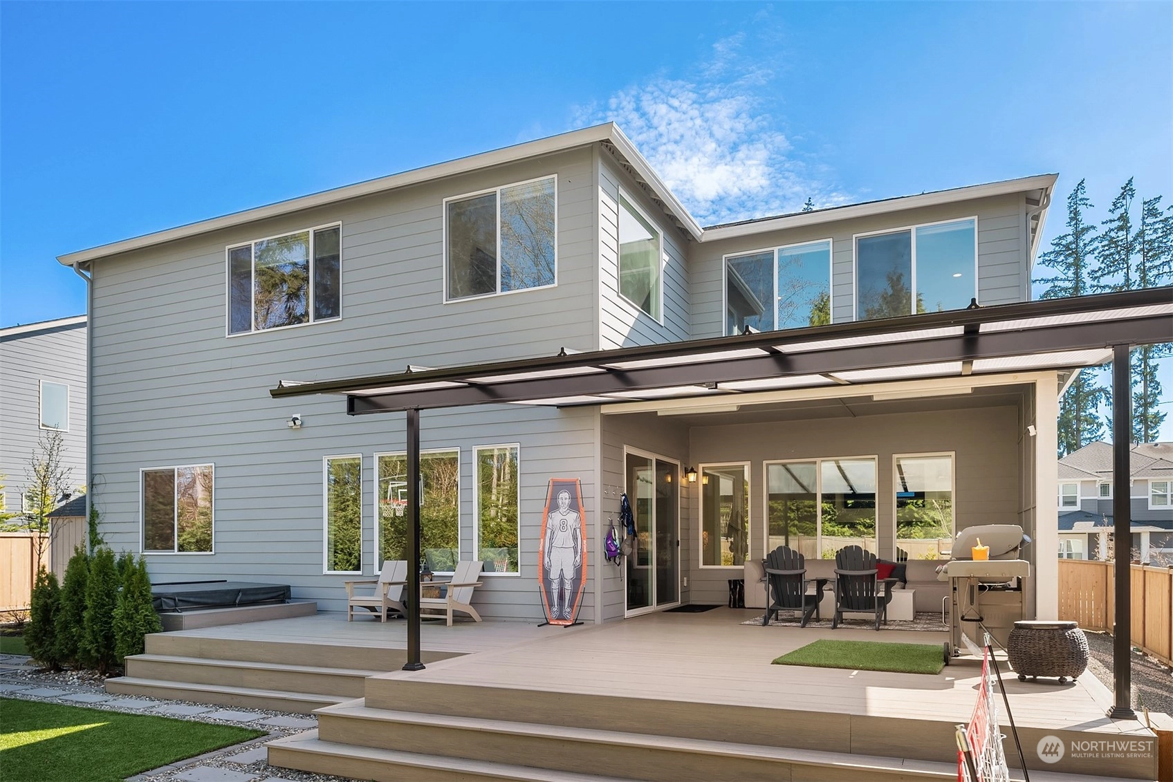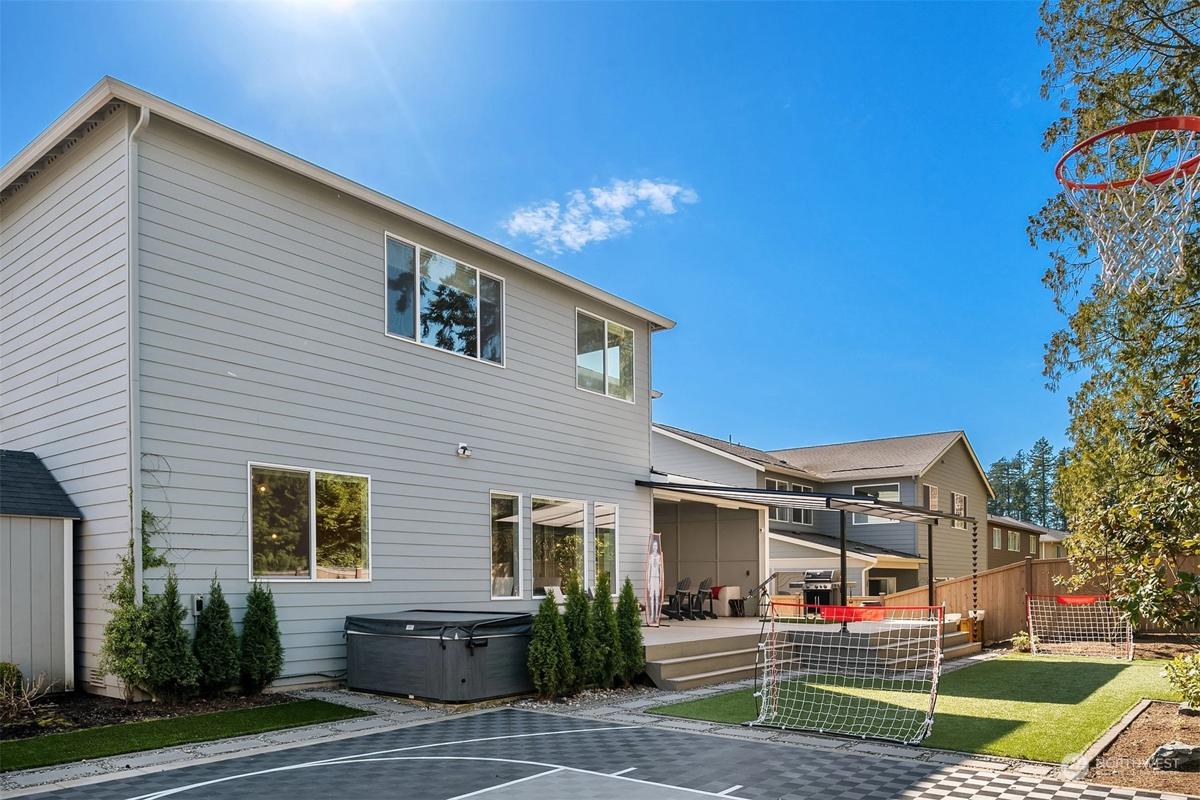 Welcome Home to this Light and Bright treasure at The Meadows at Palm Creek. This gorgeous home features high ceilings, an open Great Room floorplan w/huge Chef's kitchen, KitchenAid appliances & fabulous entertaining spaces. The floorplan is unmatched, w/a bathroom for every bedroom, a massive bonus room, and a two-room guest suite downstairs. Fantastic primary retreat w/5-piece en suite, 2 walk-in closets & bonus space. Extraordinary covered & heated outdoor entertaining spaces & private backyard includes competitive soccer turf, sport court w/basketball hoop plus tropical blooms. The deck has large gas fire-pit & hot tub. Double tankless water heaters, Phenomenal newer schools, close to trails, easy commute & more. Don't miss this home!
