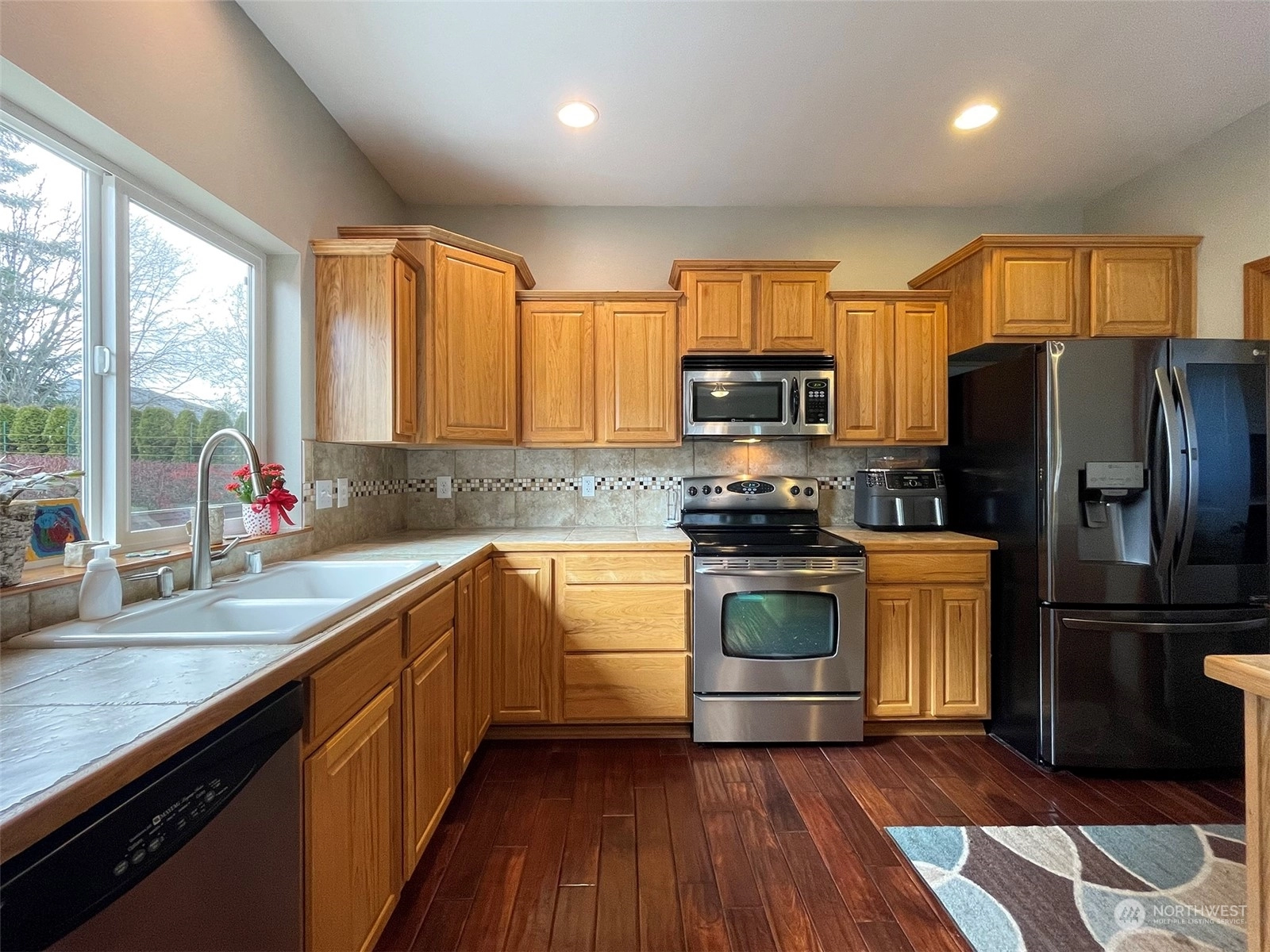 Make yourself at home in this contemporary 2 story located in a great neighborhood on a quiet cul-de-sac. This one owner home has had some incredible improvements over the years. In addition to the forced air furnace, ductless heat pumps were added to each level to keep the home cozy warm in winter and oh so cool in the summer. Main level features engineered hardwood, formal dining room, living room open to the kitchen with breakfast bar. Upstairs features w/w carpet, rec room with propane fireplace and 3 bedrooms. The primary bedroom features include a walk-in closet, separate soak tub with water view, separate shower and tile floors. The underground sprinkler system makes having the best yard in the neighborhood a breeze.