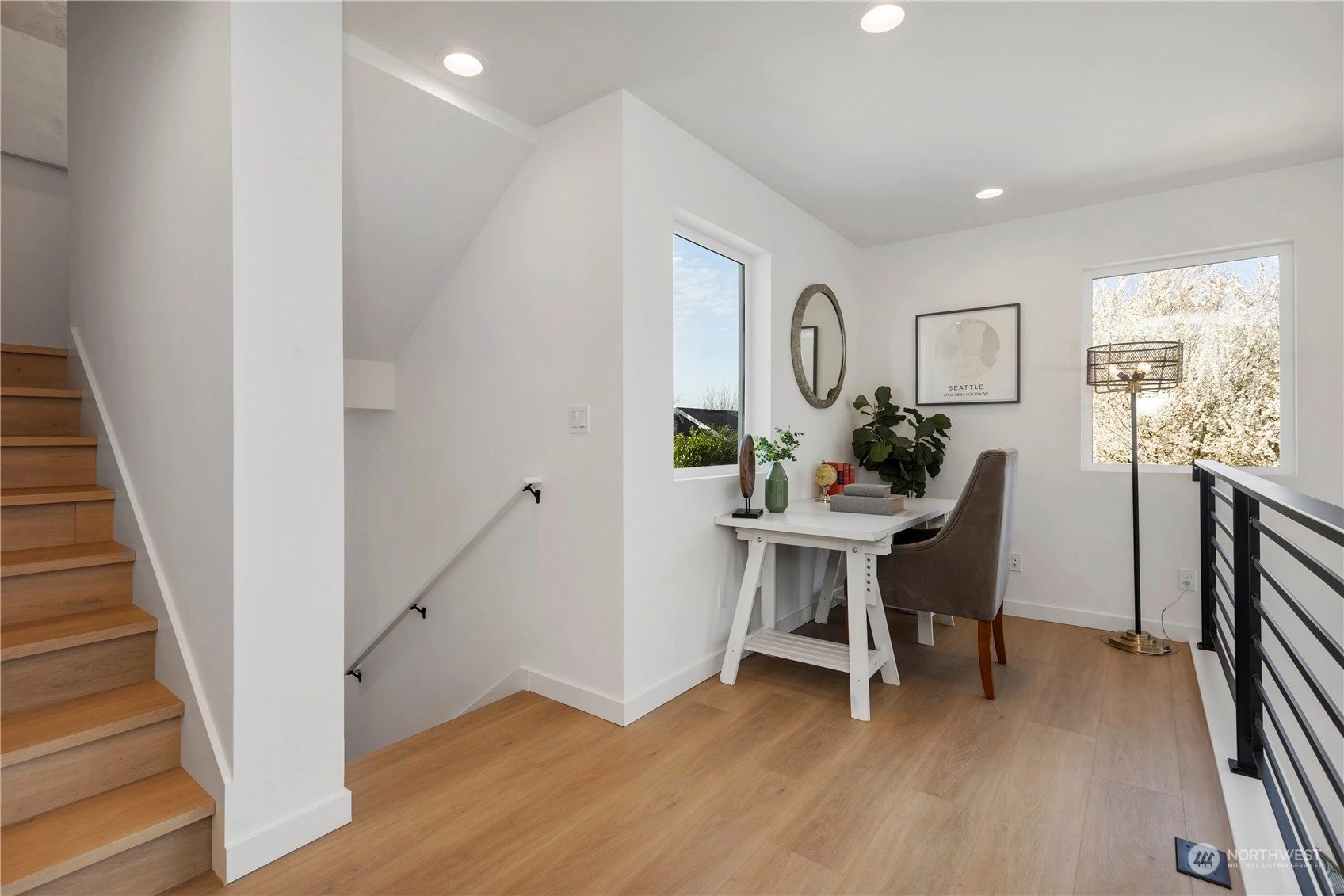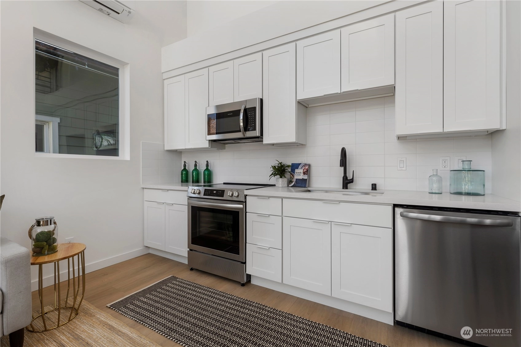 Brand new construction townhome in the heart of the Morgan Junction neighborhood with sound and mountain views! Enter into the main level featuring open kitchen & living space with SS appliances, custom cabinets, quartz counters & hardwood floors. Open mezzanine level above main floor perfect for office or even a sizable dining area. 2 bdrms & full bath on 3rd level with w/d hookups in hall closet. Spacious primary suite on top level includes heated bathroom floor. Entertain & wow your friends on the rooftop deck with gorgeous sunsets & views. Ext storage space. Just steps to grocery, restaurants, bars, gym, coffee & transit. No HOA's. Photos of model Unit A.