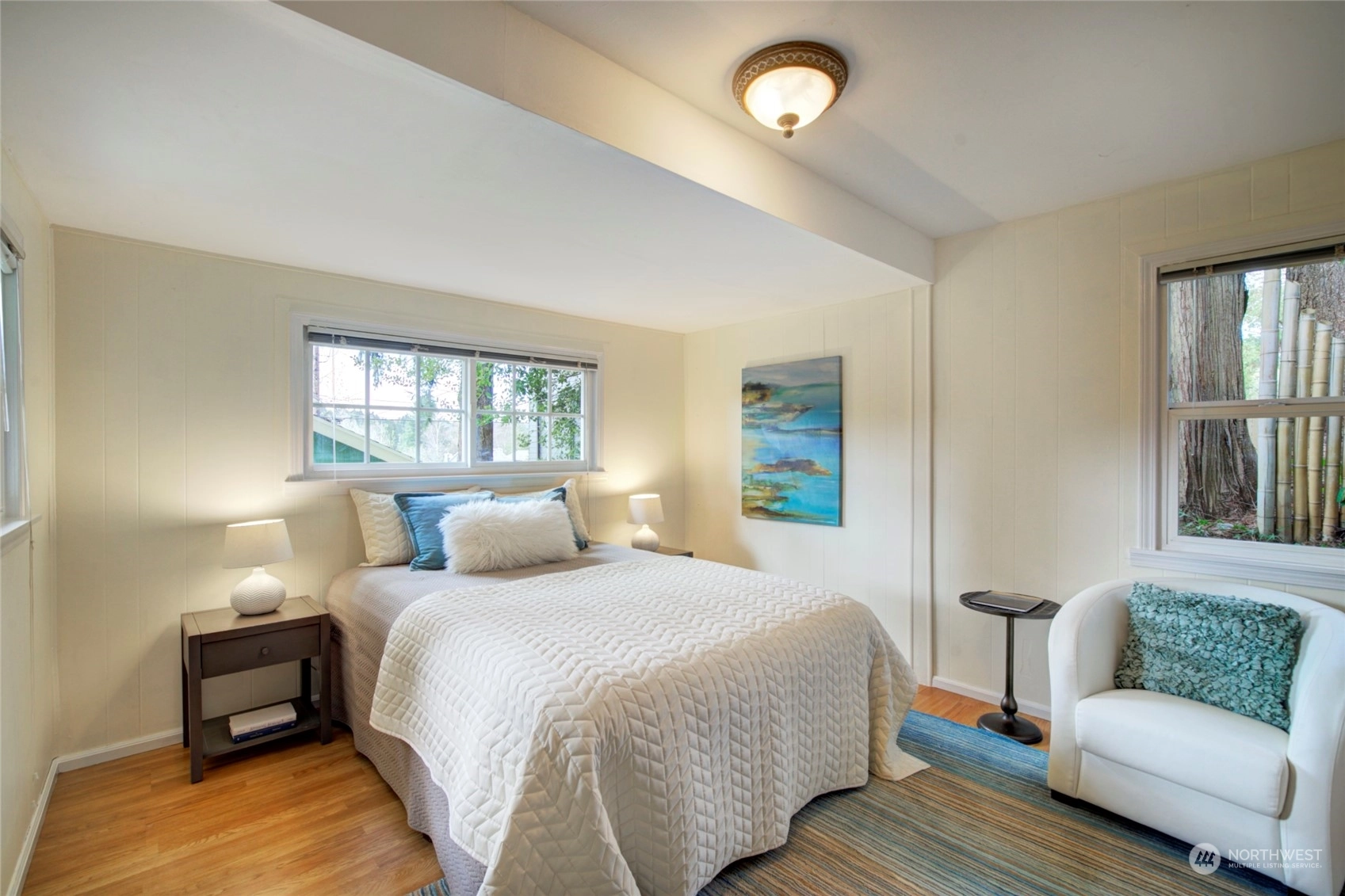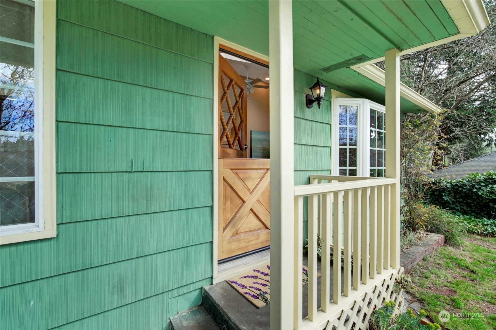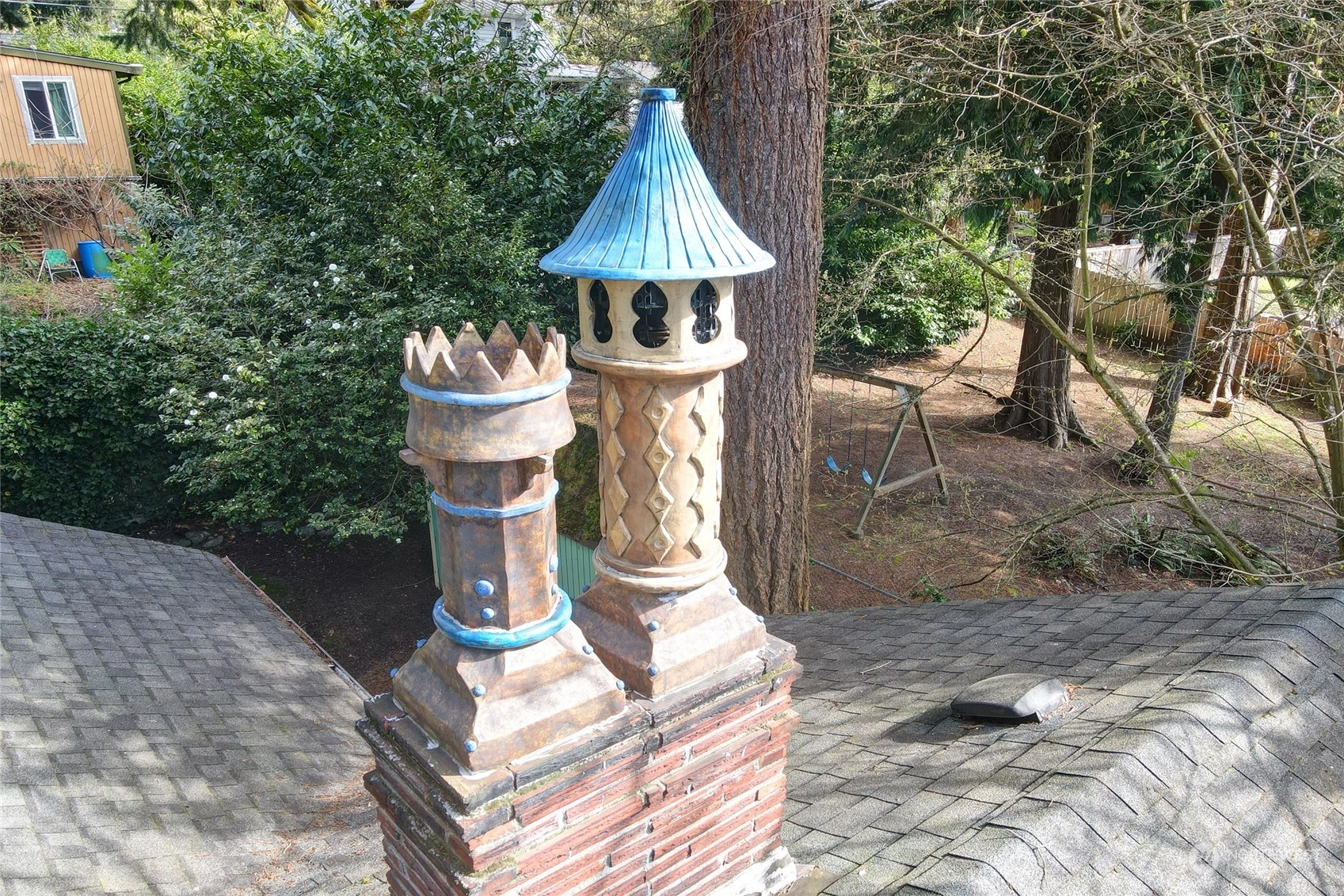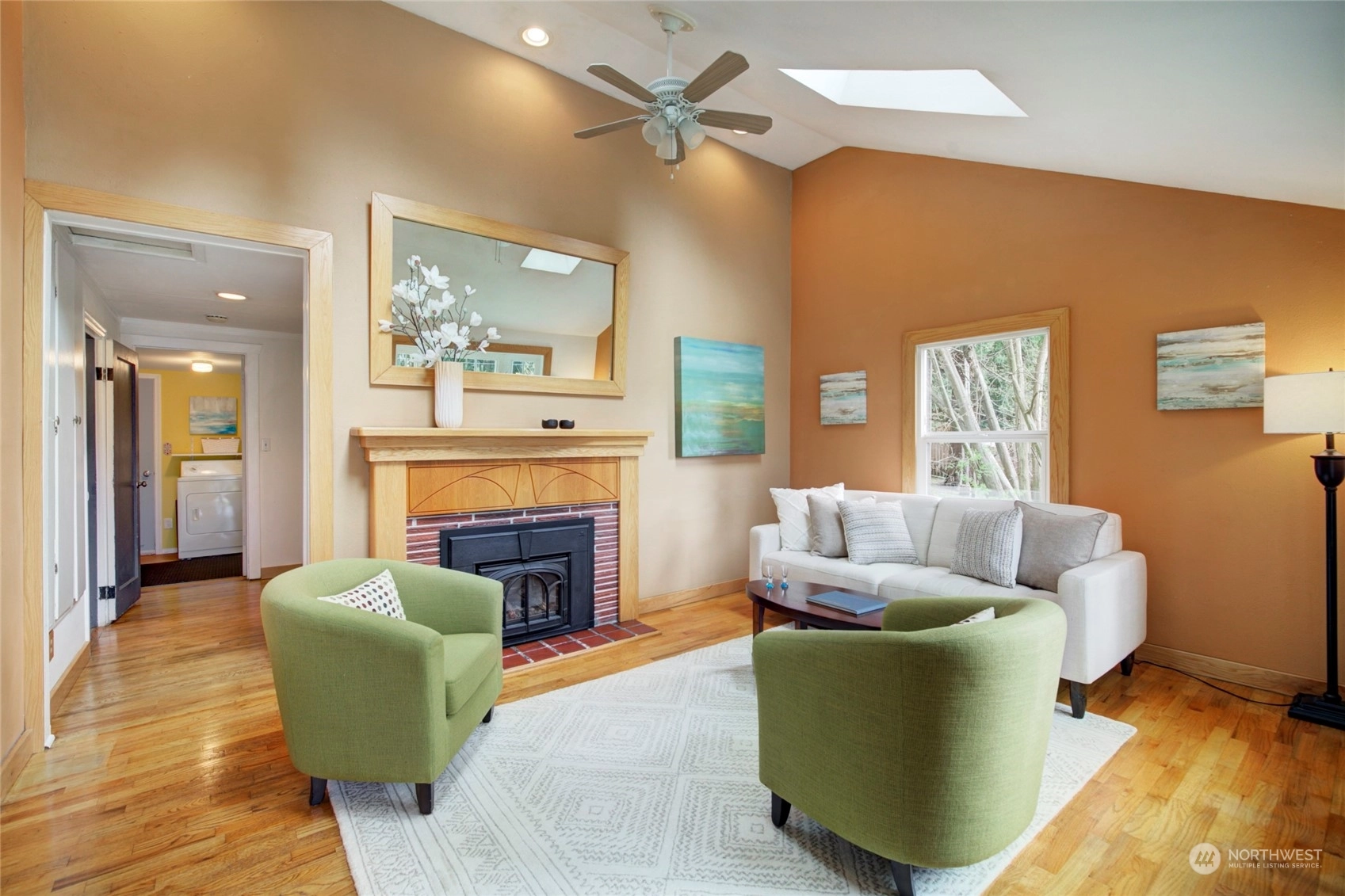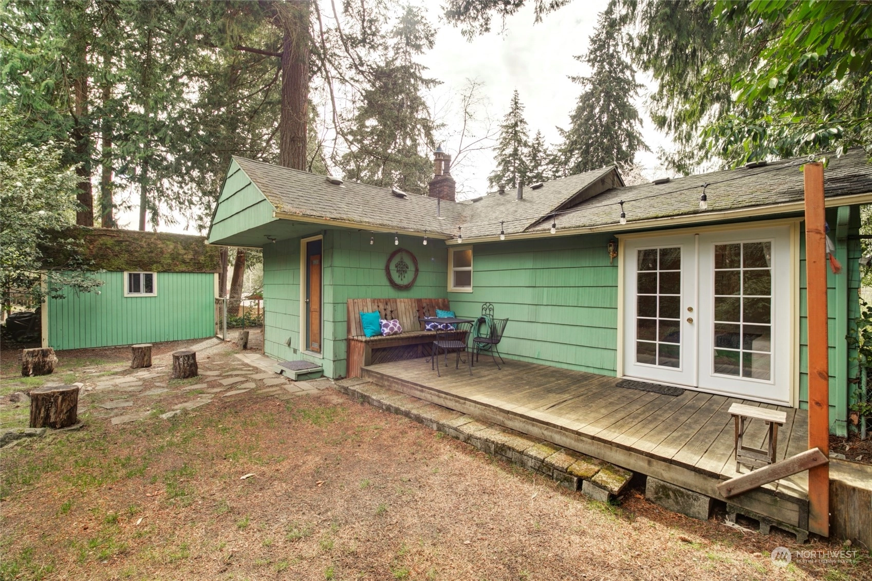 Delightful artist's cottage nestled in a lovingly landscaped yard in quiet neighborhood. Whimsical touches throughout. Two decks, one in front, one off back bedroom. Gorgeous living room with vaulted ceiling, gas fireplace, country bay window, skylight & freshly refinished oak floors. Big kitchen w/generous dining area, built-in sideboard, mullion window, vaulted ceiling. Three bedrooms & full bath. Private views from every window. Large laundry/utility room. Double-pane windows throughout. Custom detached oversized garage w/room for a vehicle plus motorcycles, plus tons of storage. Separate shed in back yard for gardening equipment, snowboards, skis, bicycles & more. Truly a delightful home, bathed in light, comfortable, solid & private.