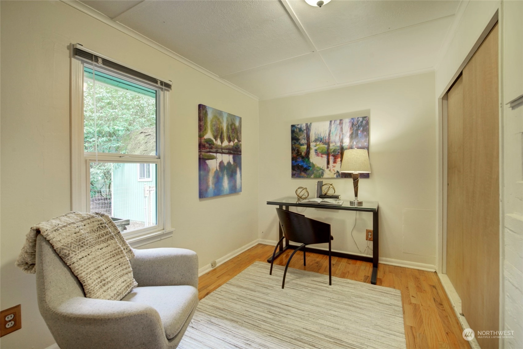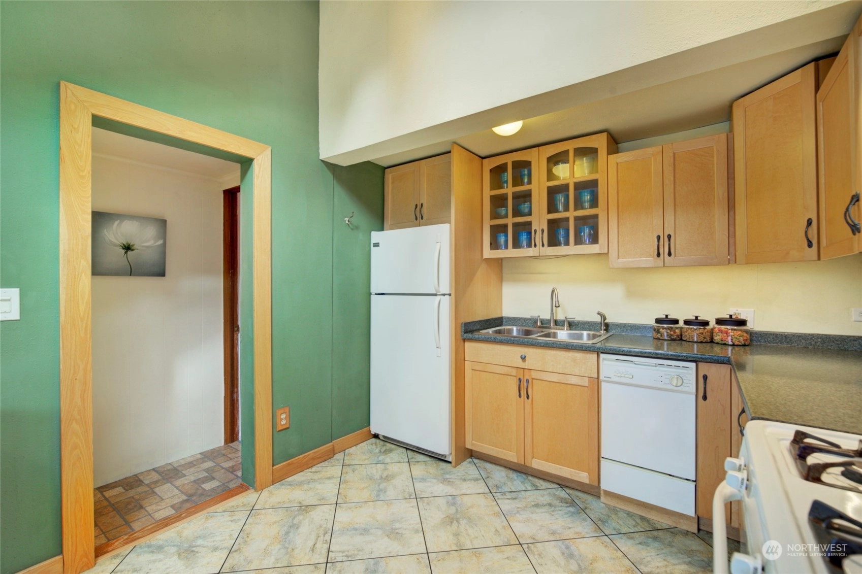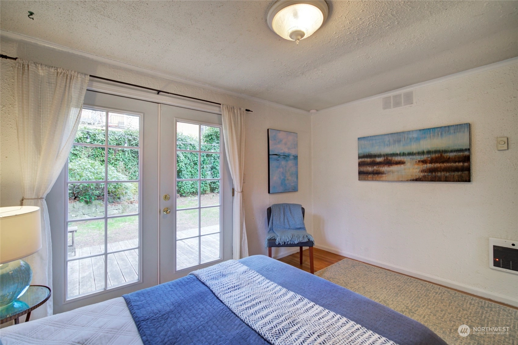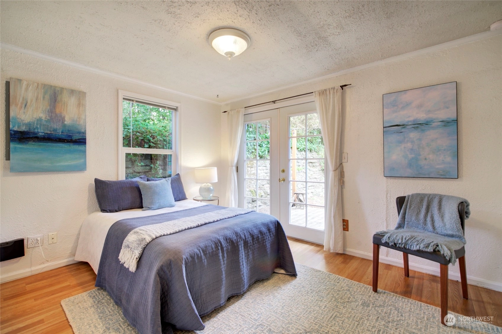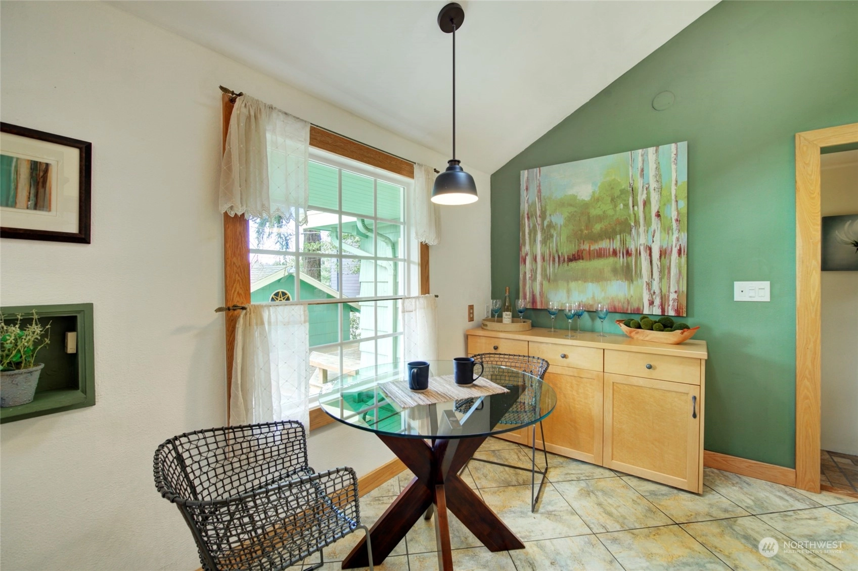 Delightful artist's cottage nestled in a lovingly landscaped yard in quiet neighborhood. Whimsical touches throughout. Two decks, one in front, one off back bedroom. Gorgeous living room with vaulted ceiling, gas fireplace, country bay window, skylight & freshly refinished oak floors. Big kitchen w/generous dining area, built-in sideboard, mullion window, vaulted ceiling. Three bedrooms & full bath. Private views from every window. Large laundry/utility room. Double-pane windows throughout. Custom detached oversized garage w/room for a vehicle plus motorcycles, plus tons of storage. Separate shed in back yard for gardening equipment, snowboards, skis, bicycles & more. Truly a delightful home, bathed in light, comfortable, solid & private.