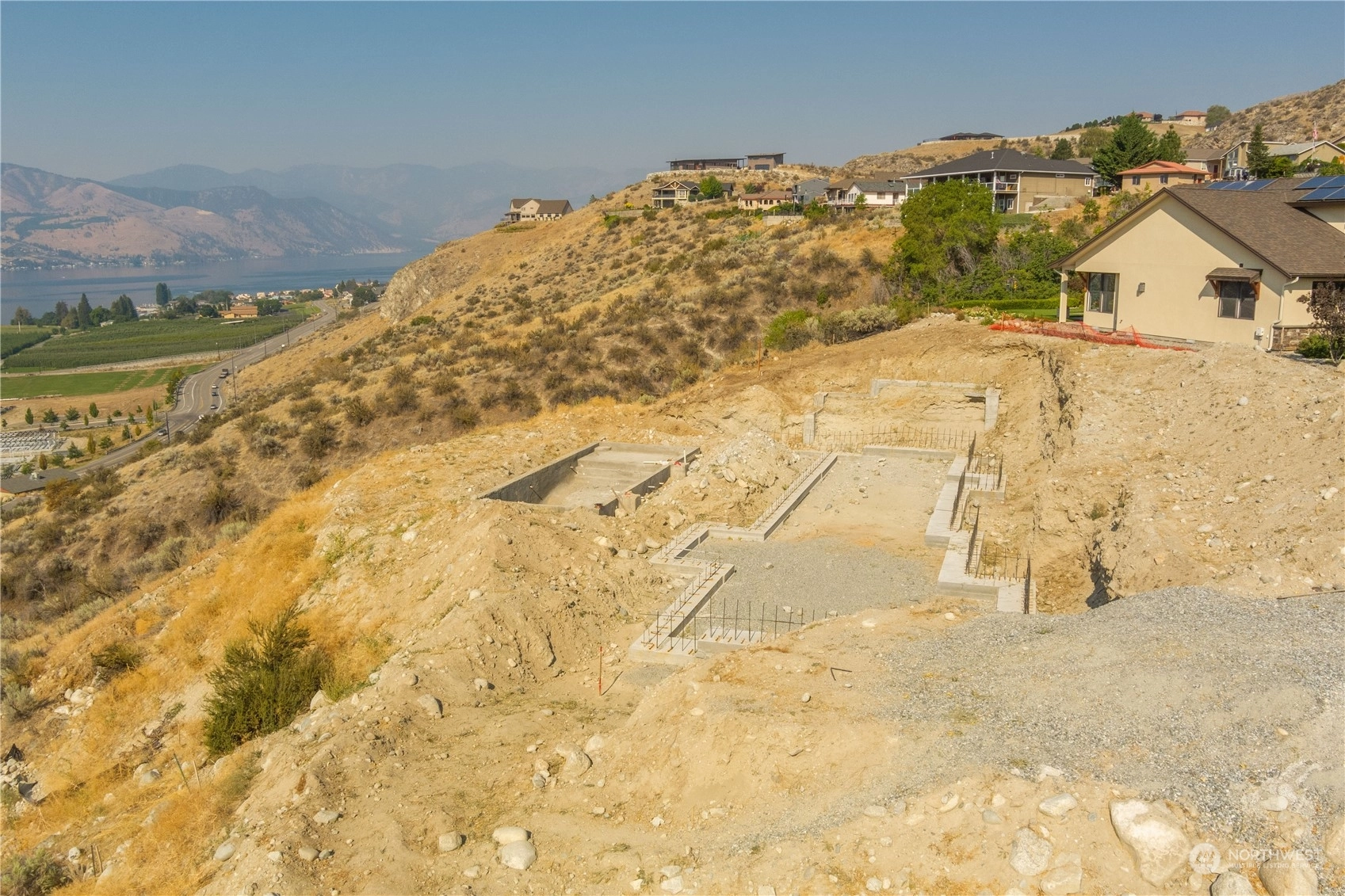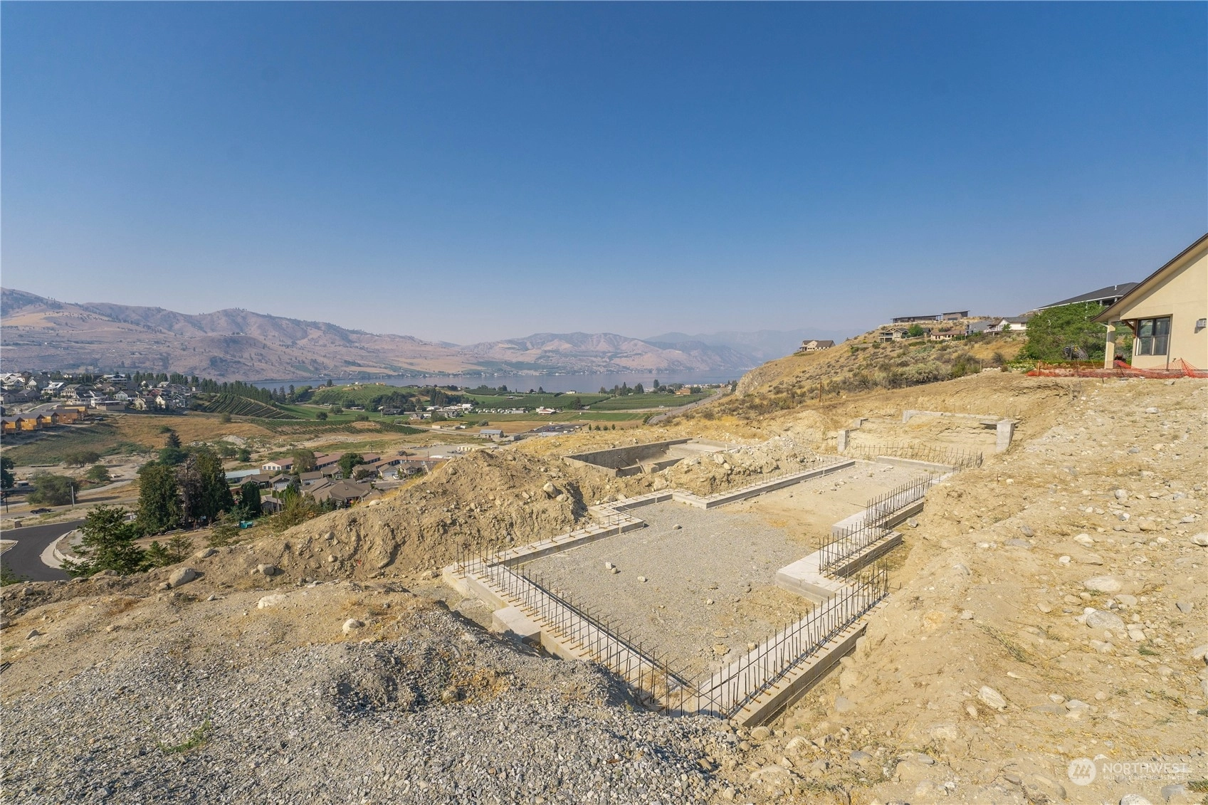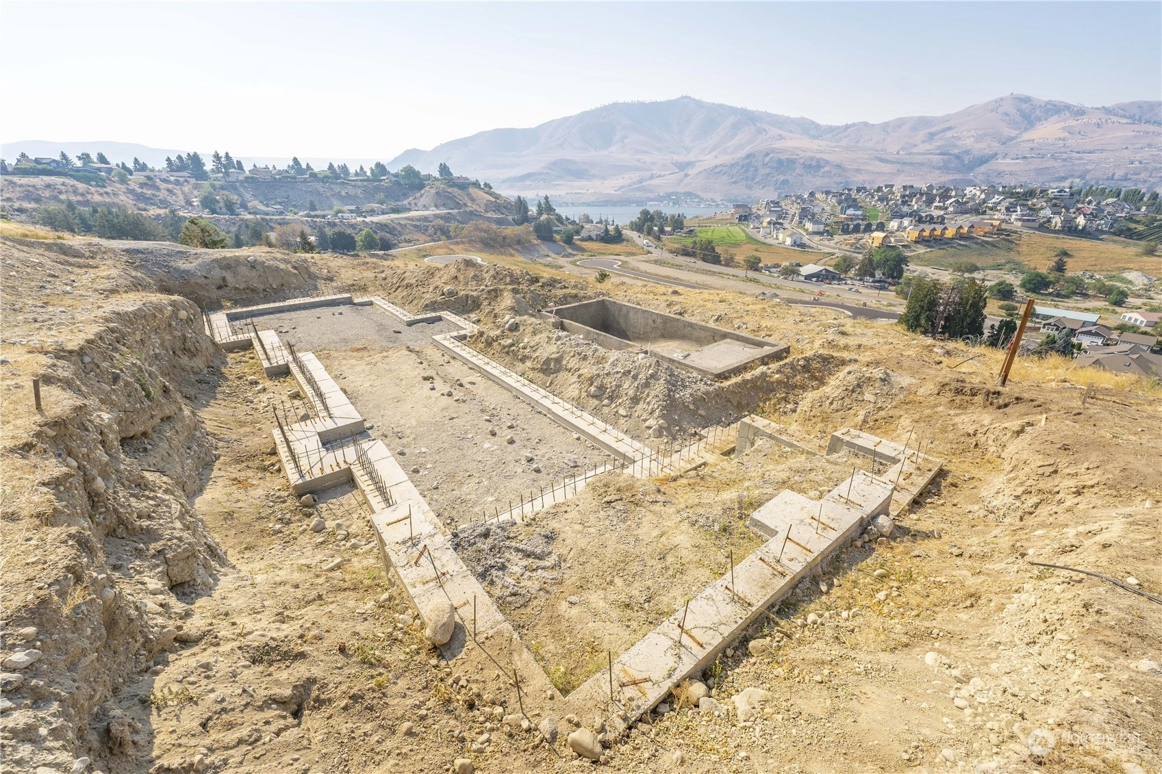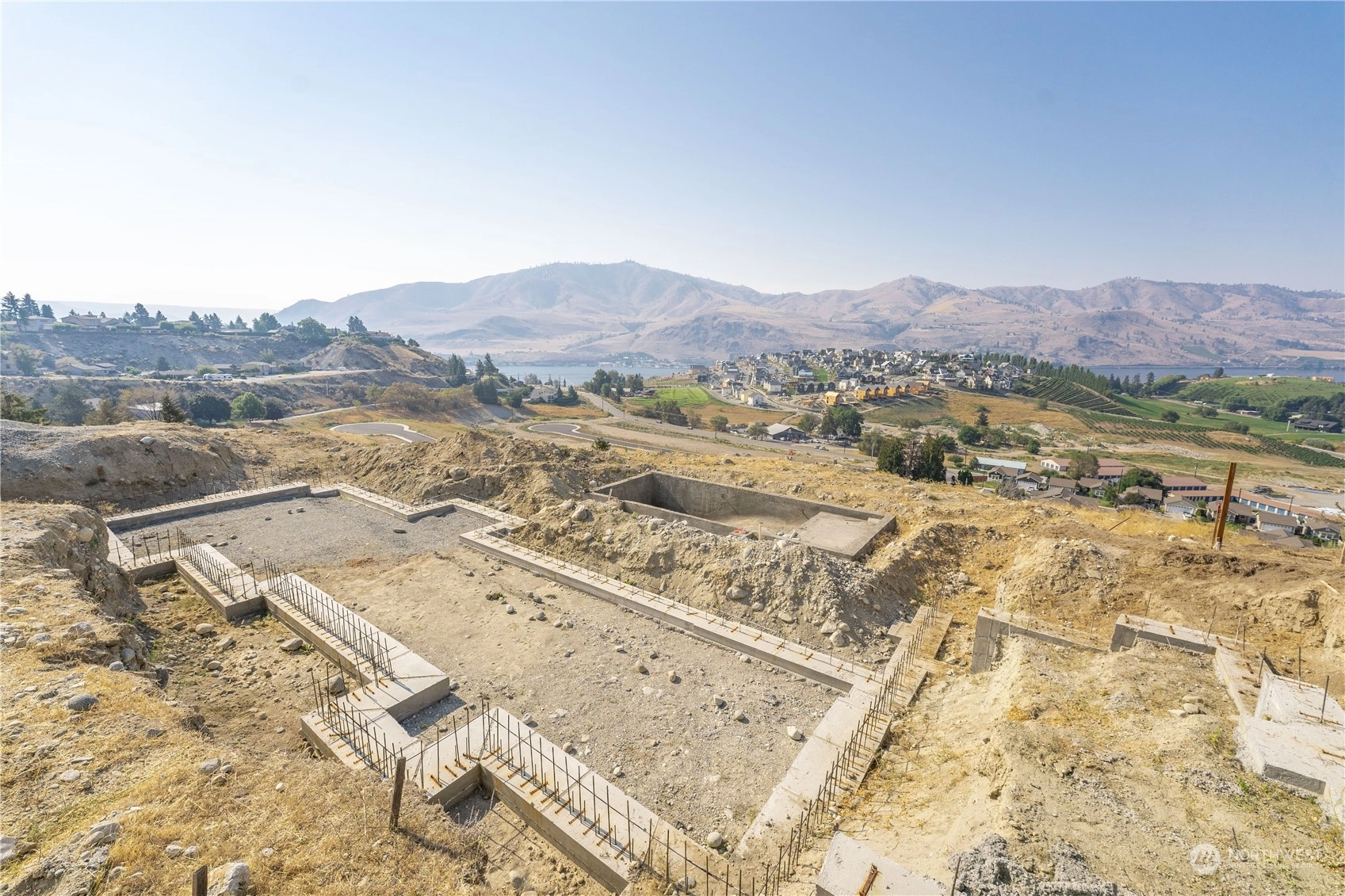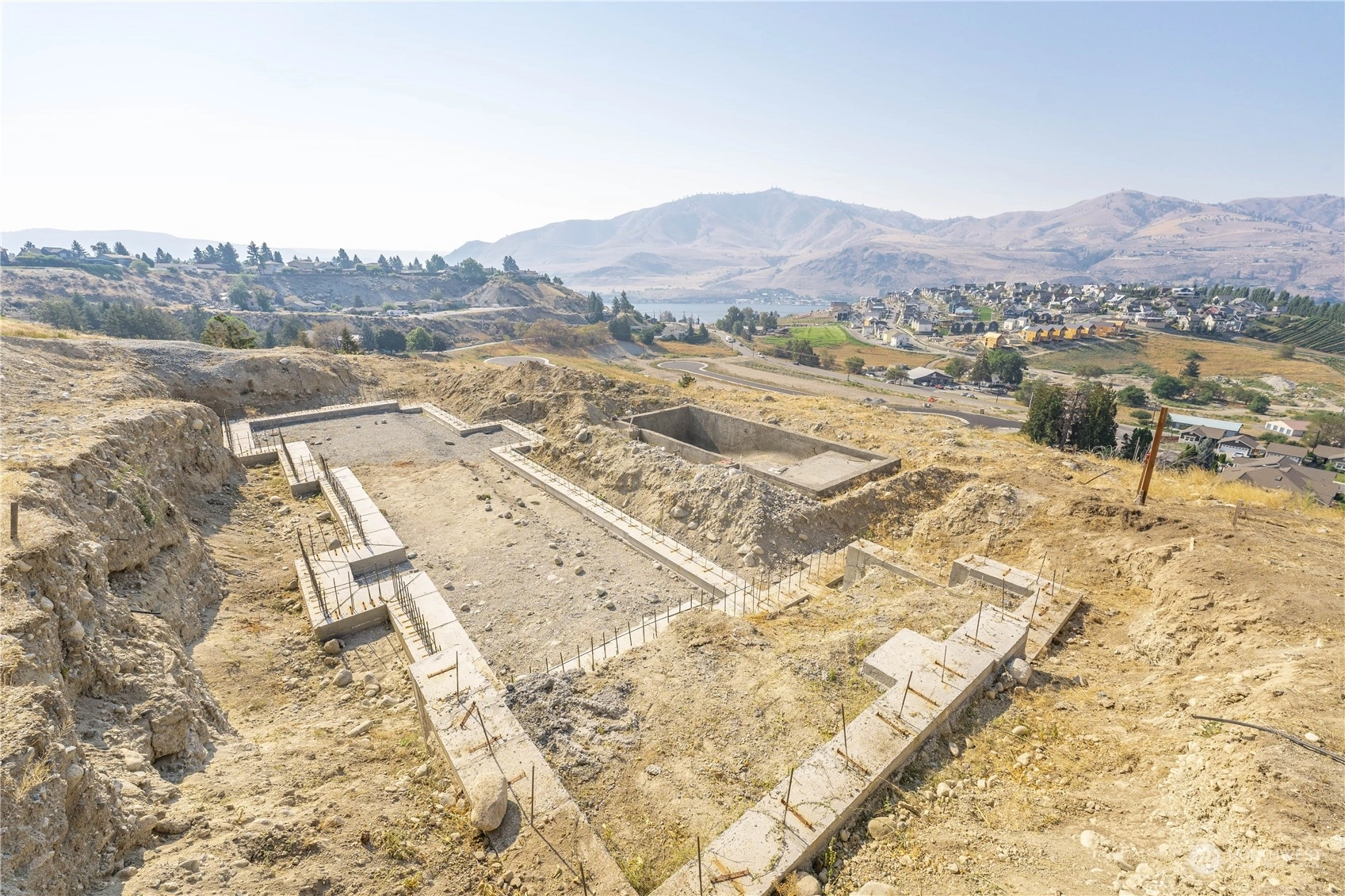 Fantastic opportunity to build your dream home overlooking beautiful Lake Chelan. 134 Hillcrest Pl. is a 1/2+ acre lot w/ unobstructed Lake views & close proximity to downtown Chelan, the golf course & access to the Lake. Most of the hassle of building a home has been taken care of, the owners have paid for utility hook-ups, geotech study, building plans/permitting, excavation, as well as extensive foundation construction & swimming pool installation. Find a good builder & get right to work on finishing the project. Permitted plans for a 4 bed/ 3.5 bath home are included, with 2,669 sqft of living space, two primary suites, a lower & upper garage, with a daylight basement that opens up to a luxurious swimming pool. Great location & value!