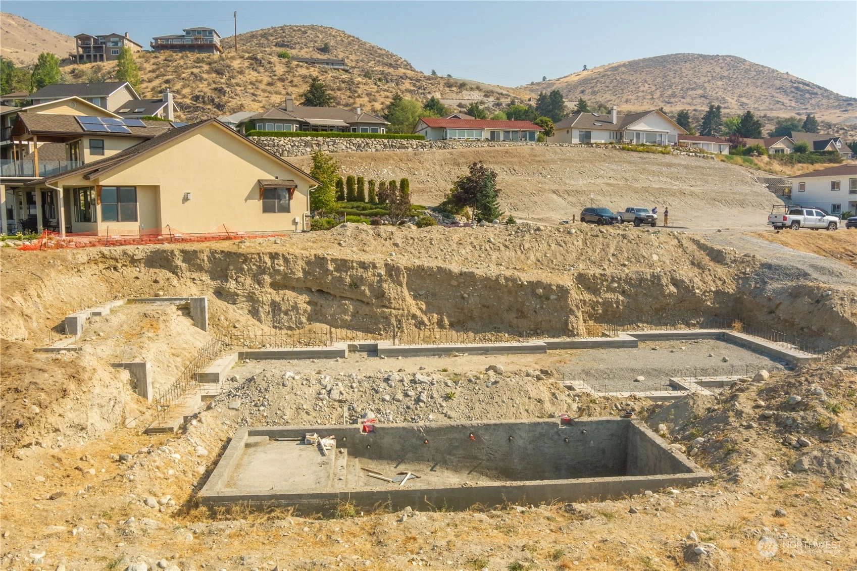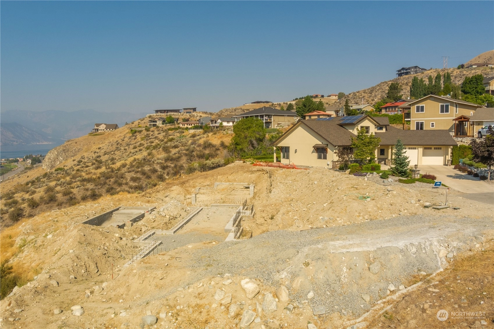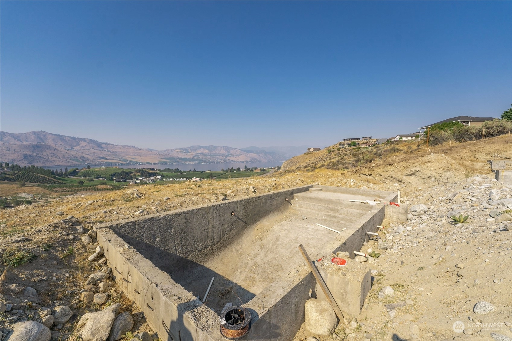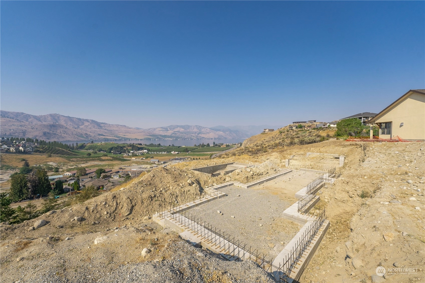 Fantastic opportunity to build your dream home overlooking beautiful Lake Chelan. 134 Hillcrest Pl. is a 1/2+ acre lot w/ unobstructed Lake views & close proximity to downtown Chelan, the golf course & access to the Lake. Most of the hassle of building a home has been taken care of, the owners have paid for utility hook-ups, geotech study, building plans/permitting, excavation, as well as extensive foundation construction & swimming pool installation. Find a good builder & get right to work on finishing the project. Permitted plans for a 4 bed/ 3.5 bath home are included, with 2,669 sqft of living space, two primary suites, a lower & upper garage, with a daylight basement that opens up to a luxurious swimming pool. Great location & value!