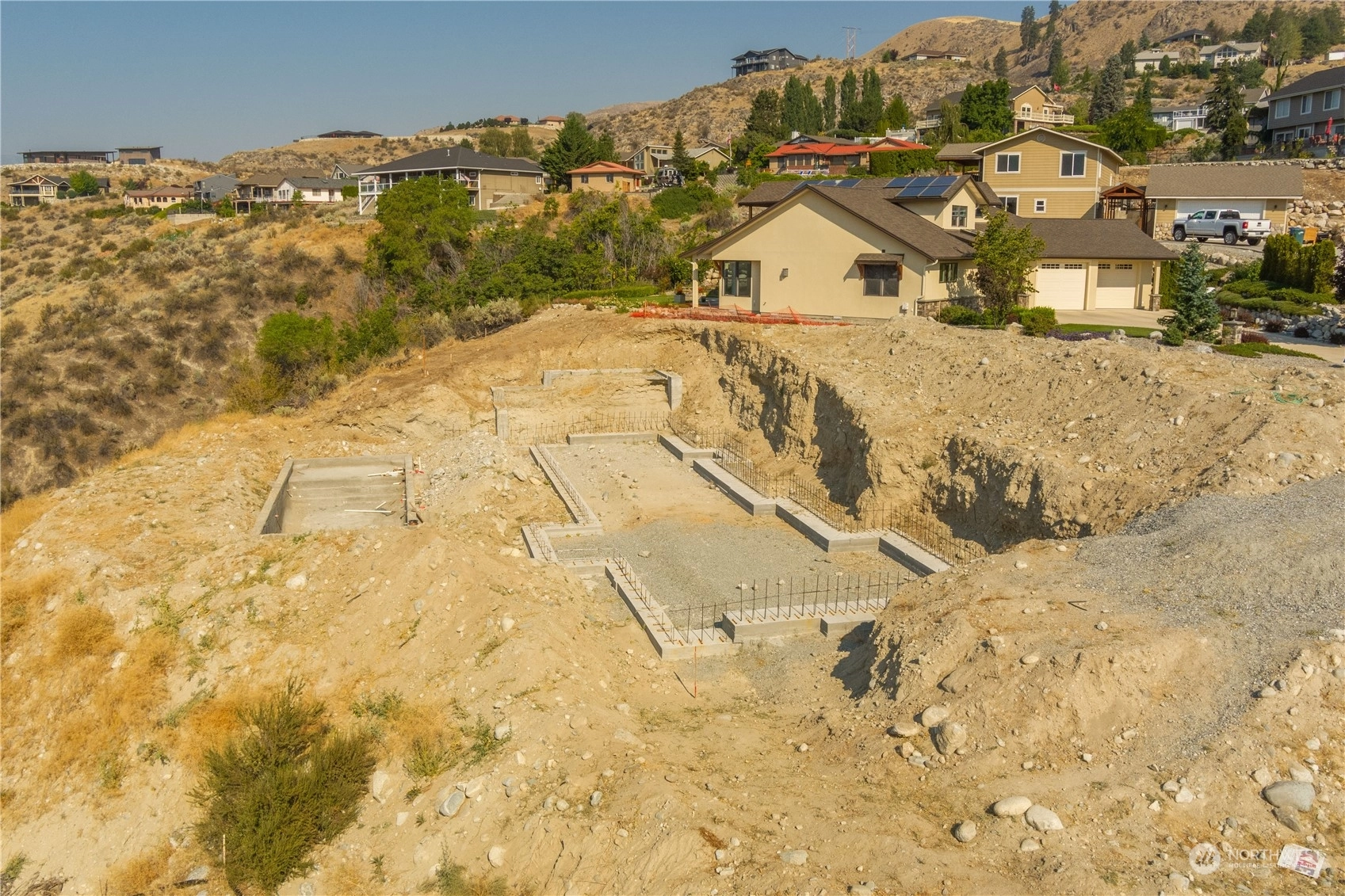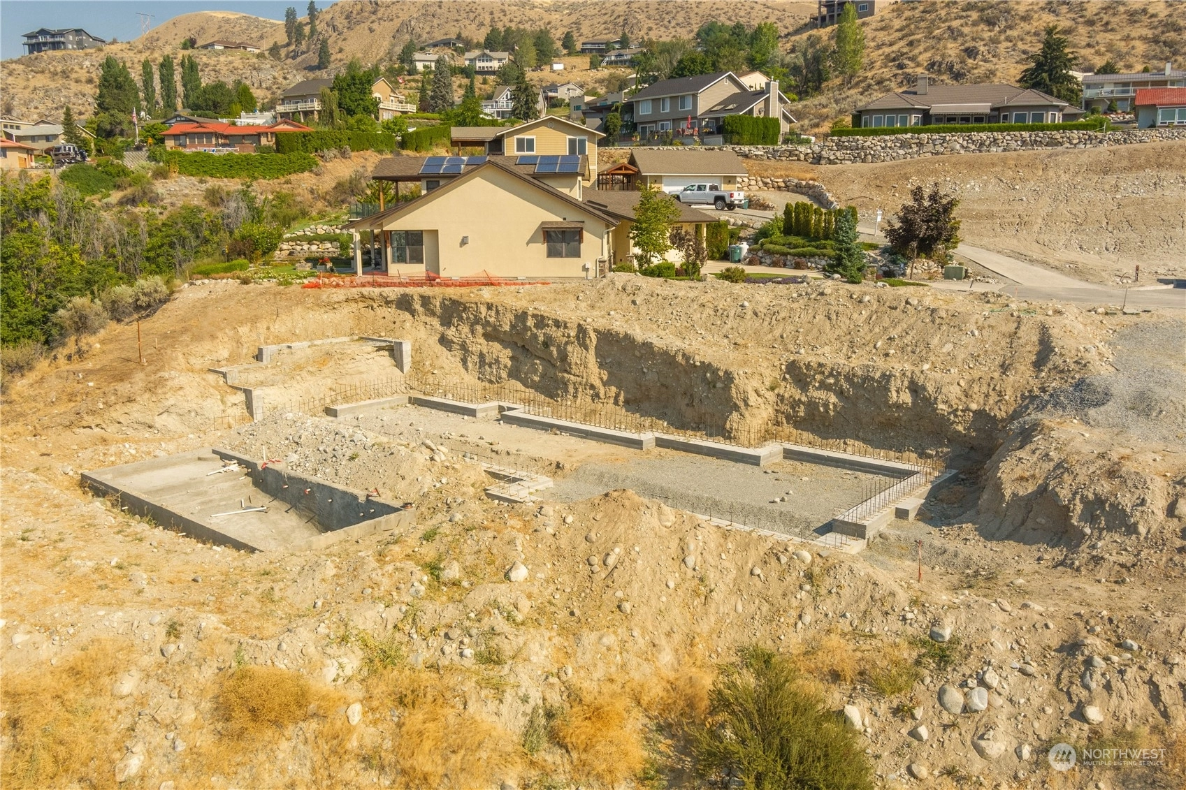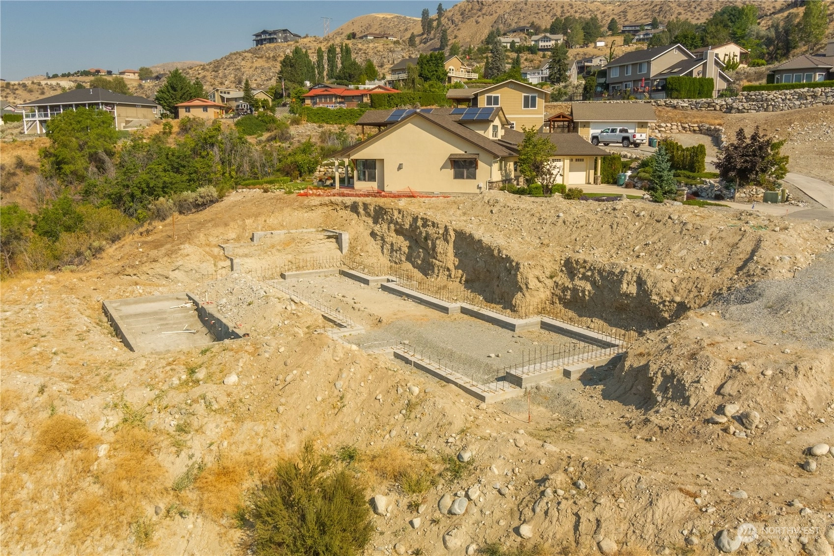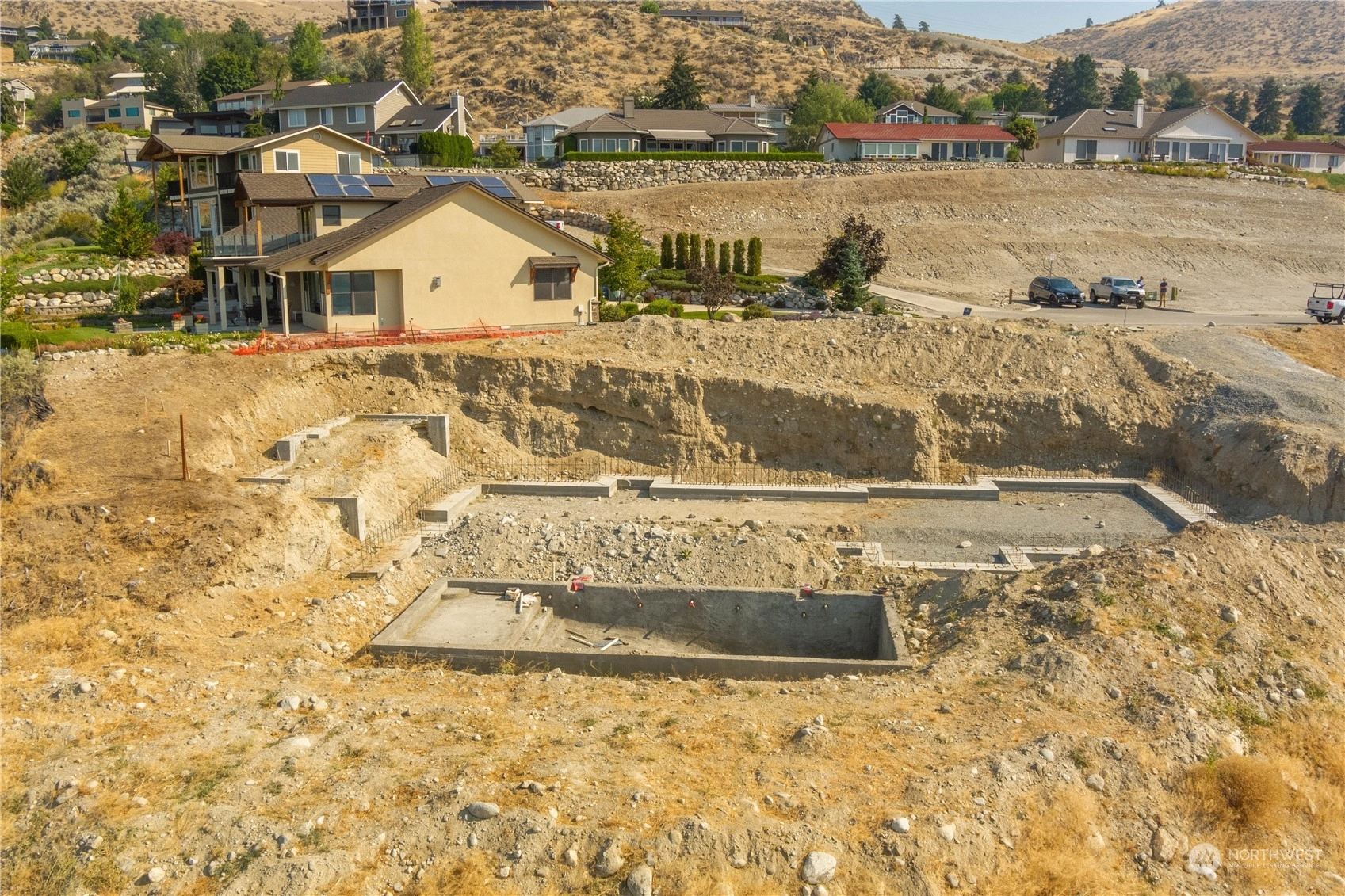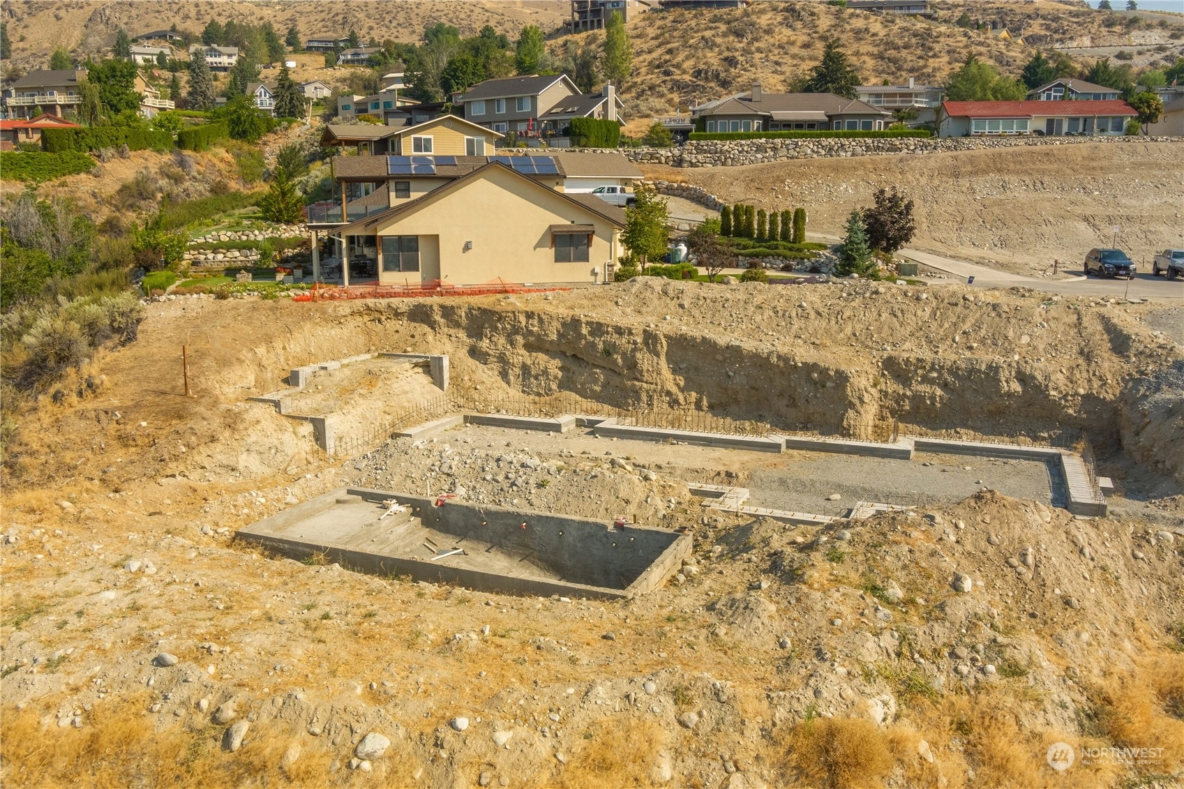Fantastic opportunity to build your dream home overlooking beautiful Lake Chelan. 134 Hillcrest Pl. is a 1/2+ acre lot w/ unobstructed Lake views & close proximity to downtown Chelan, the golf course & access to the Lake. Most of the hassle of building a home has been taken care of, the owners have paid for utility hook-ups, geotech study, building plans/permitting, excavation, as well as extensive foundation construction & swimming pool installation. Find a good builder & get right to work on finishing the project. Permitted plans for a 4 bed/ 3.5 bath home are included, with 2,669 sqft of living space, two primary suites, a lower & upper garage, with a daylight basement that opens up to a luxurious swimming pool. Great location & value!