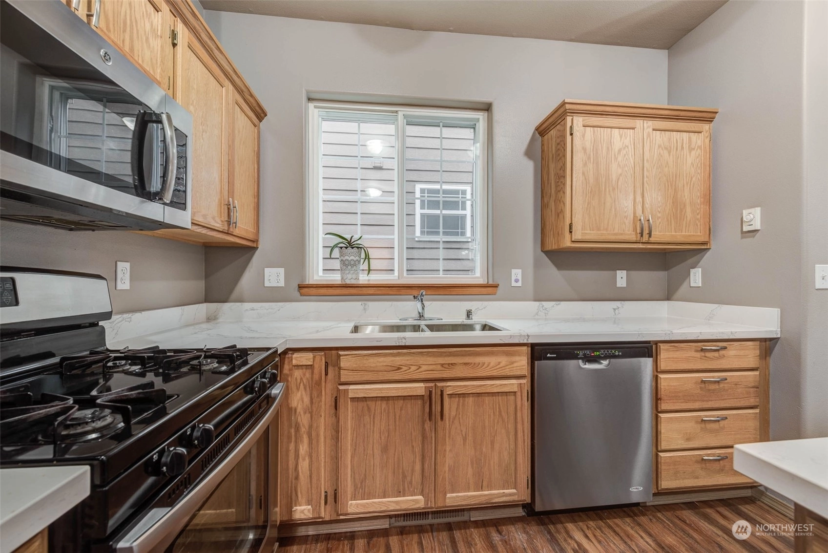 Welcome to Parkview Village, where desirable living meets functionality. This stunning home boasts a main level open floor plan that leads to a private outdoor patio, perfect for entertaining guests. With 3 bedrooms, 2.5 baths, and a bonus room, this home offers plenty of space. Enjoy stainless steel appliances and a convenient washer and dryer included. Retreat to your private, spacious, vaulted primary bedroom with 2 walk-in closets and dual vanity bathroom. Stay cozy with the efficient radiant heating system, and park with ease in the 2- car garage. The low-maintenance yard is perfect for those on-the-go. Plus, this home is perfectly located for easy access to freeways and transit, making commuting a breeze.