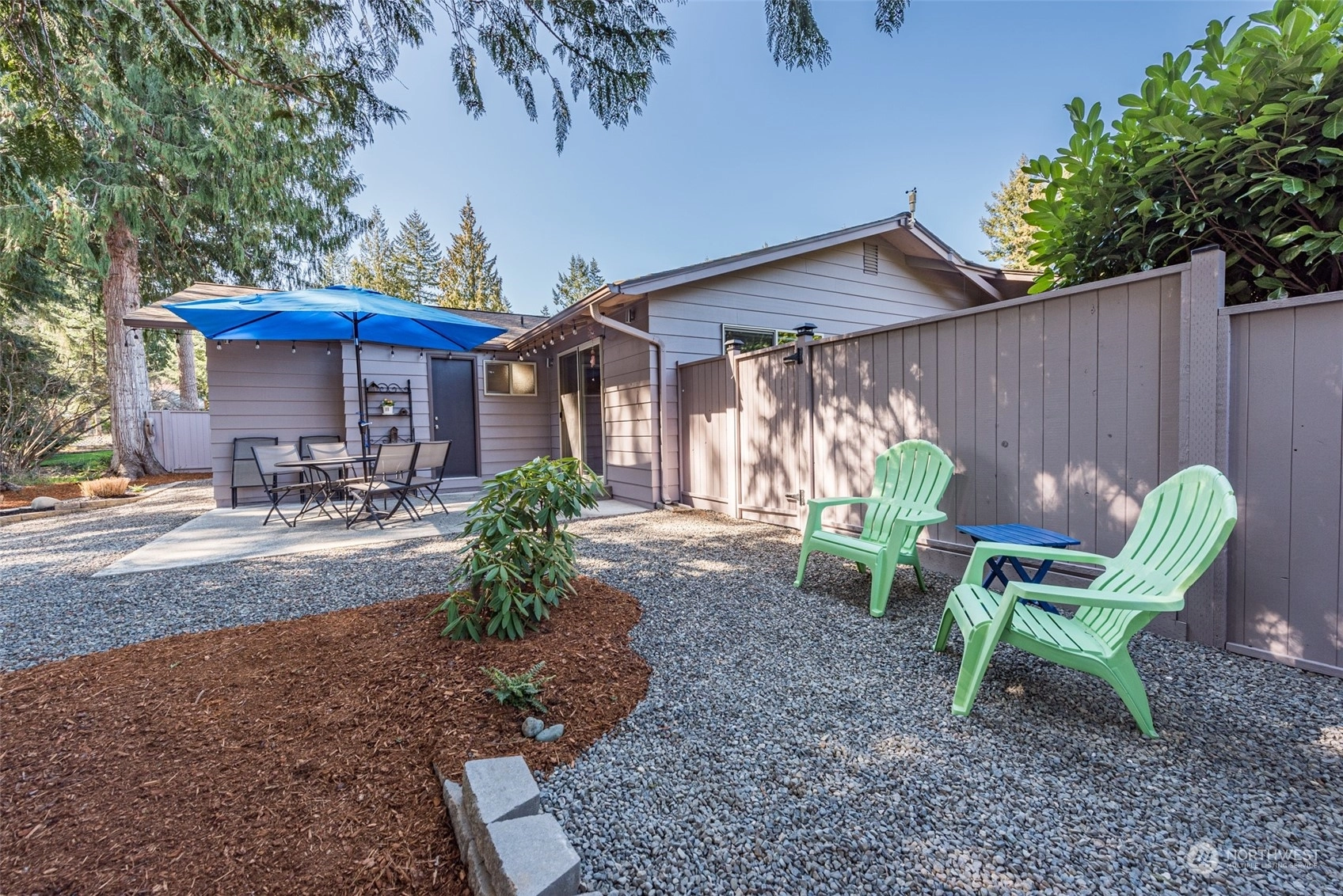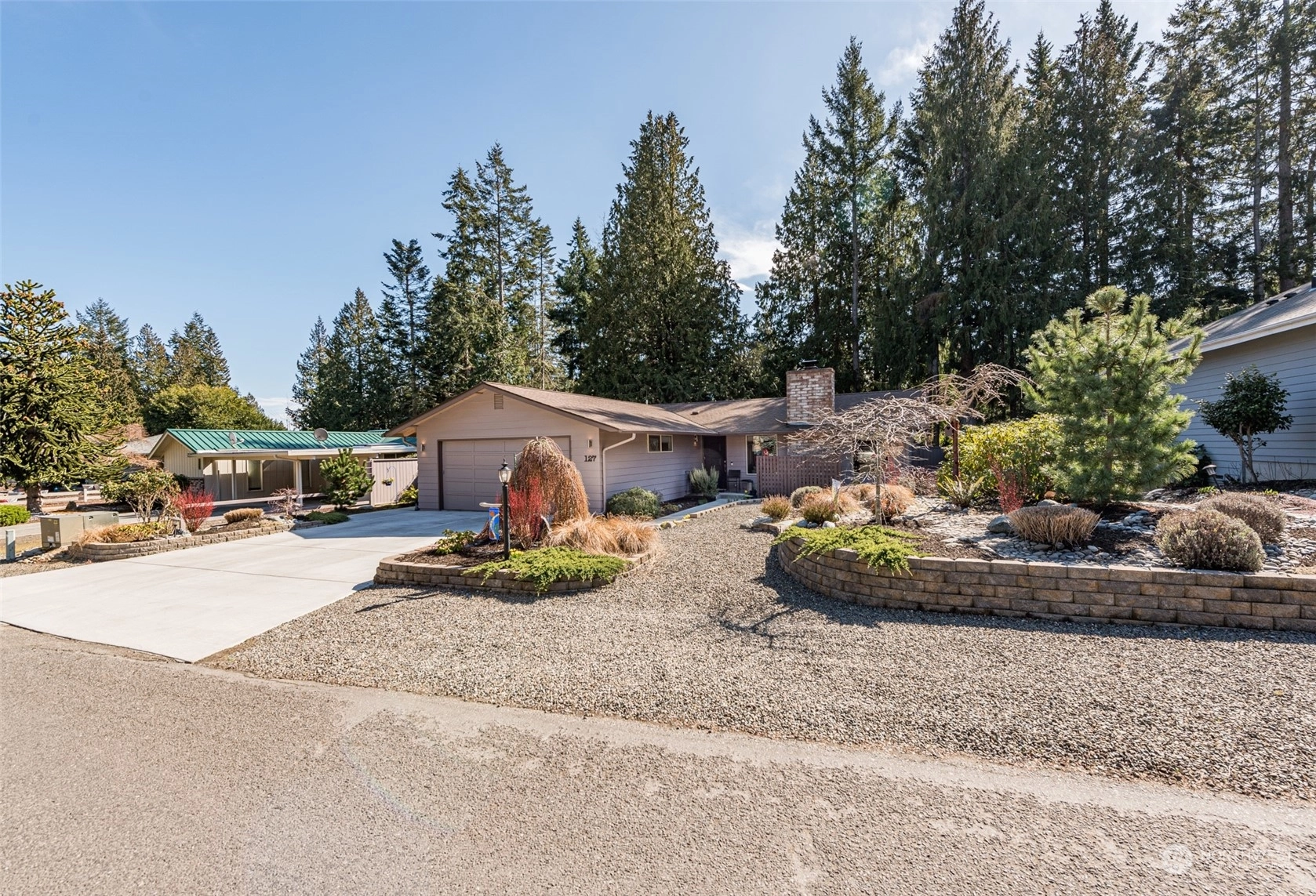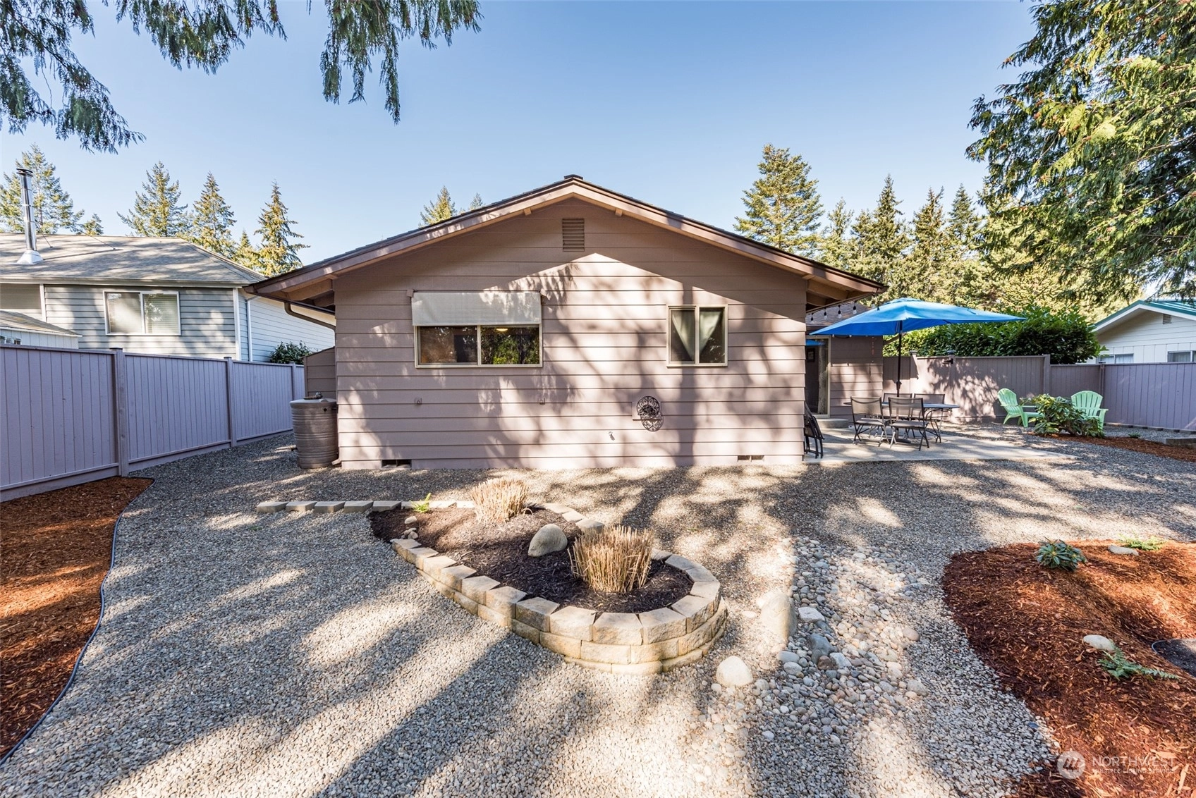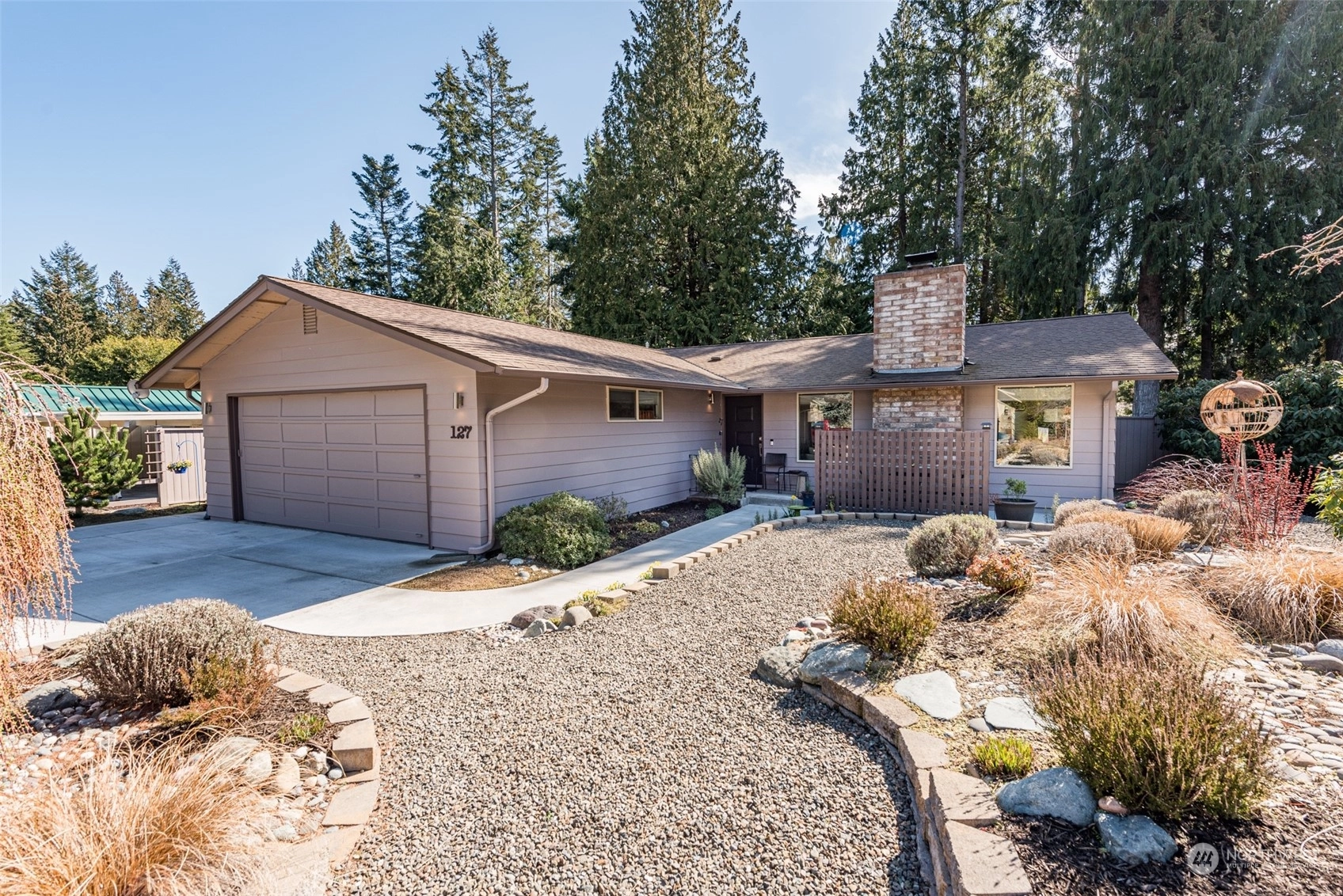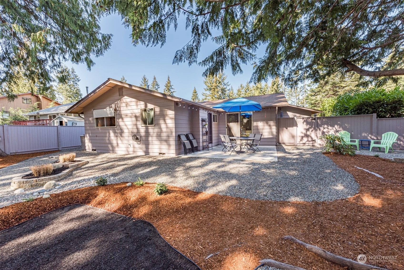 Stylish home, completely updated with beauty around every corner. Located in the quiet neighborhood of Sunland in Sequim, this is a home that exudes pride of ownership both inside and out. Comfortable living room with office area warmed by a super efficient pellet stove. Stylish kitchen off of the formal dining room w/ceiling fan and access to private back yard. Gorgeous bathrooms with tile floors and tile shower in primary BR. Private patio spaces on both sides of the home and privacy hedge. Many improvements incl roof, windows, up/down blinds, water heater, lighting, floor, appliances. Sunland water/sewer only $116.67/mo. Seller prefers possession until 6/18.