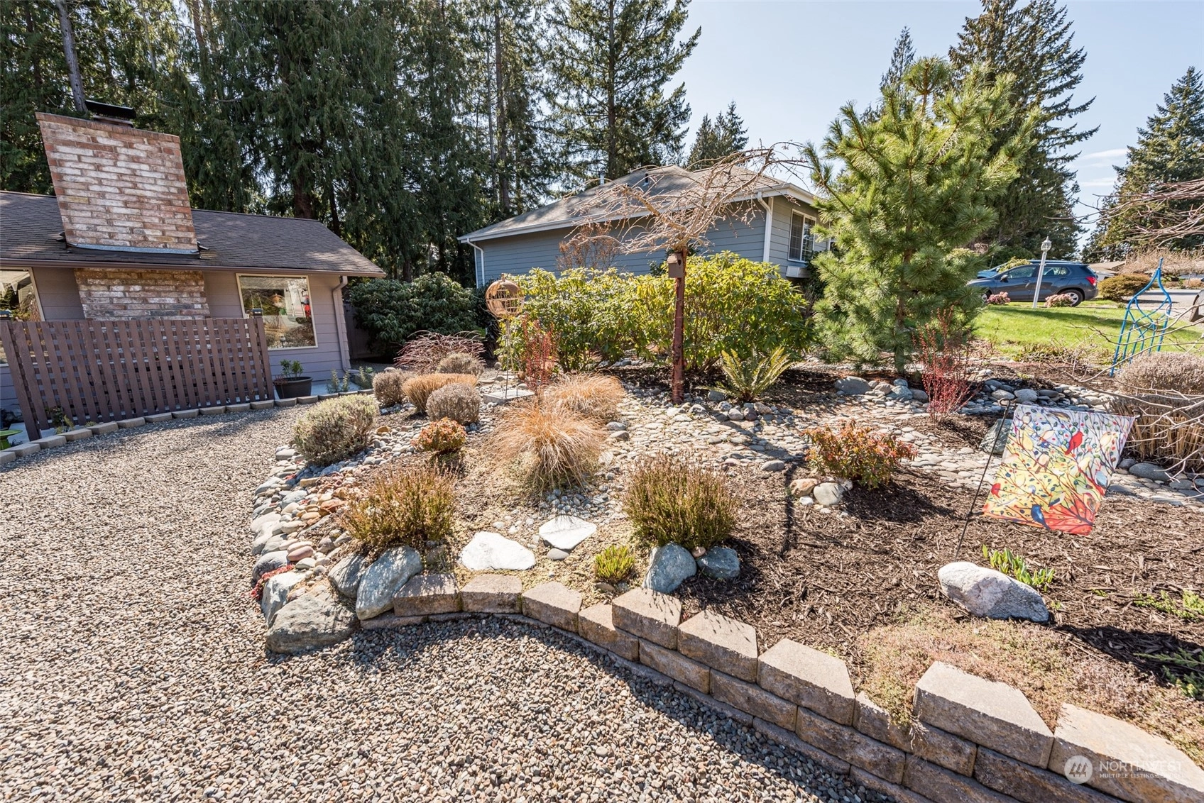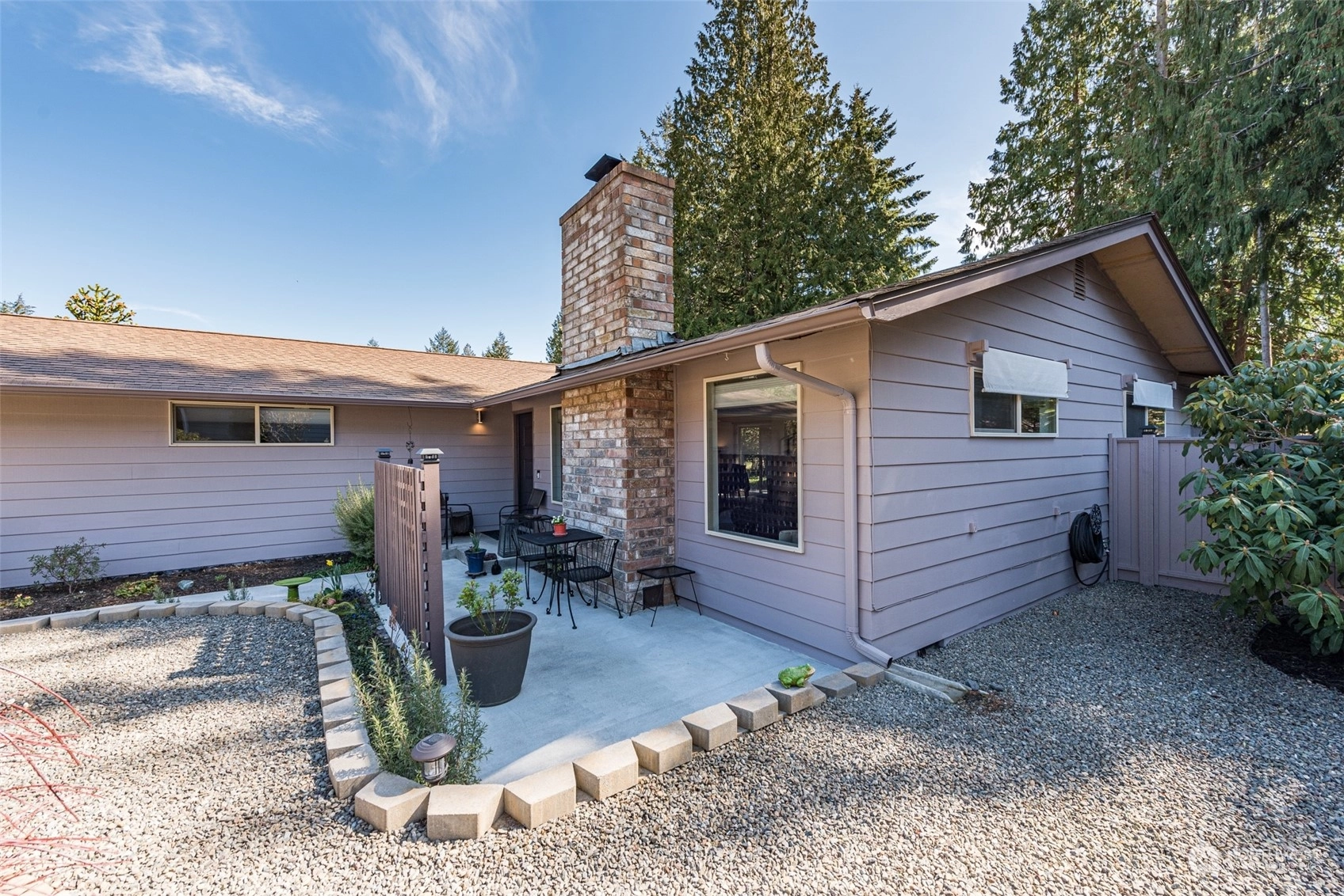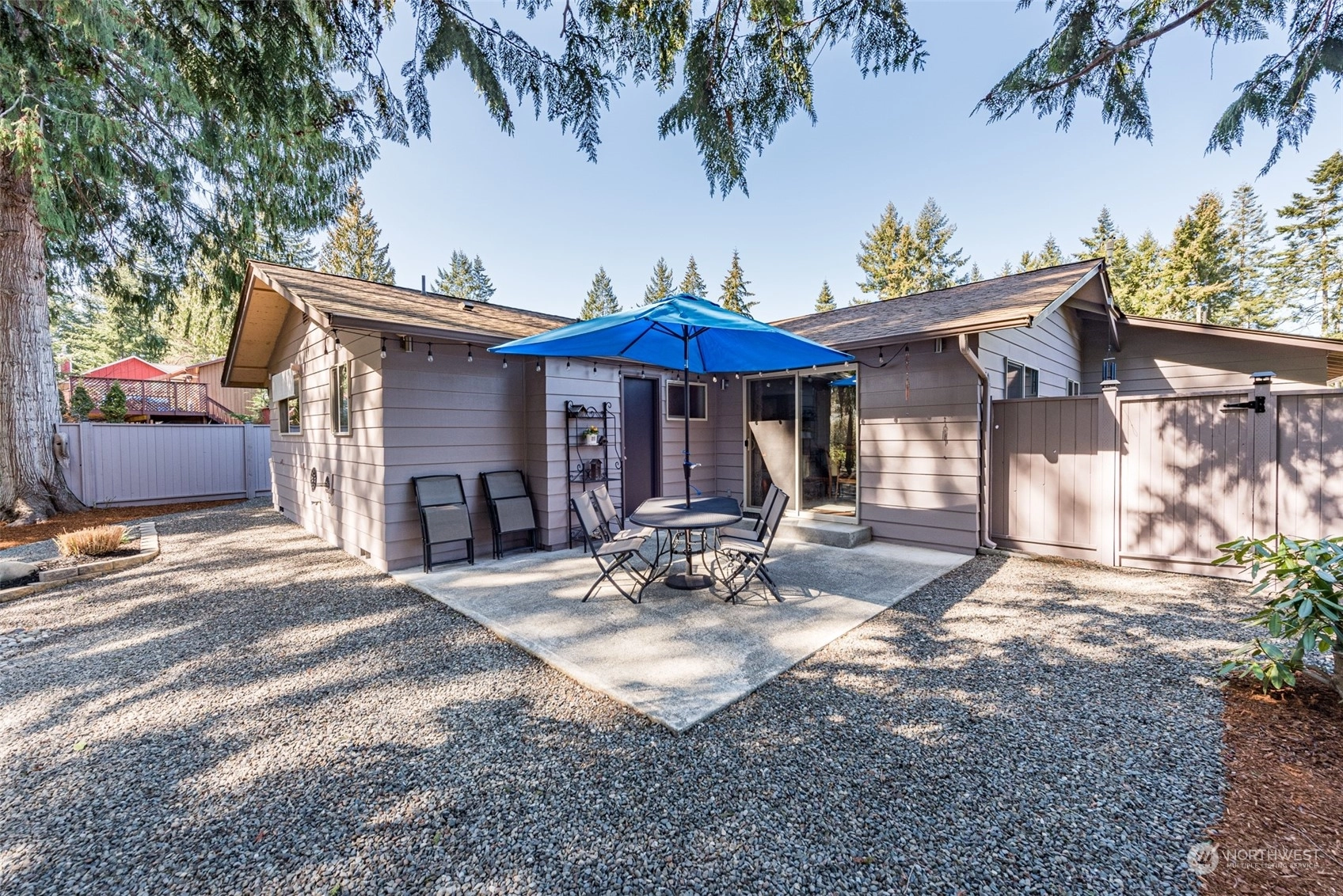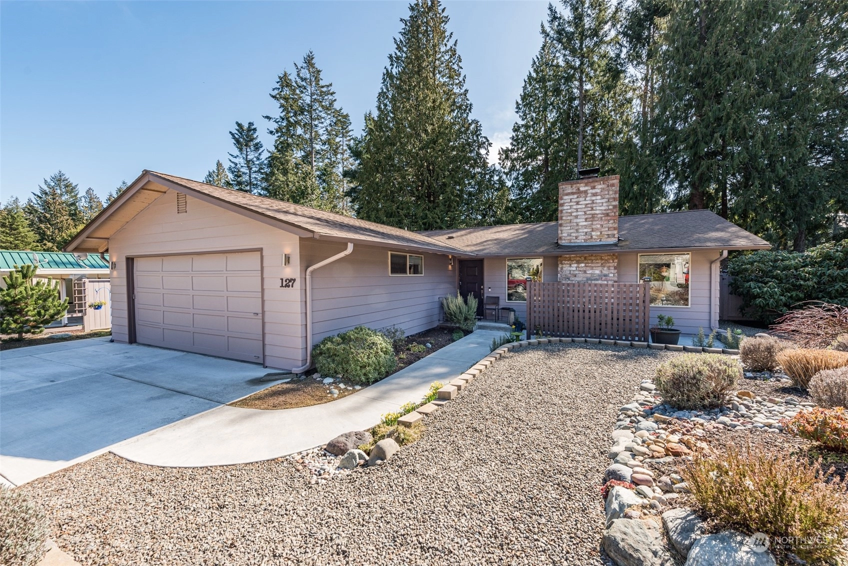 Stylish home, completely updated with beauty around every corner. Located in the quiet neighborhood of Sunland in Sequim, this is a home that exudes pride of ownership both inside and out. Comfortable living room with office area warmed by a super efficient pellet stove. Stylish kitchen off of the formal dining room w/ceiling fan and access to private back yard. Gorgeous bathrooms with tile floors and tile shower in primary BR. Private patio spaces on both sides of the home and privacy hedge. Many improvements incl roof, windows, up/down blinds, water heater, lighting, floor, appliances. Sunland water/sewer only $116.67/mo. Seller prefers possession until 6/18.