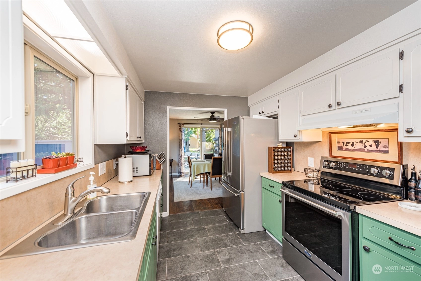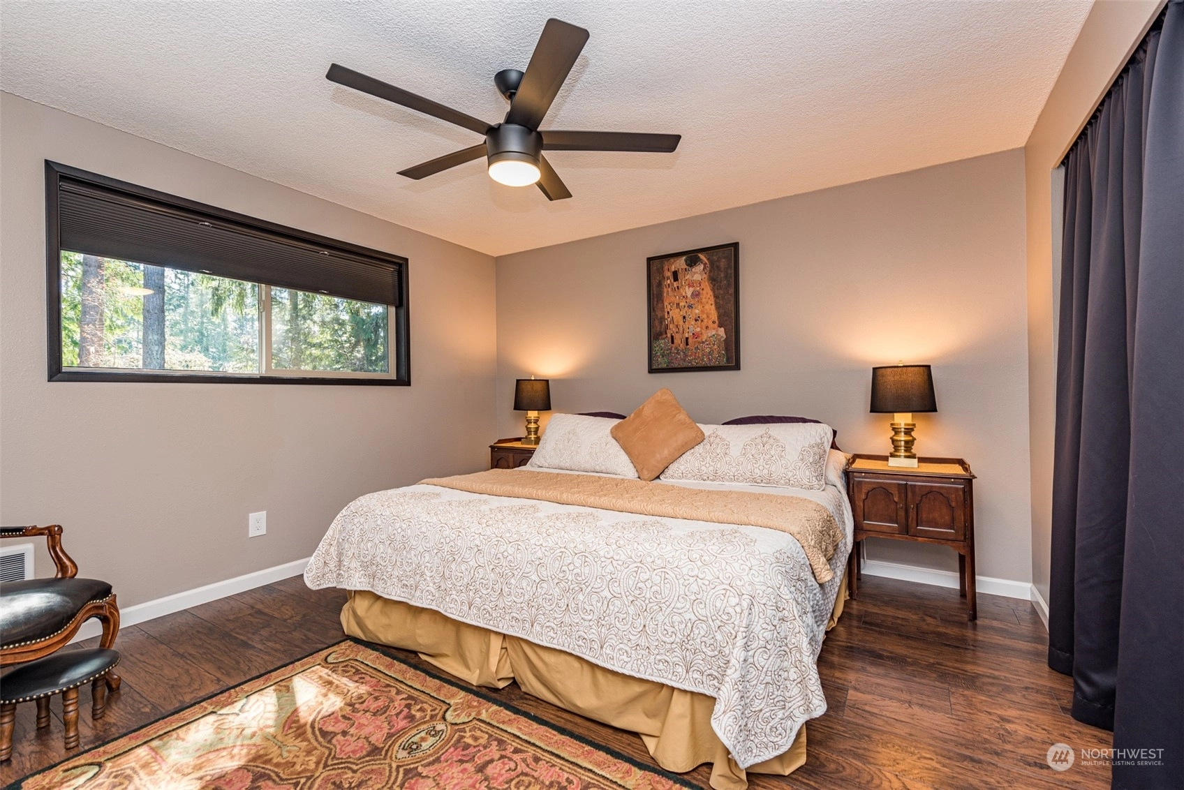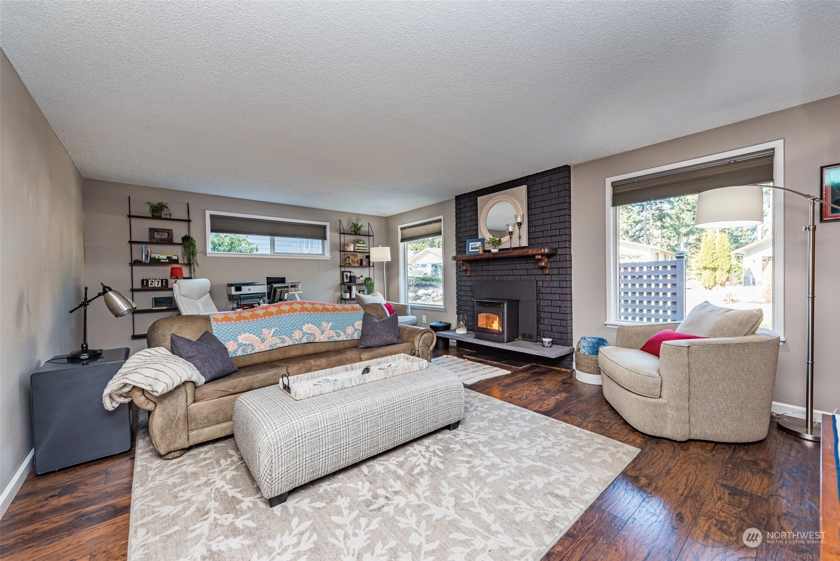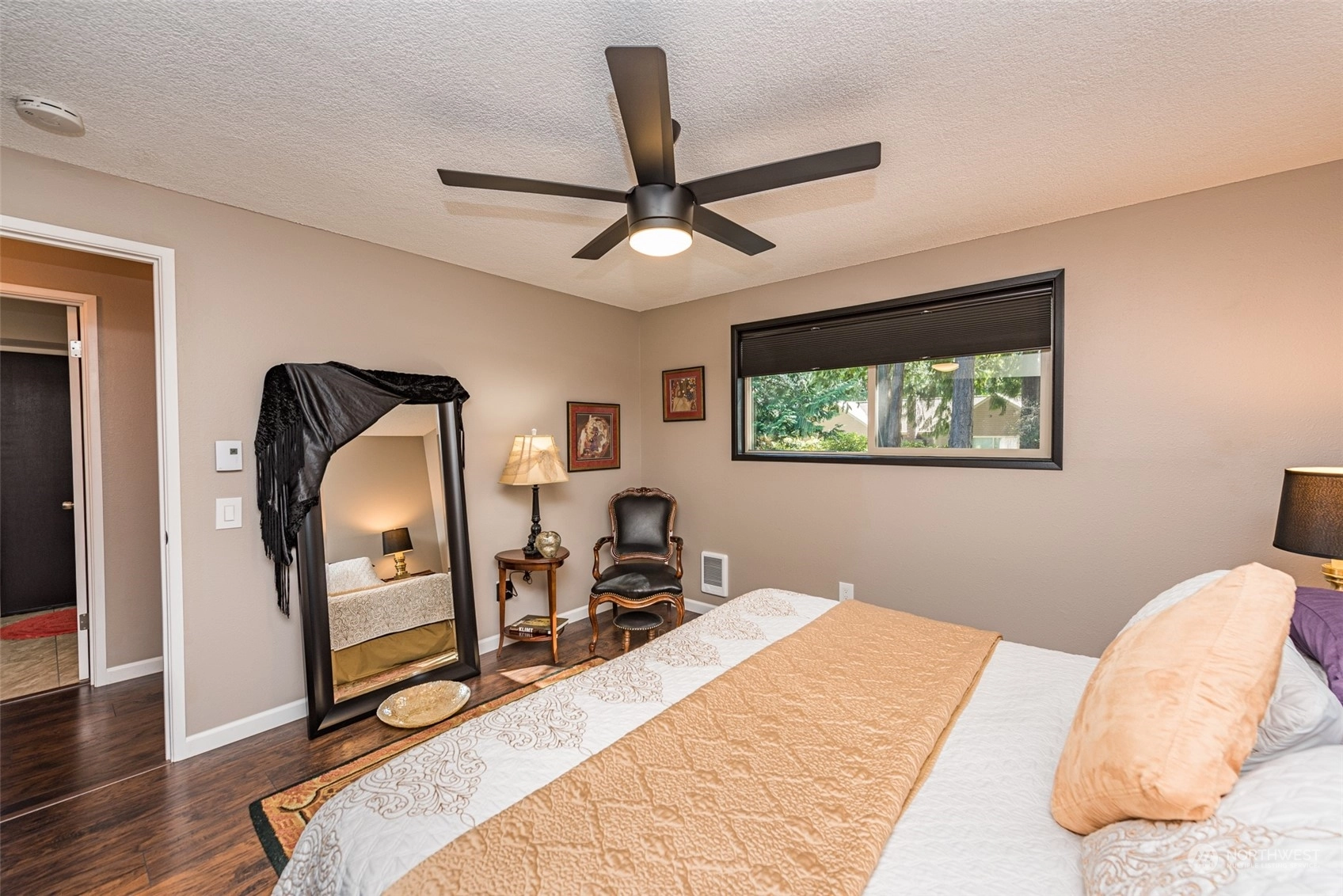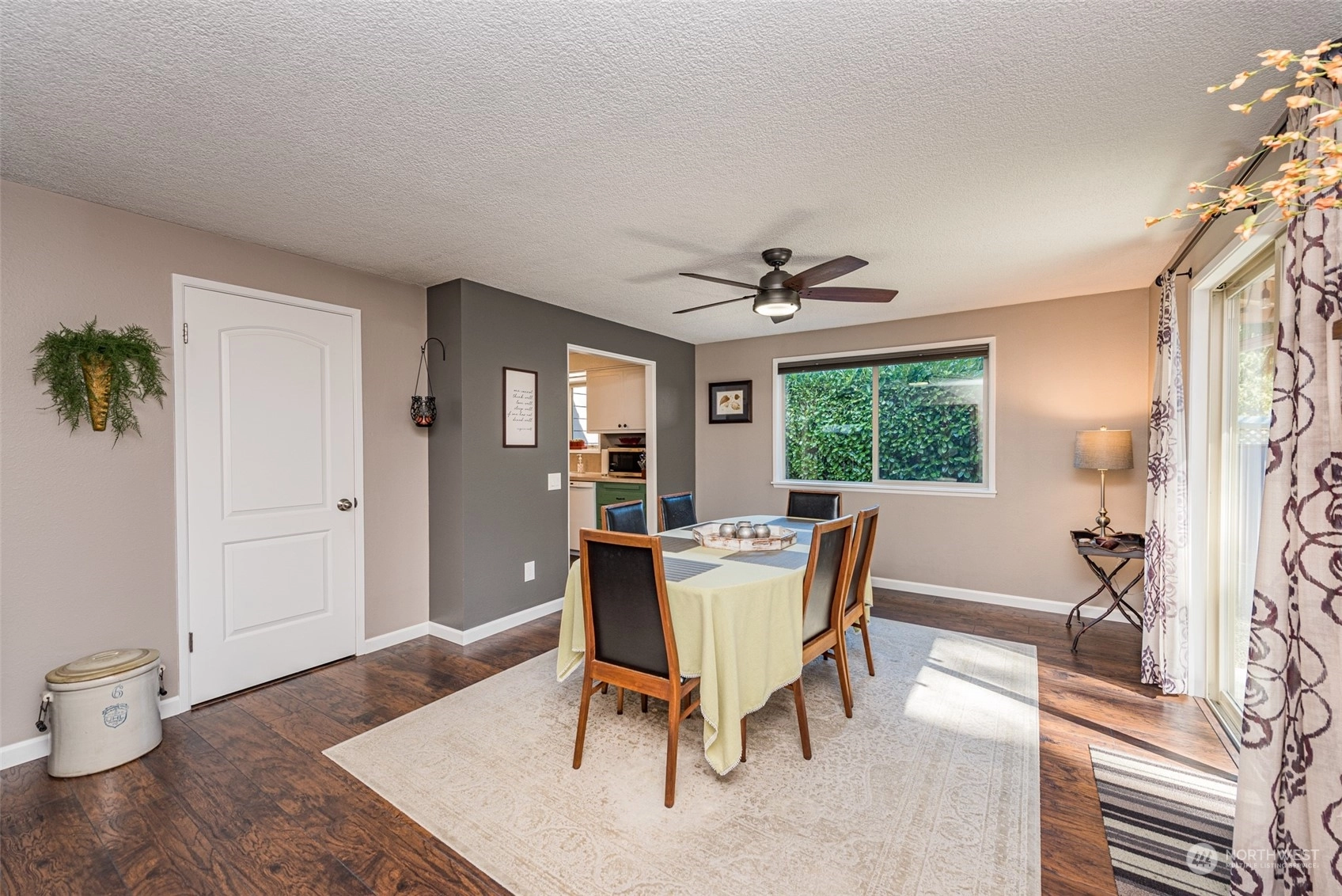 Stylish home, completely updated with beauty around every corner. Located in the quiet neighborhood of Sunland in Sequim, this is a home that exudes pride of ownership both inside and out. Comfortable living room with office area warmed by a super efficient pellet stove. Stylish kitchen off of the formal dining room w/ceiling fan and access to private back yard. Gorgeous bathrooms with tile floors and tile shower in primary BR. Private patio spaces on both sides of the home and privacy hedge. Many improvements incl roof, windows, up/down blinds, water heater, lighting, floor, appliances. Sunland water/sewer only $116.67/mo. Seller prefers possession until 6/18.