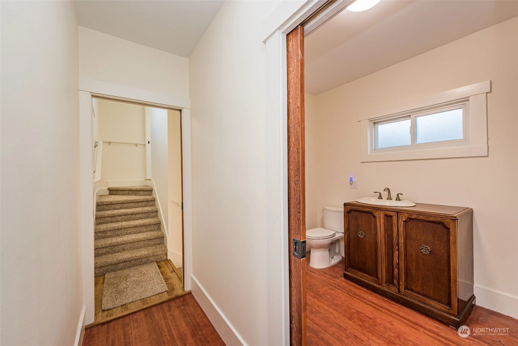 Fir/Softwood Hardwood Wall to Wall Carpet Bath Off Primary Double Pane/Storm Window