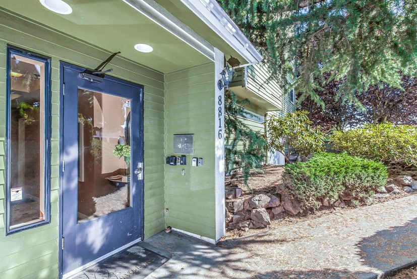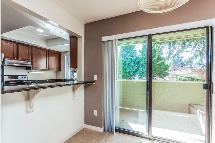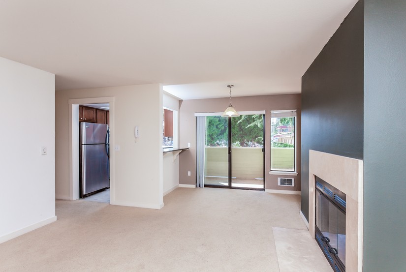 2 bed/ 1.5 bath with Convenient Green Lake Location! Quiet, Sunny west facing. Granite counter tops, Breakfast Bar+ Dining area. Travertine tile in bath room & around cozy fireplace. Stainless steel appliances. Washer, Dryer will stay. Well run HOA. ( Low Dues) Spacious deck. Secure Parking and plenty of street parking. Transit E blue to Down town Seattle. Easy to access I-5. UW. and Green lake
