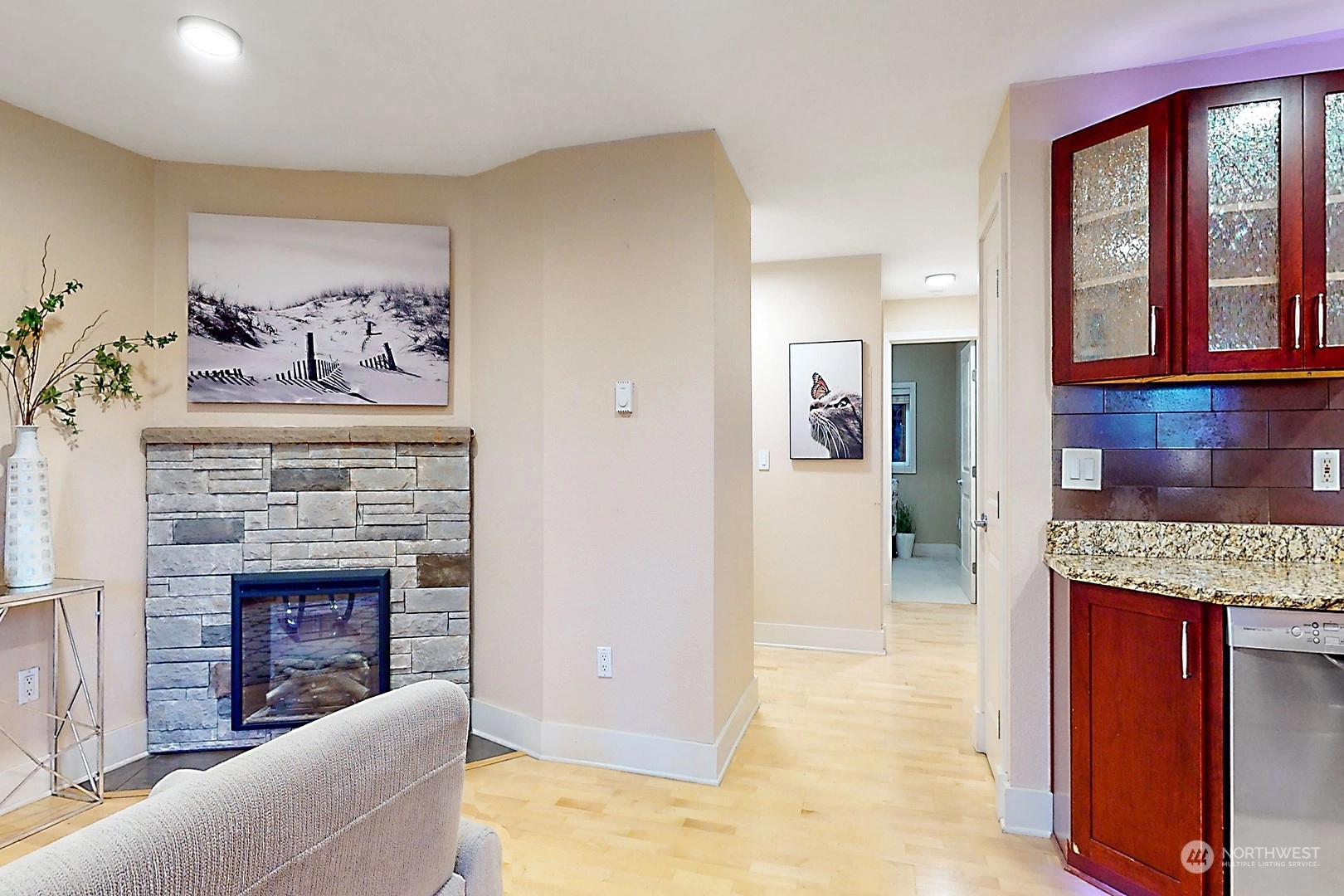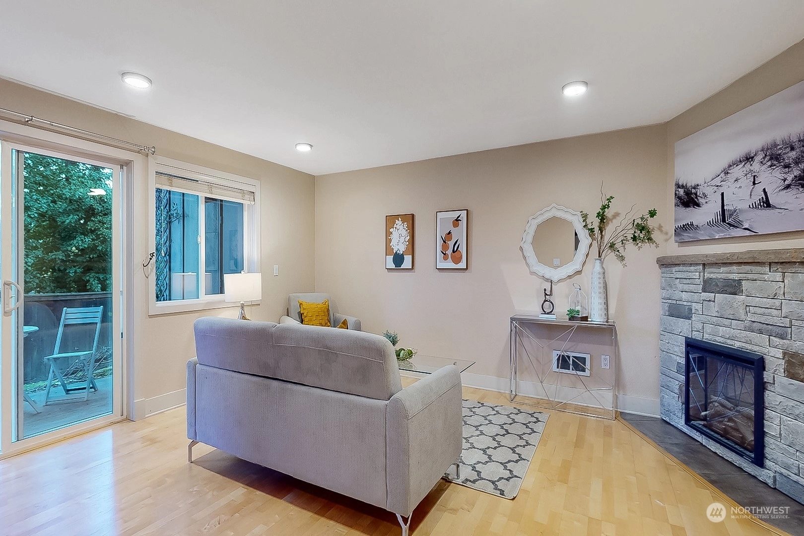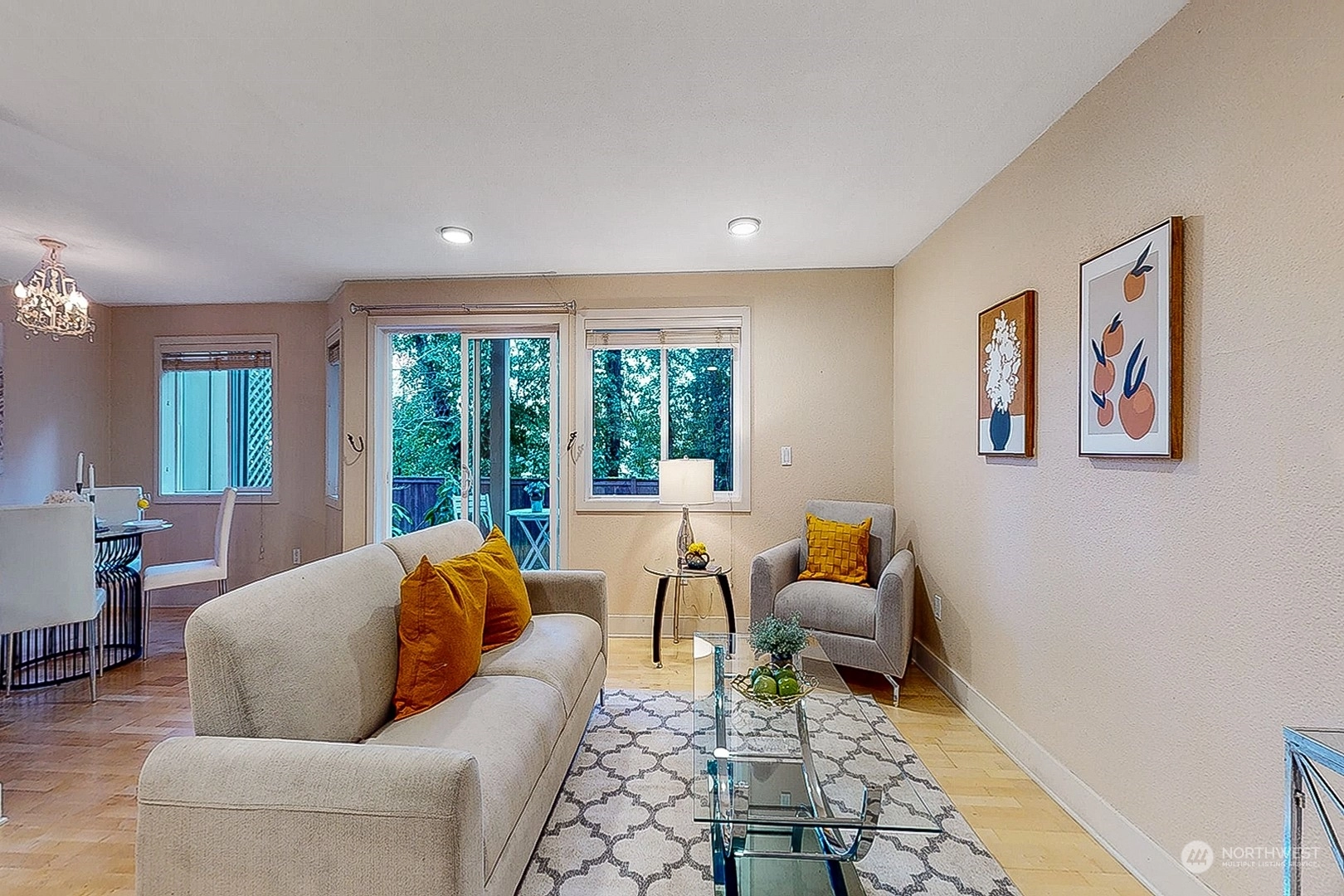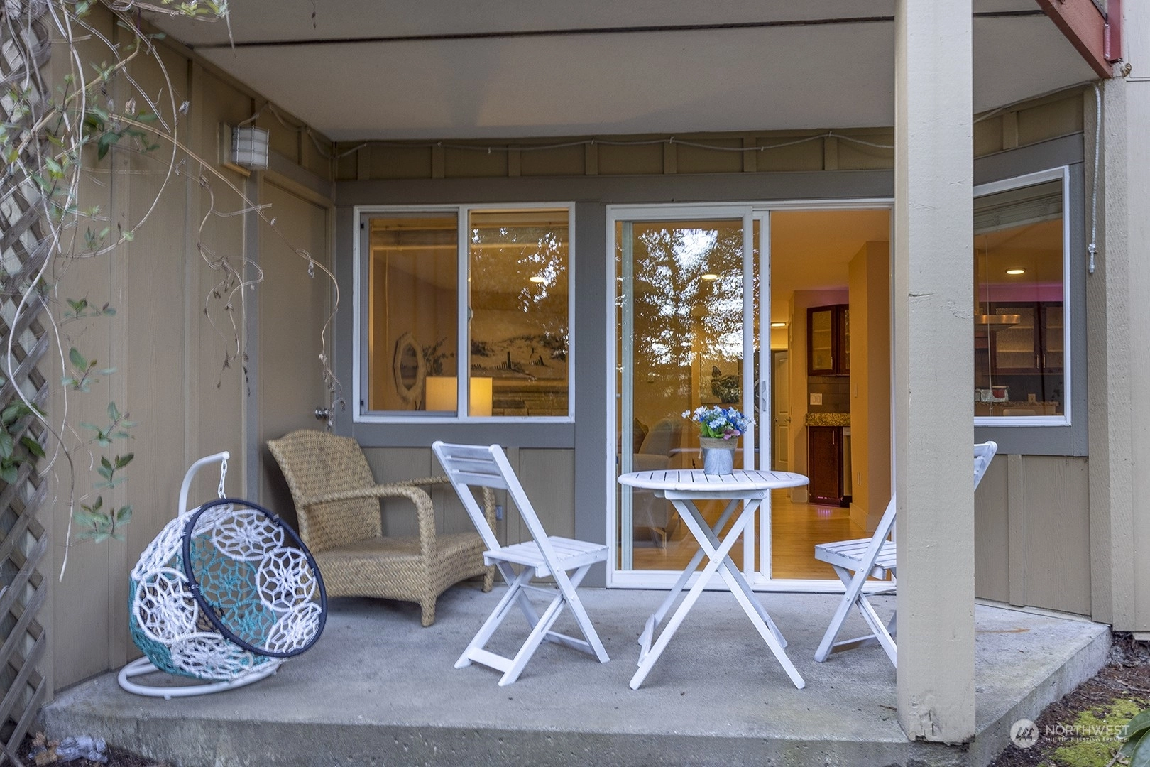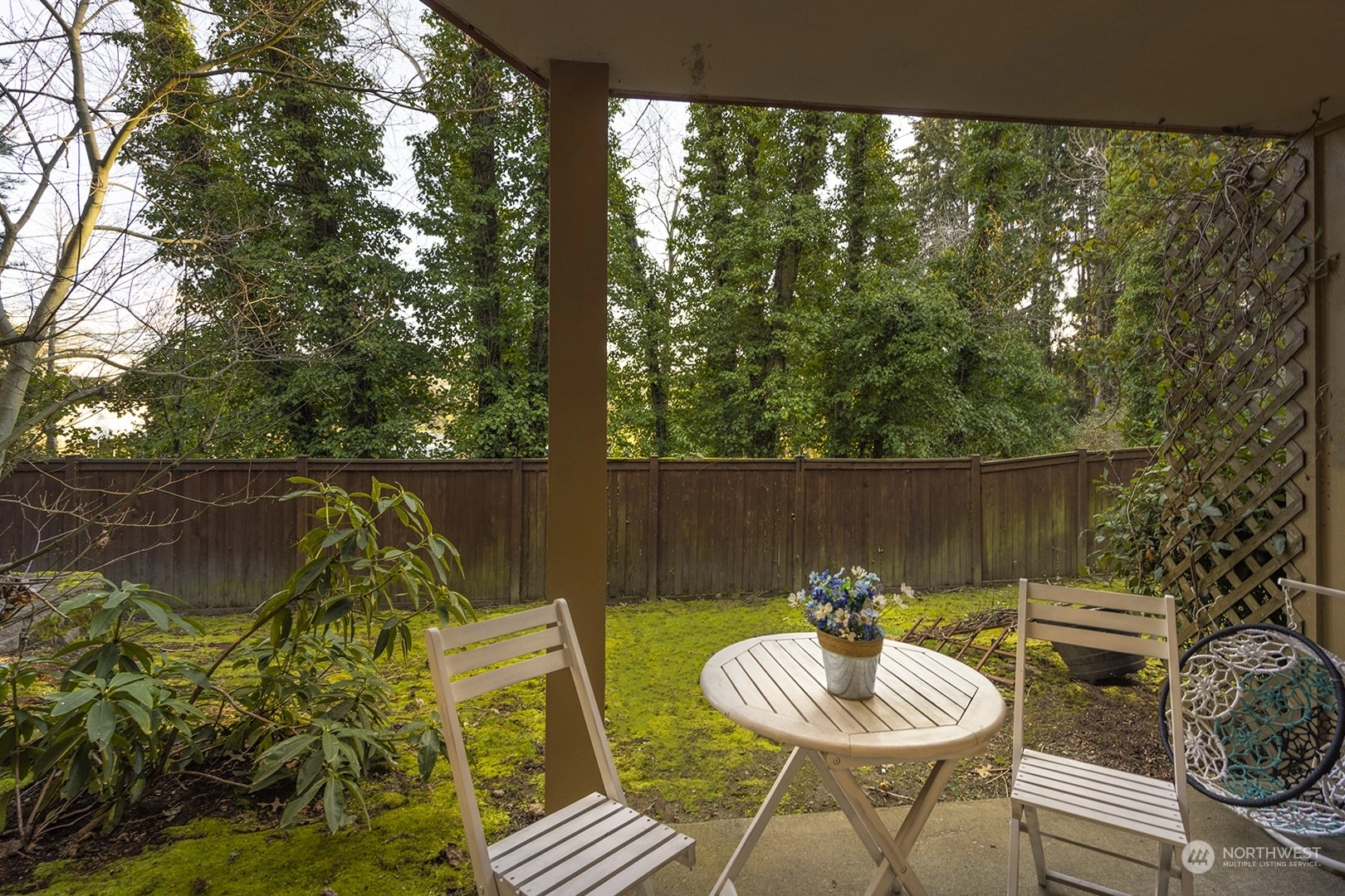 Don't miss out on this rare ground floor 2 BD/1 BA private unit in great location! Easy access to 520, 405, Downtown Bellevue & Kirkland waterfront. 10 mins from Google/Microsoft campuses, GIX & 15 mins from Downtown Seattle. Close proximity to trails/Park & Ride. Unit features maple hrdwd floors, SS appliances, granite slab countertop w/bar, rich cherry cabinets w/glass doors. Living room with upgraded electric fireplace opens to private extra large patio w/storage & grassy area for a dogs. 2 designated parking spaces.Your carport is conveniently located in front of the unit. Pets OK, with some restrictions. Low Dues! Near Park and Ride. Lake Washington Schools.