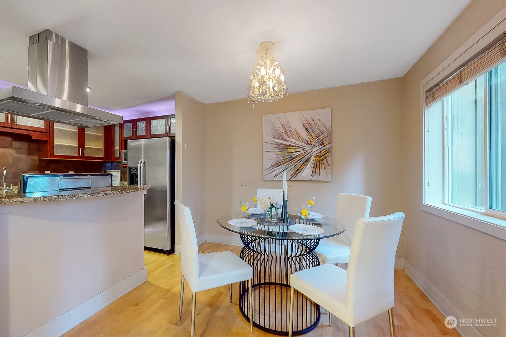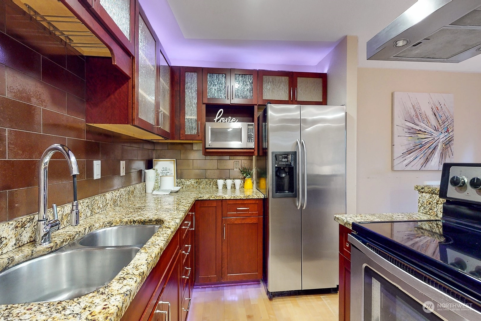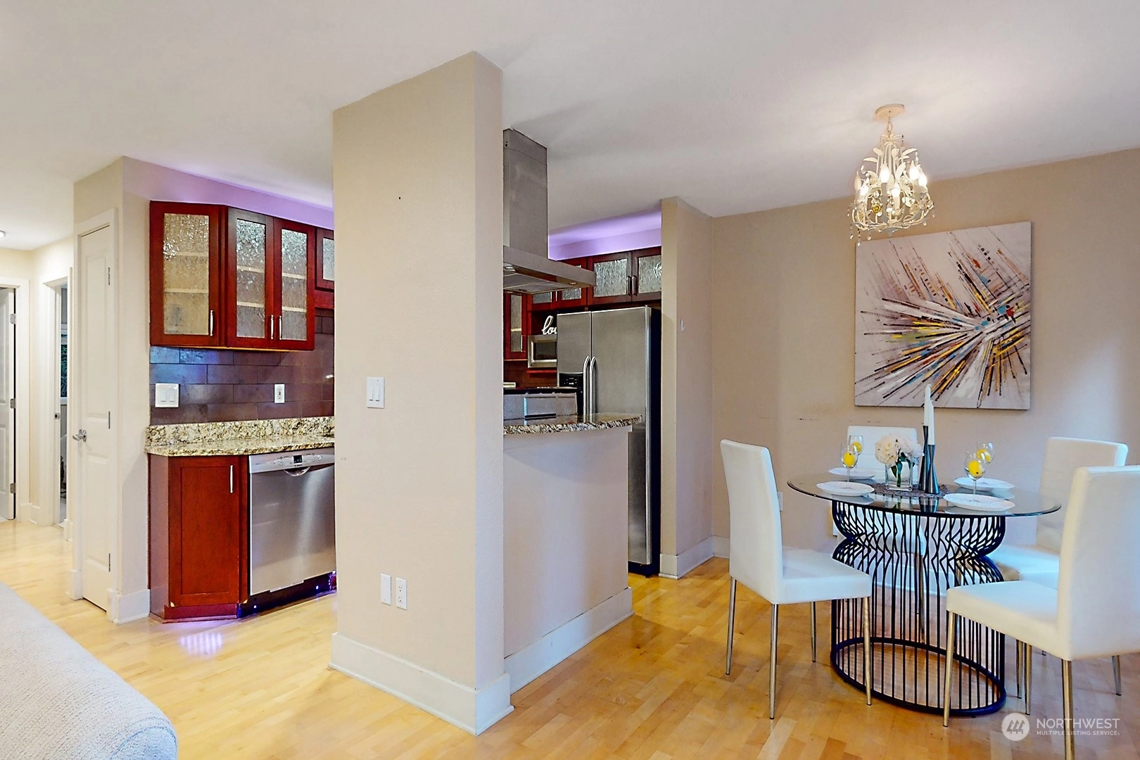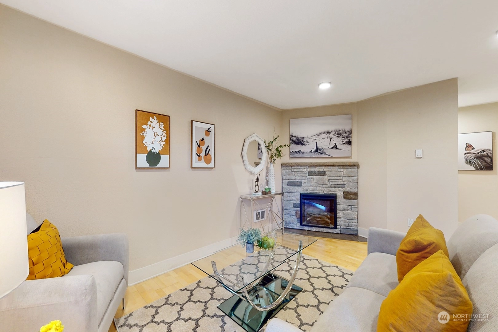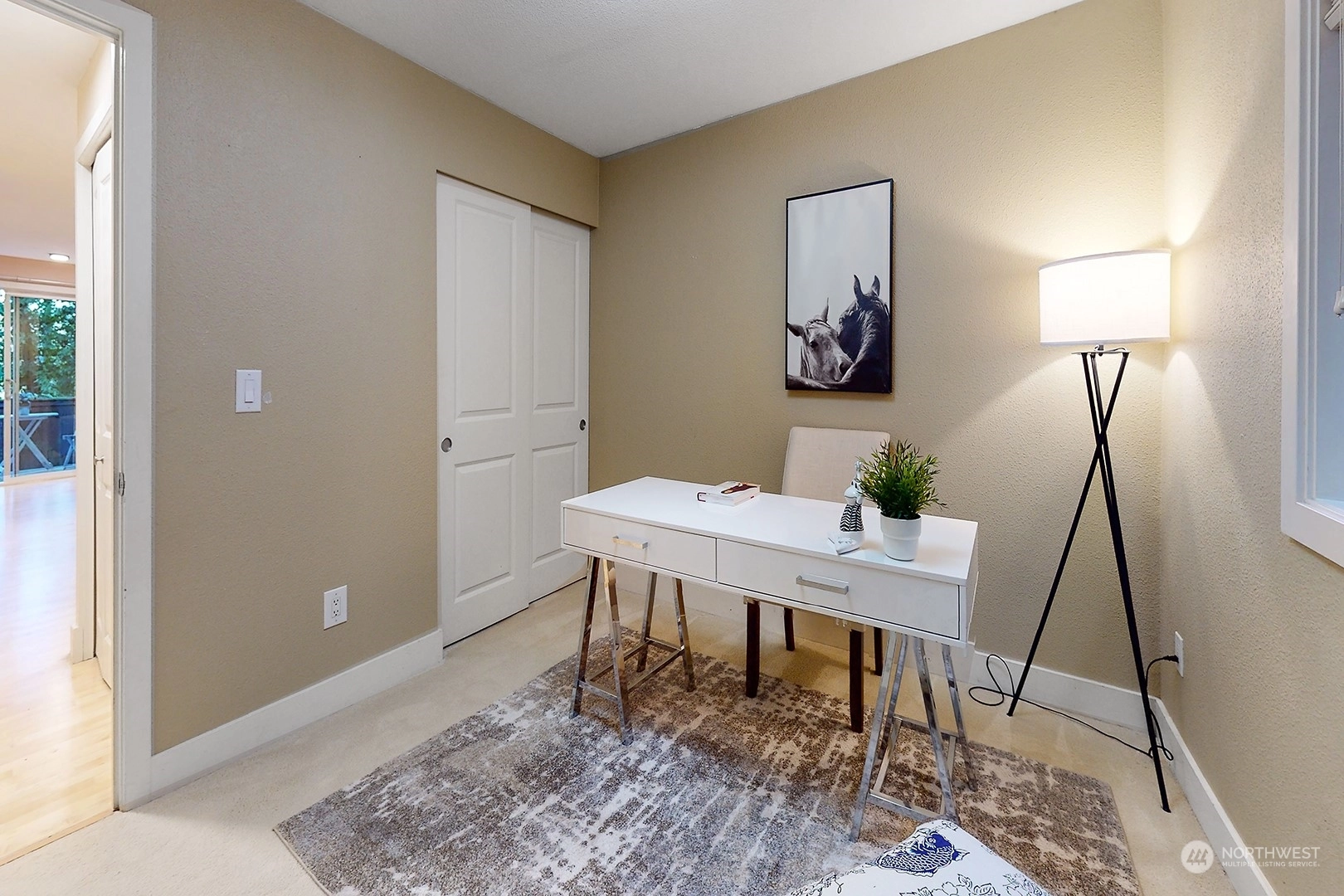 Don't miss out on this rare ground floor 2 BD/1 BA private unit in great location! Easy access to 520, 405, Downtown Bellevue & Kirkland waterfront. 10 mins from Google/Microsoft campuses, GIX & 15 mins from Downtown Seattle. Close proximity to trails/Park & Ride. Unit features maple hrdwd floors, SS appliances, granite slab countertop w/bar, rich cherry cabinets w/glass doors. Living room with upgraded electric fireplace opens to private extra large patio w/storage & grassy area for a dogs. 2 designated parking spaces.Your carport is conveniently located in front of the unit. Pets OK, with some restrictions. Low Dues! Near Park and Ride. Lake Washington Schools.