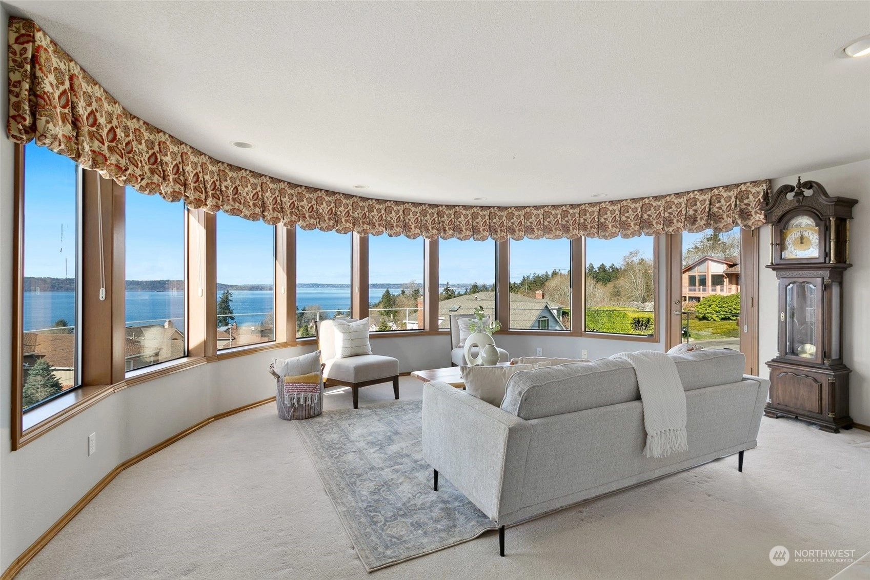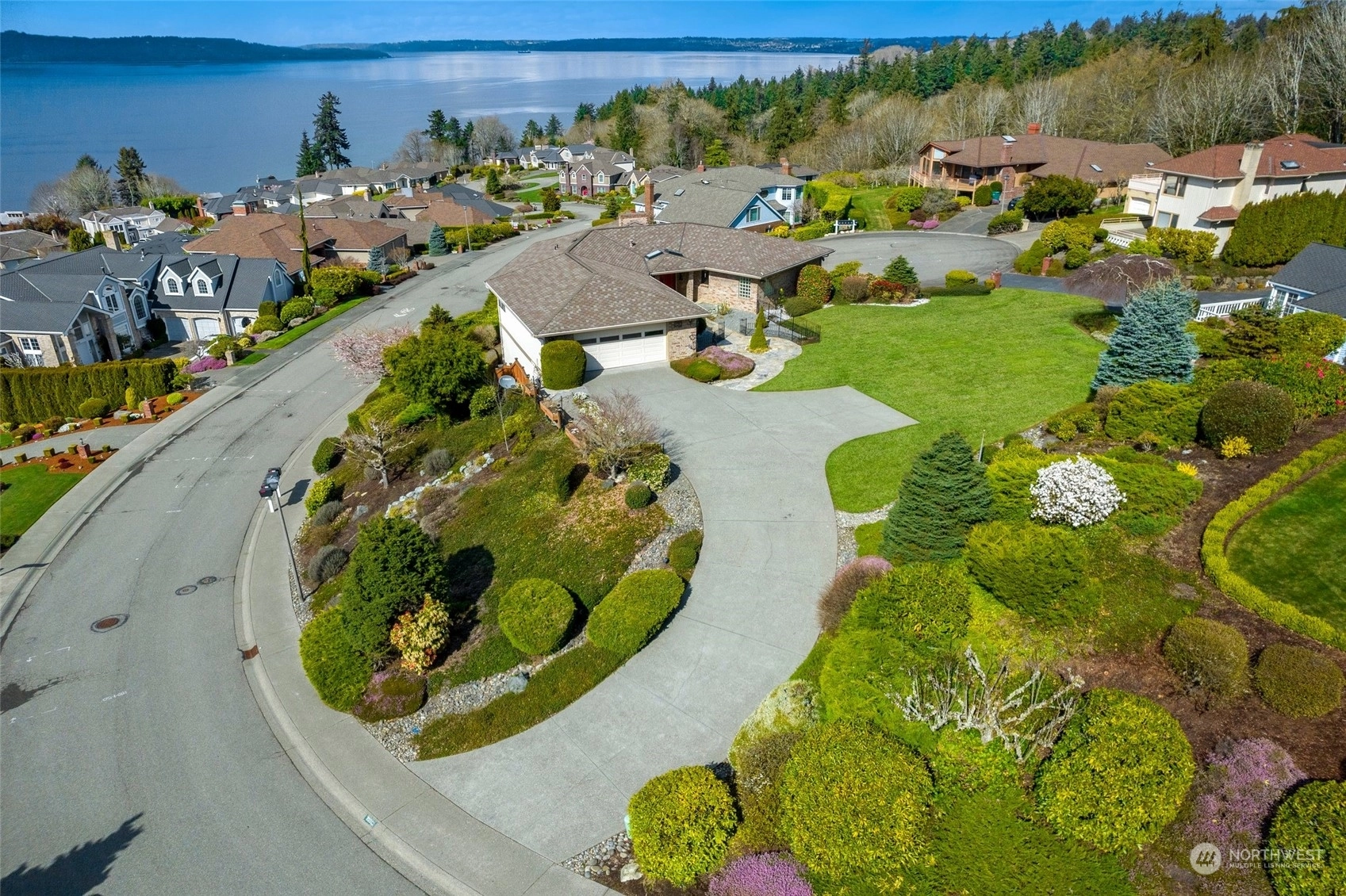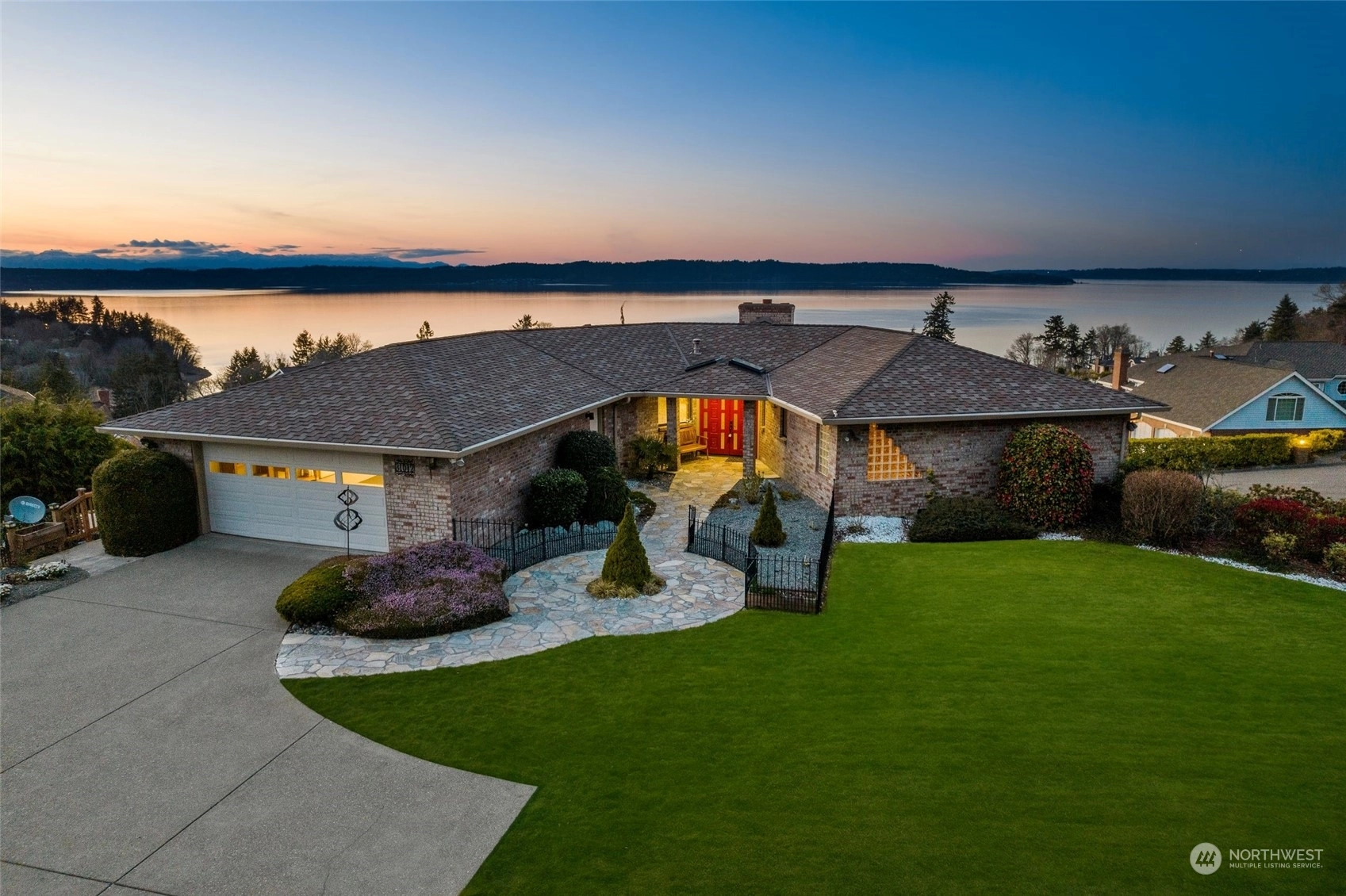 Immaculate custom built home in the coveted Bayview Estates. This home w/ commanding panoramic views of the Sound, City & Maury Island nestled on over half an acre lot features formal living w/ fireplace & dining room w/ colossal windows showcasing the majestic views! Spacious kitchen w/ breakfast nook & laundry for your convenience. Primary on main w/ more views, 5 piece bath & large walk-in closet. Guest bedroom on main or home office & guest bath. Additional bedrooms on lower level & family room w/ more views. Enjoy a bubbly in the parlor that features exposed beams & a cozy fireplace. Radiant floor heating throughout home! Spot Orcas & watch eagles at the balcony overlooking the lush landscaping. Welcome Home!