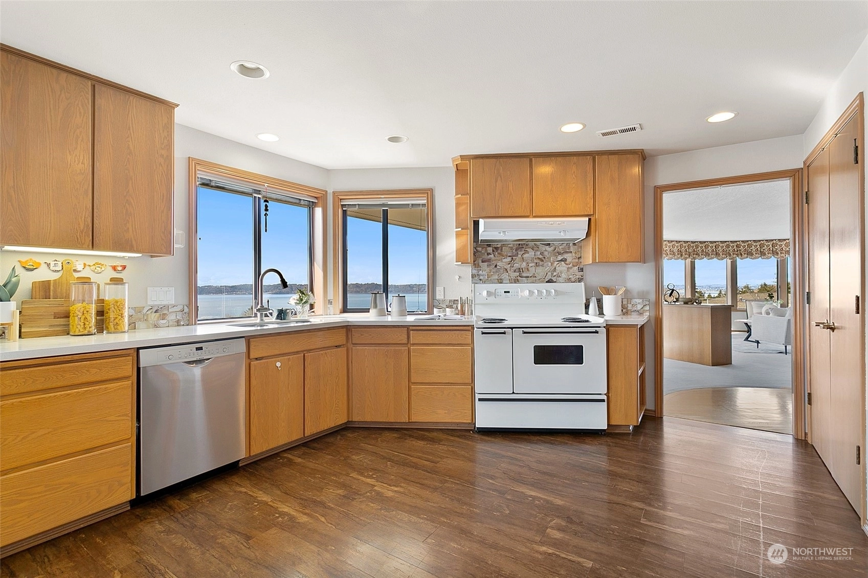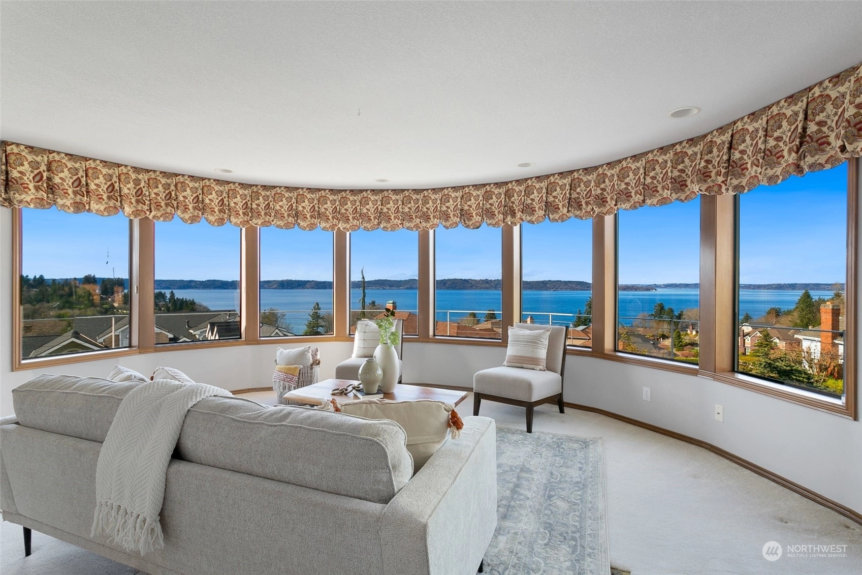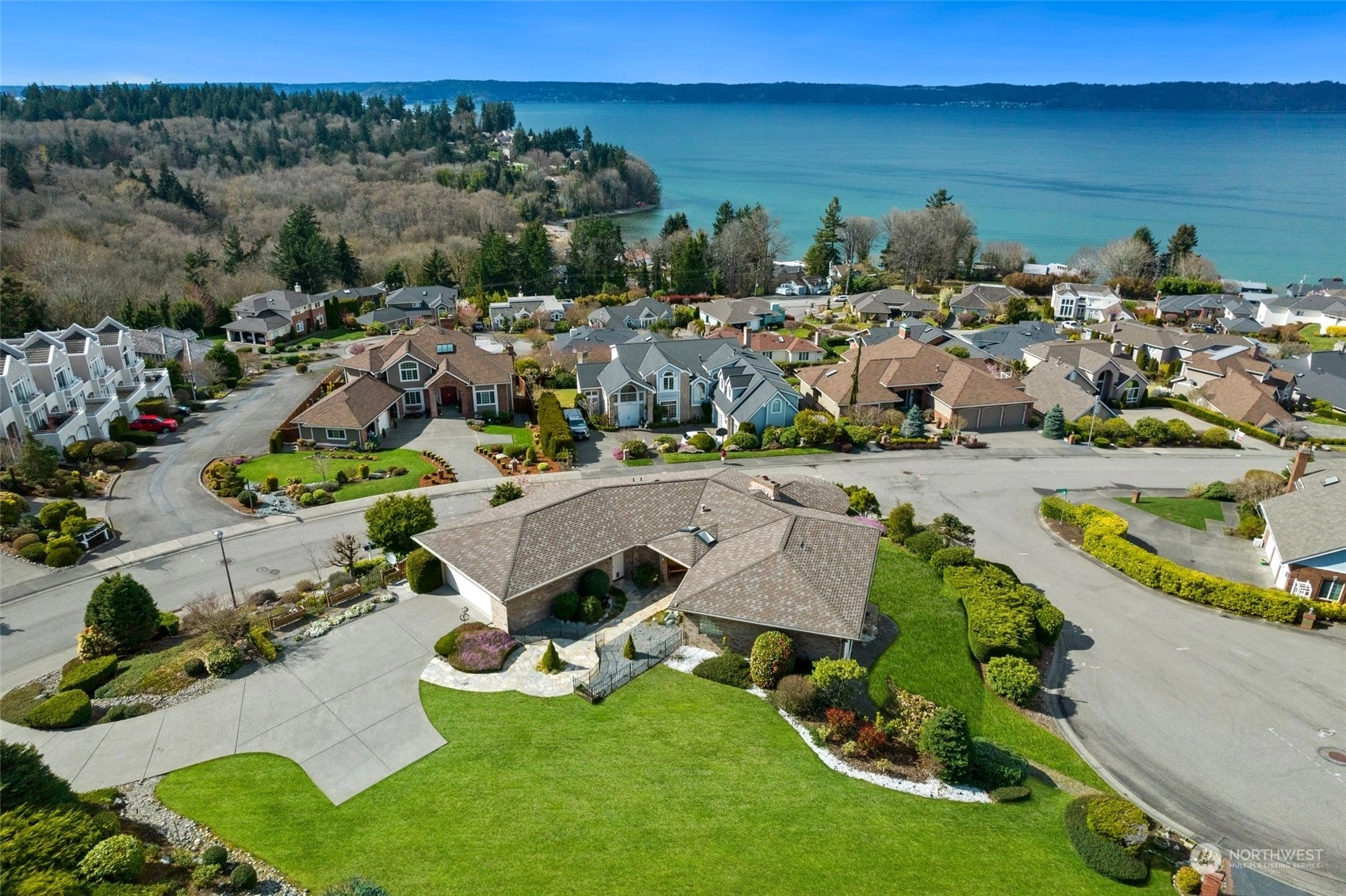 Immaculate custom built home in the coveted Bayview Estates. This home w/ commanding panoramic views of the Sound, City & Maury Island nestled on over half an acre lot features formal living w/ fireplace & dining room w/ colossal windows showcasing the majestic views! Spacious kitchen w/ breakfast nook & laundry for your convenience. Primary on main w/ more views, 5 piece bath & large walk-in closet. Guest bedroom on main or home office & guest bath. Additional bedrooms on lower level & family room w/ more views. Enjoy a bubbly in the parlor that features exposed beams & a cozy fireplace. Radiant floor heating throughout home! Spot Orcas & watch eagles at the balcony overlooking the lush landscaping. Welcome Home!