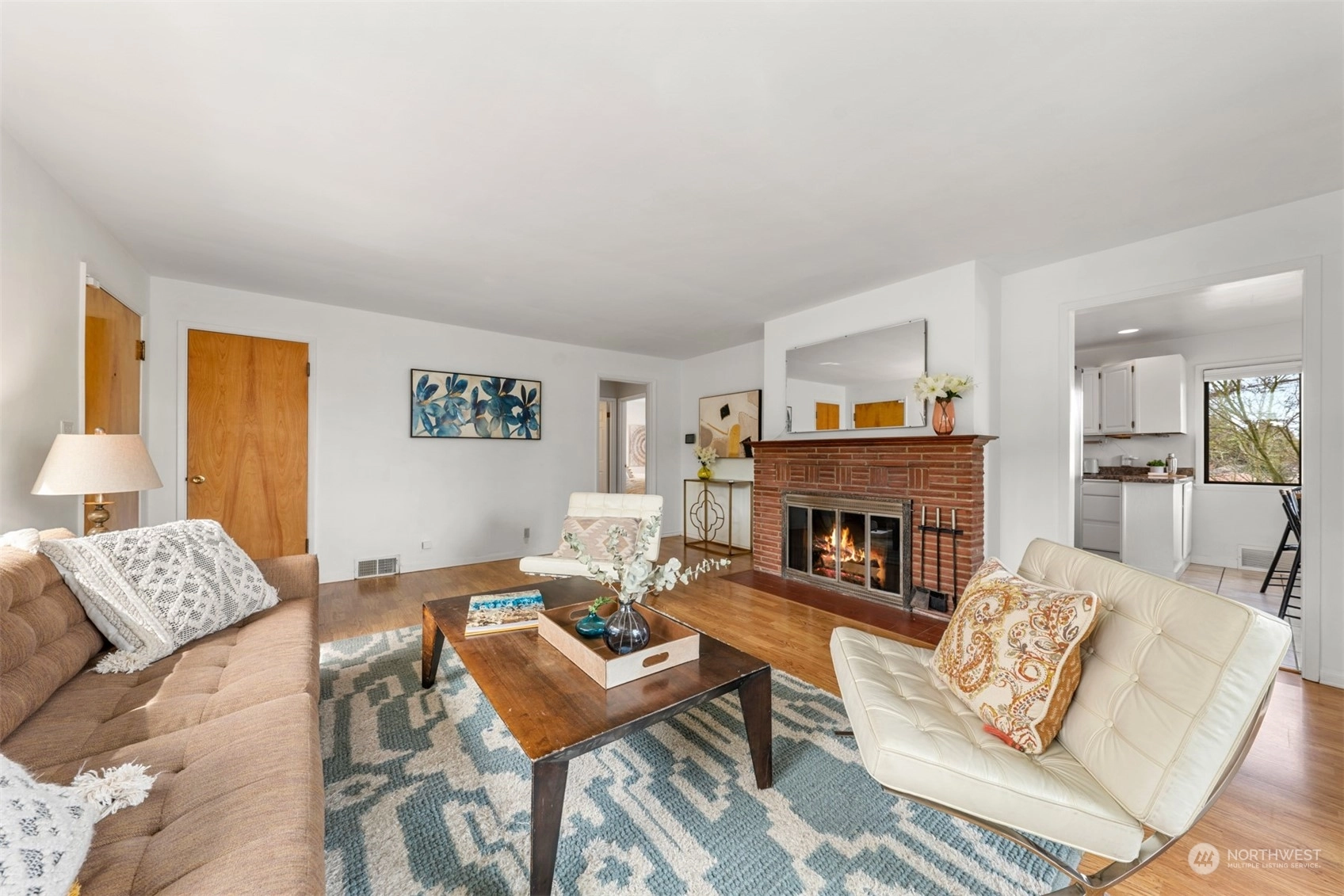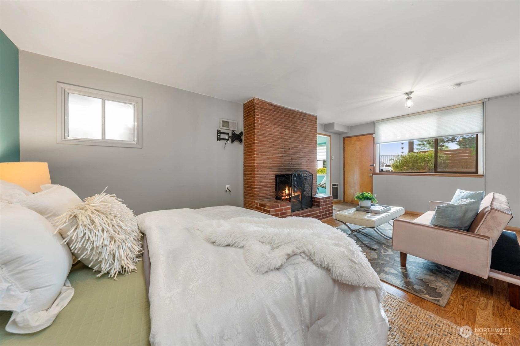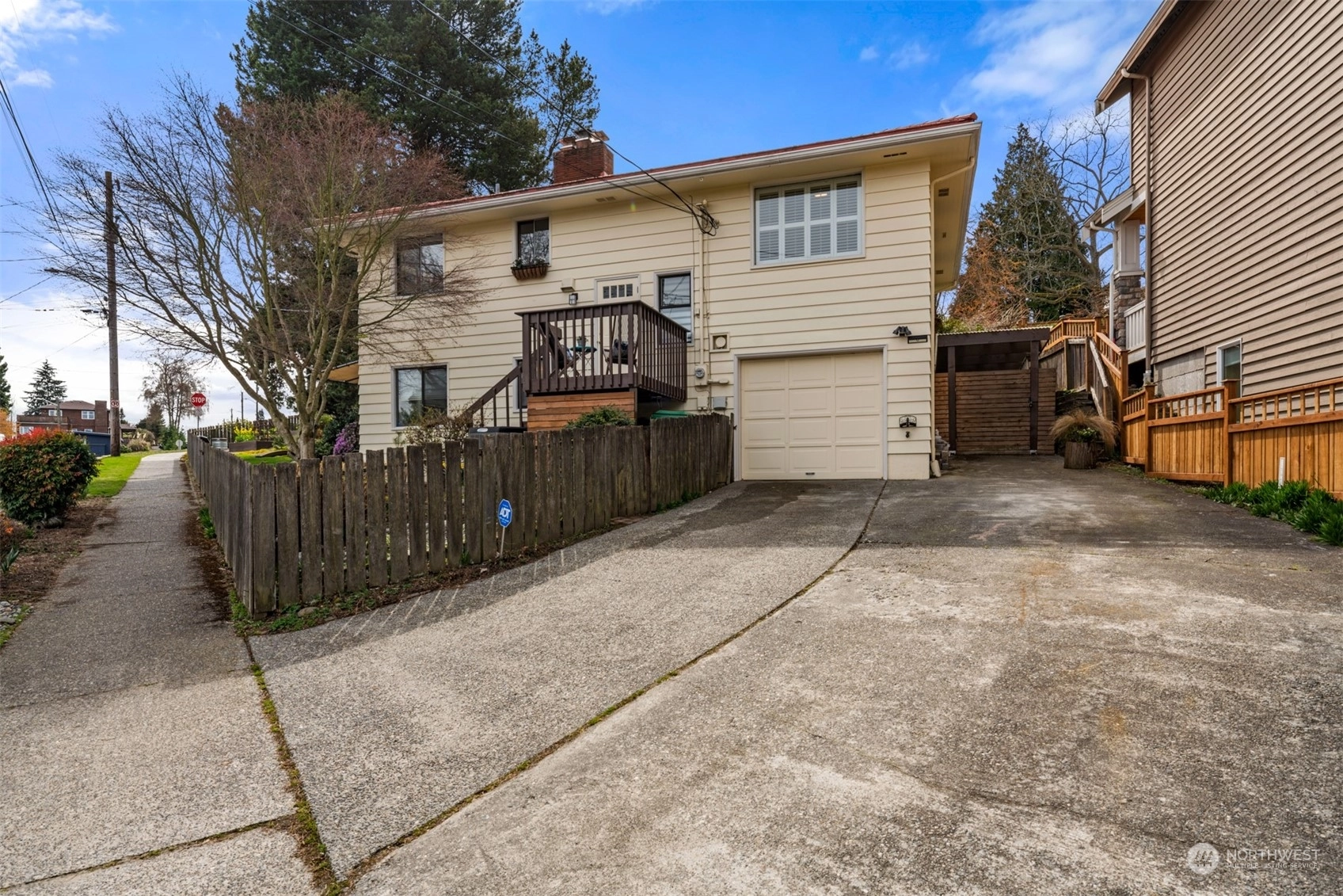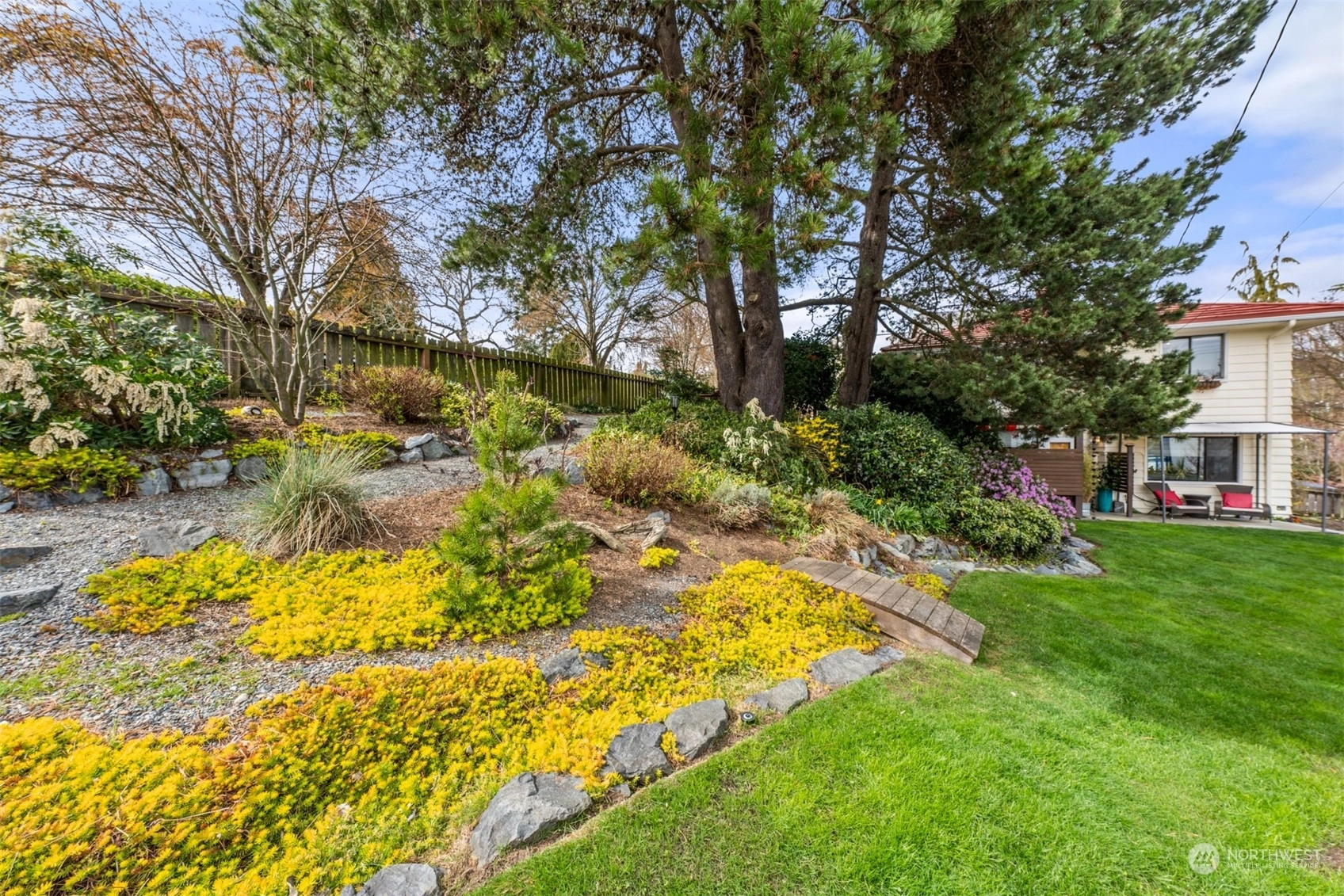 Welcome to this mid-century, originally zoned duplex, transformed years ago into a single family home located in desirable Loyal Heights. Perfectly situated on a professionally landscaped corner lot. Immediately notice the inviting living room w/its cozy frplc & abundant natural light. The main level also features an updated kitchen, complete w/stainless steel appliances, & an eating area plus 2 bedrooms & bath. The lower level has a primary suite w/frplc, & dressing area. Enjoy spending time in the fully fenced backyard, which offers plenty of space for gardening & soaking in the hot tub, looking at original work by local artist, Henry. Minutes from all the amenities that make this area so popular, trendy restaurants & parks galore!