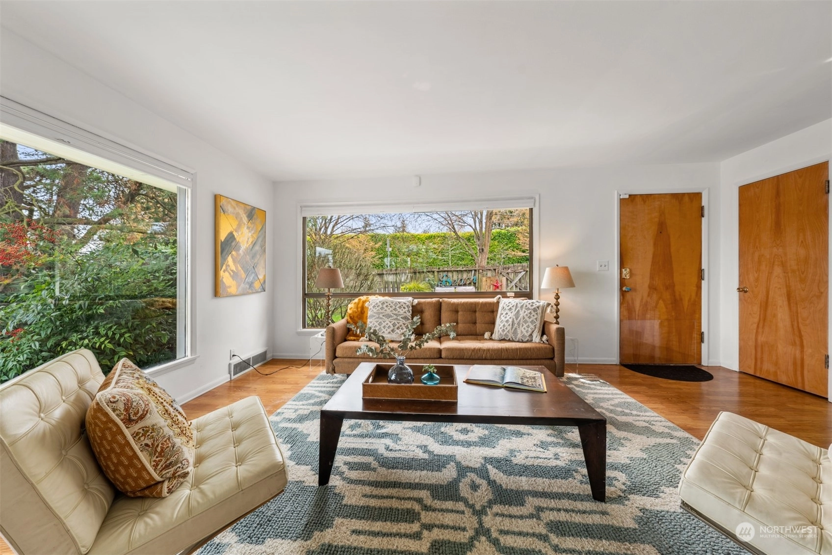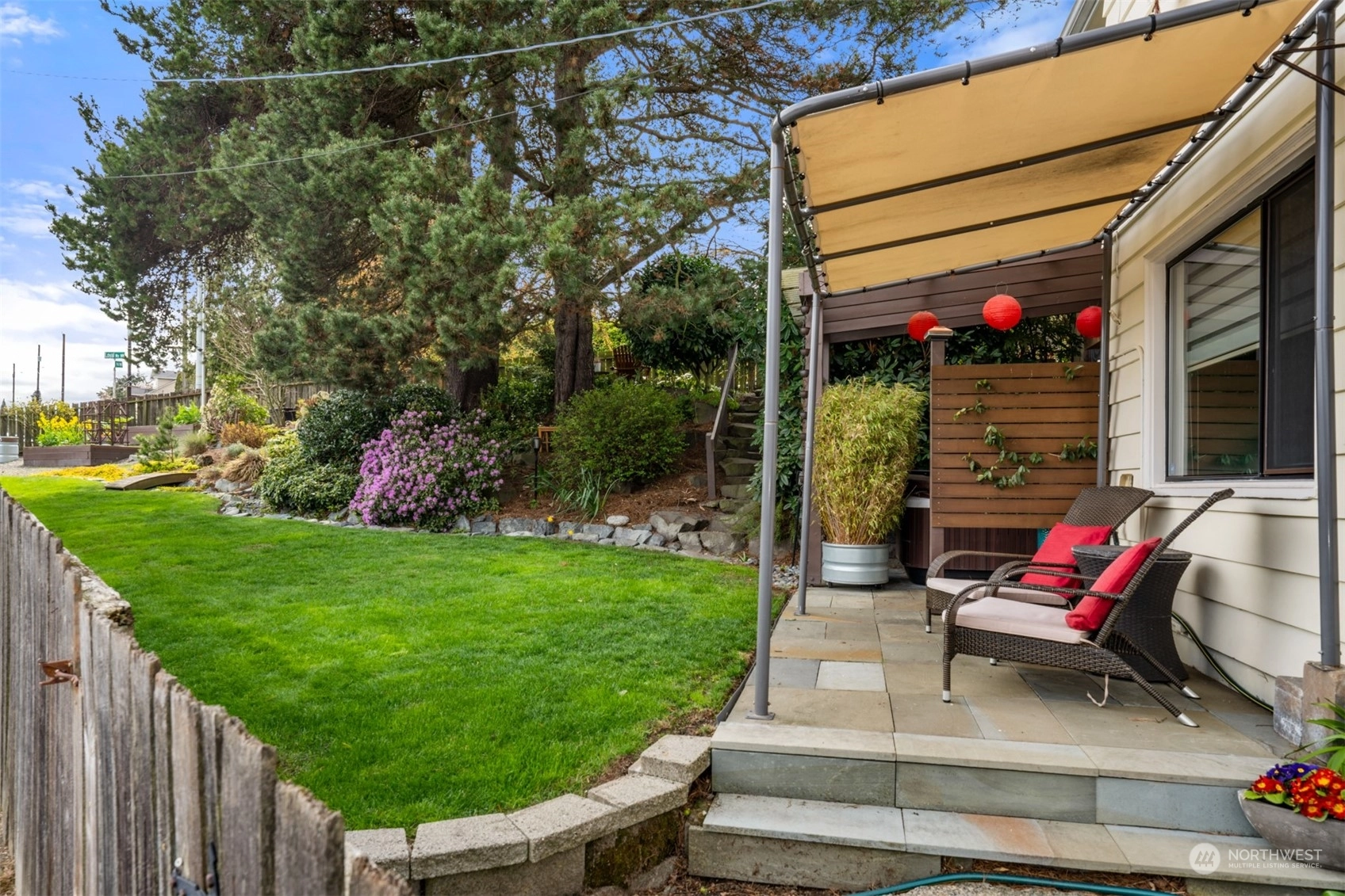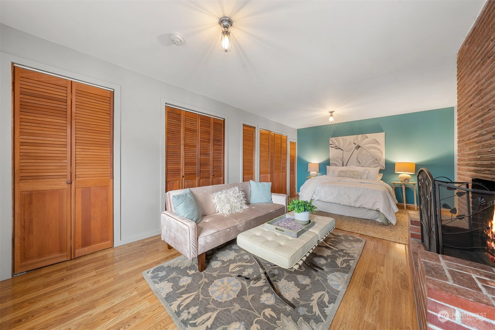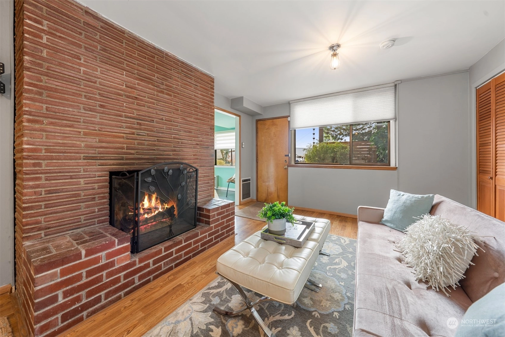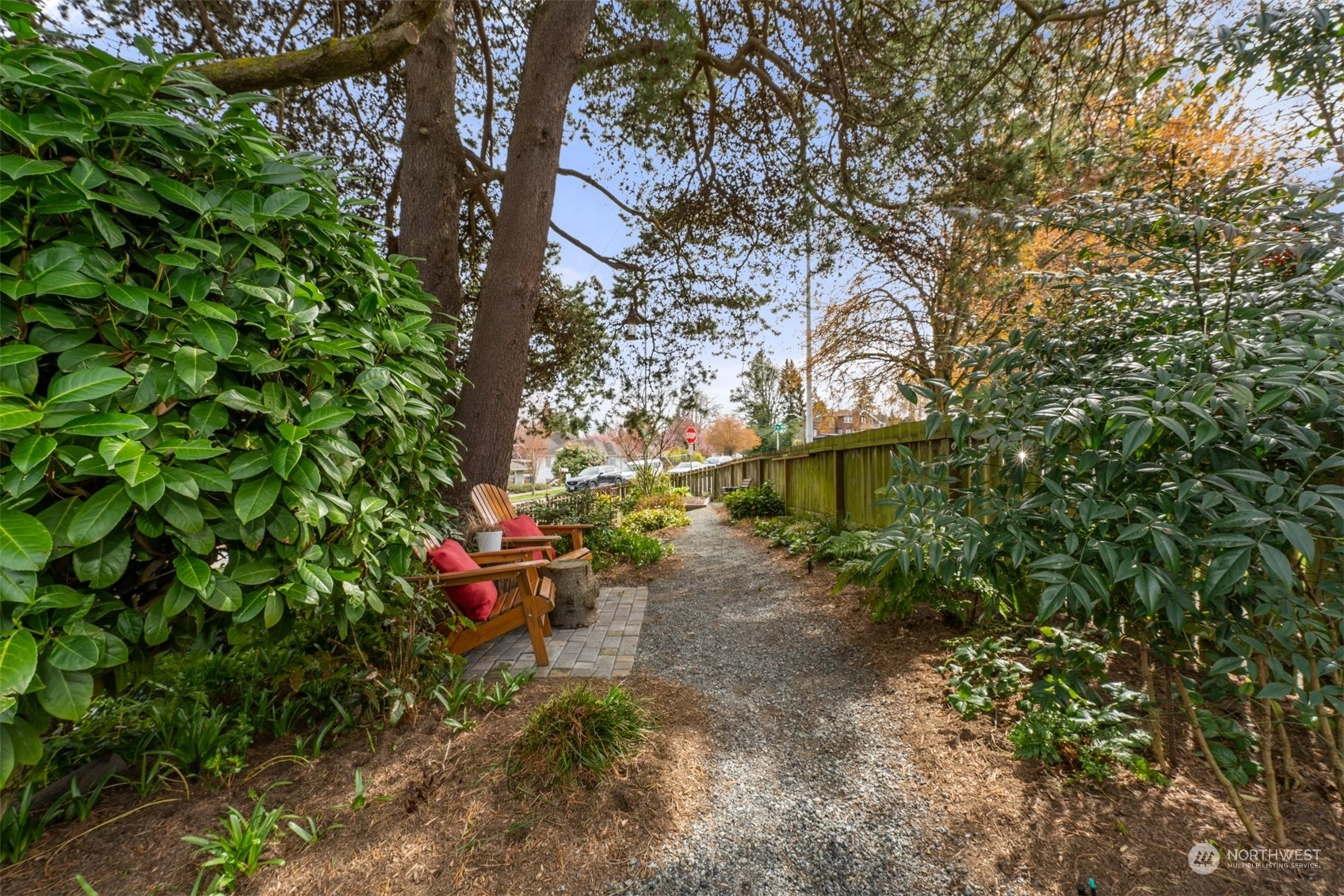 Welcome to this mid-century, originally zoned duplex, transformed years ago into a single family home located in desirable Loyal Heights. Perfectly situated on a professionally landscaped corner lot. Immediately notice the inviting living room w/its cozy frplc & abundant natural light. The main level also features an updated kitchen, complete w/stainless steel appliances, & an eating area plus 2 bedrooms & bath. The lower level has a primary suite w/frplc, & dressing area. Enjoy spending time in the fully fenced backyard, which offers plenty of space for gardening & soaking in the hot tub, looking at original work by local artist, Henry. Minutes from all the amenities that make this area so popular, trendy restaurants & parks galore!
