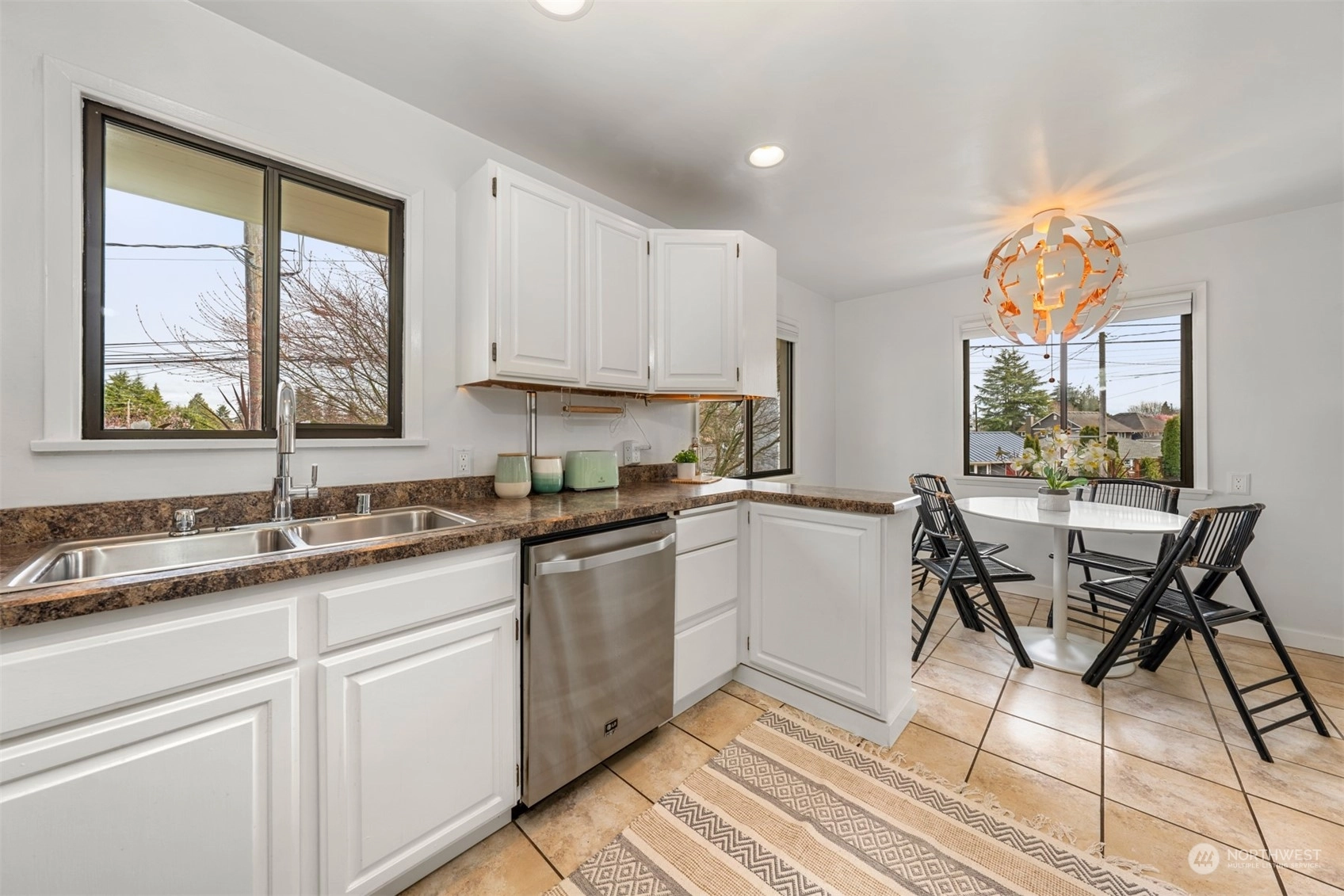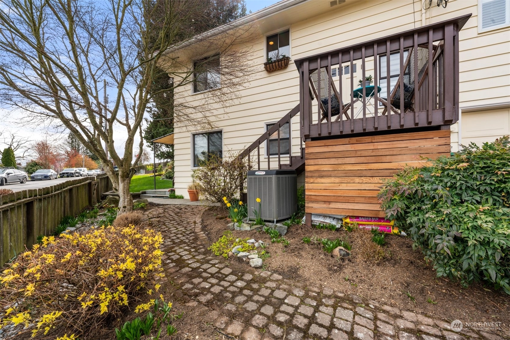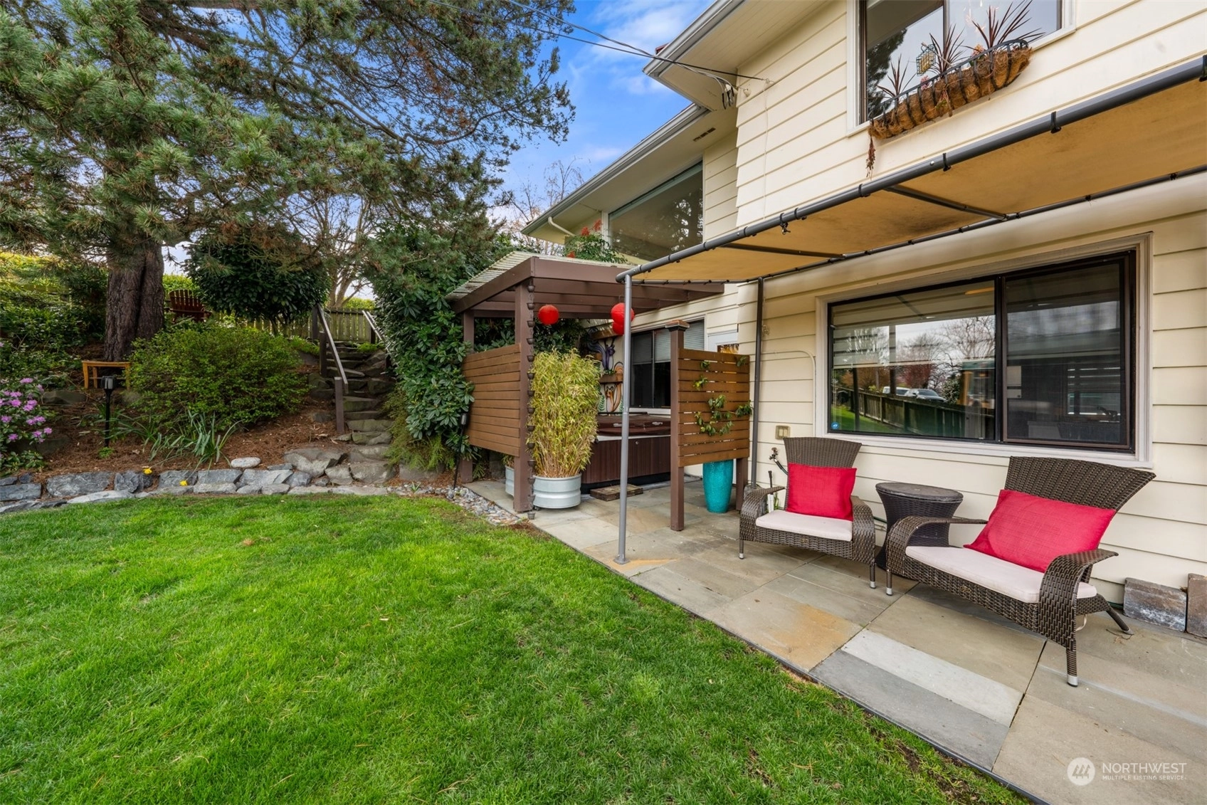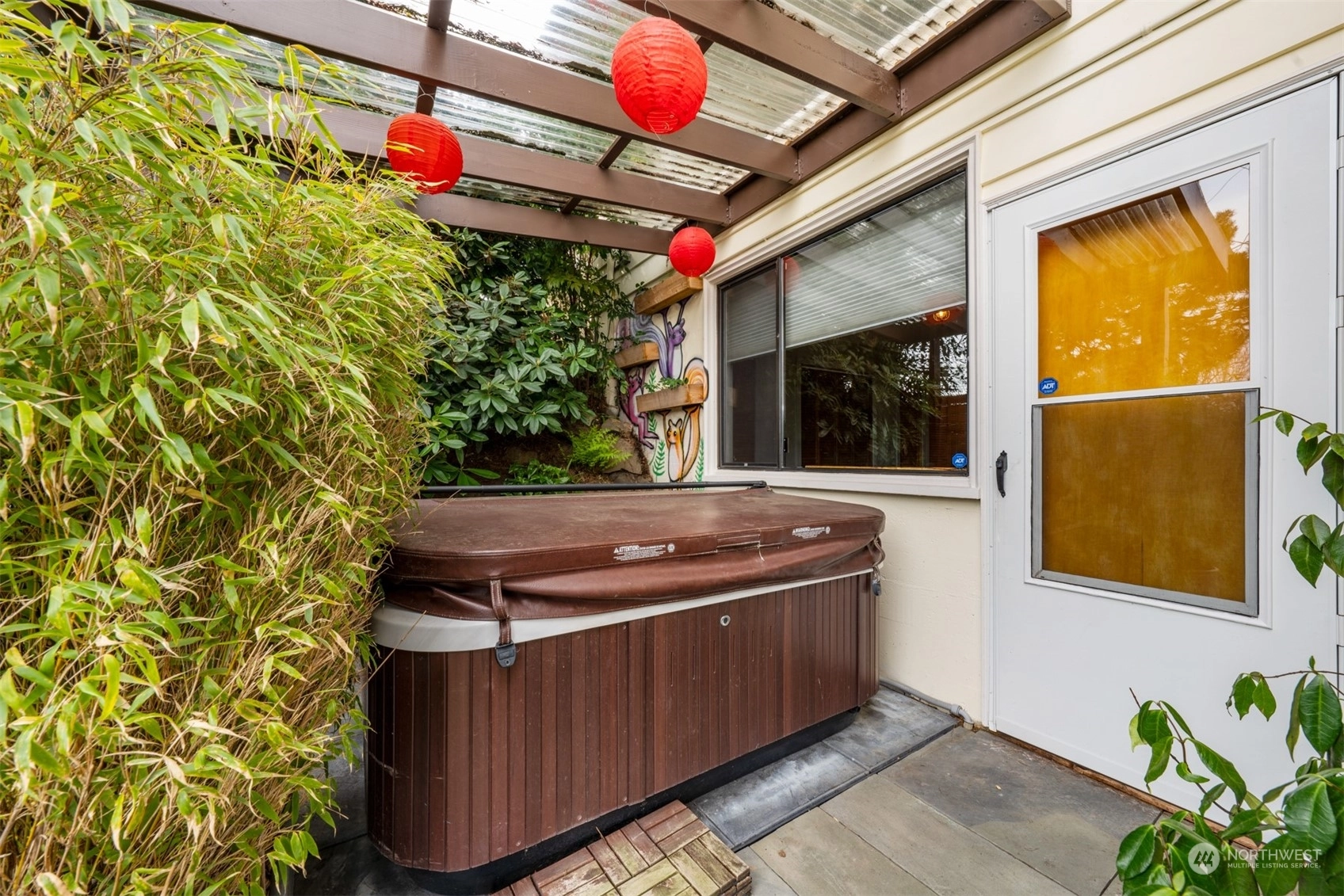 Welcome to this mid-century, originally zoned duplex, transformed years ago into a single family home located in desirable Loyal Heights. Perfectly situated on a professionally landscaped corner lot. Immediately notice the inviting living room w/its cozy frplc & abundant natural light. The main level also features an updated kitchen, complete w/stainless steel appliances, & an eating area plus 2 bedrooms & bath. The lower level has a primary suite w/frplc, & dressing area. Enjoy spending time in the fully fenced backyard, which offers plenty of space for gardening & soaking in the hot tub, looking at original work by local artist, Henry. Minutes from all the amenities that make this area so popular, trendy restaurants & parks galore!