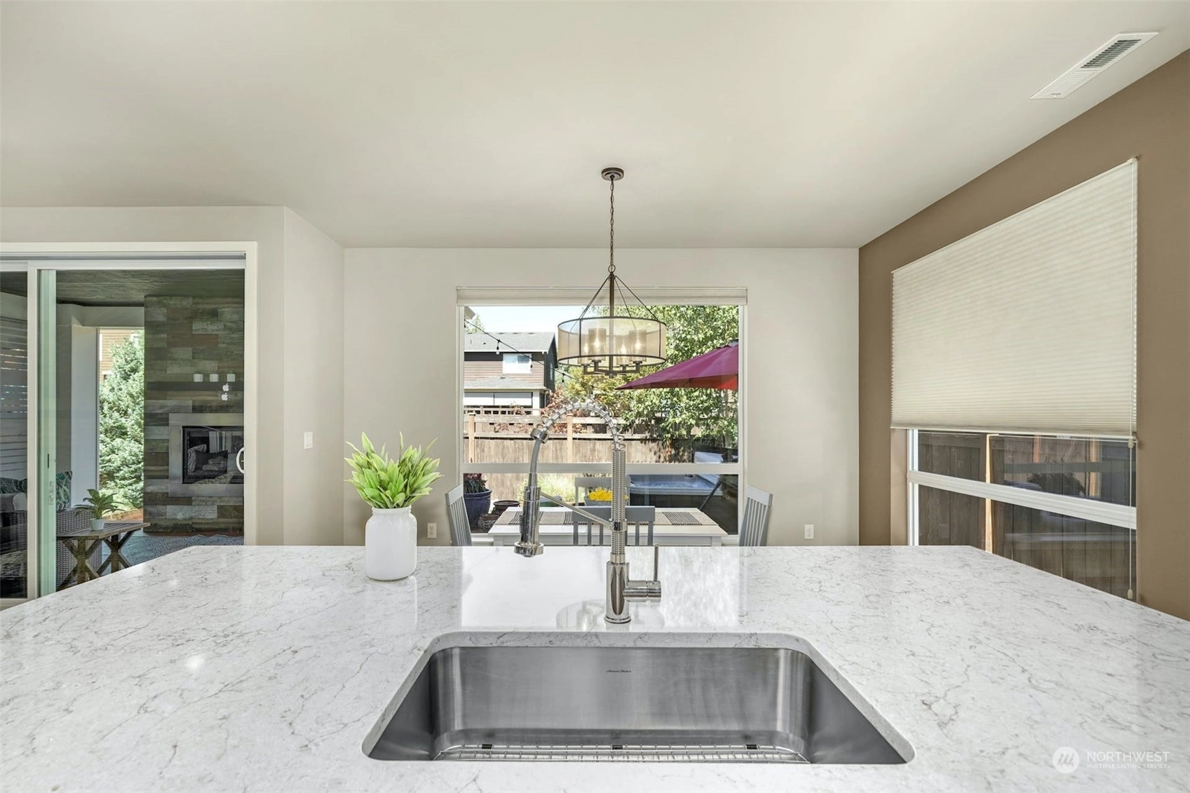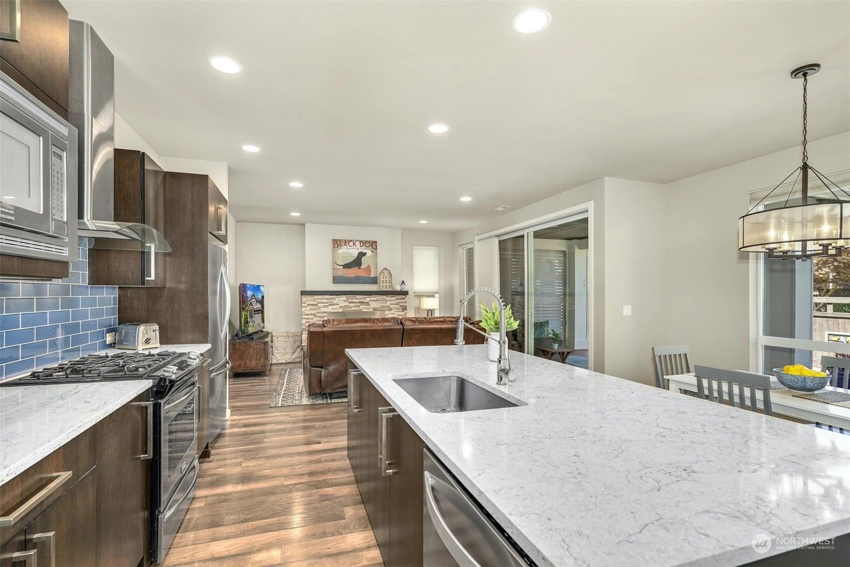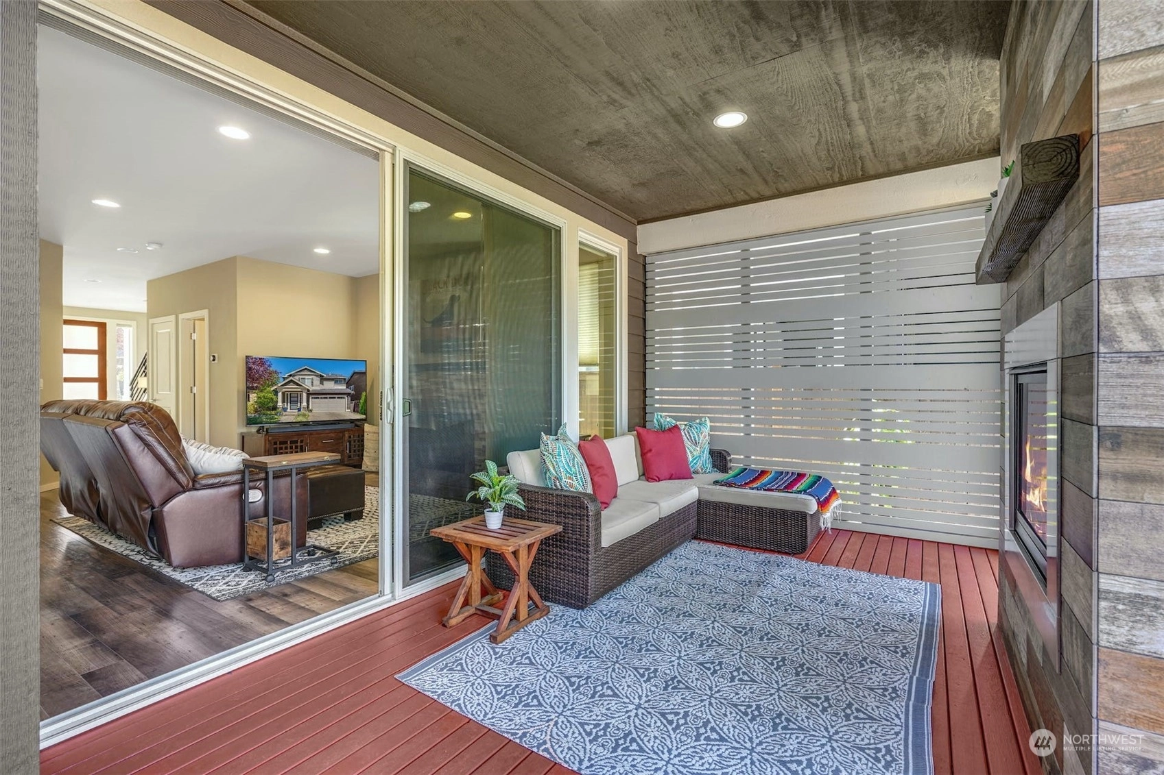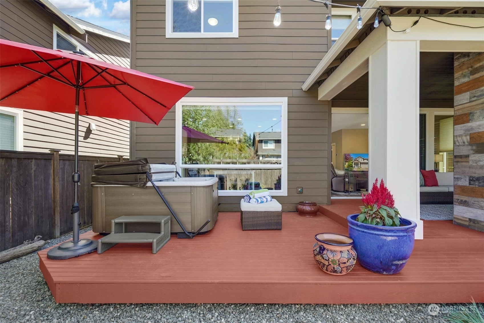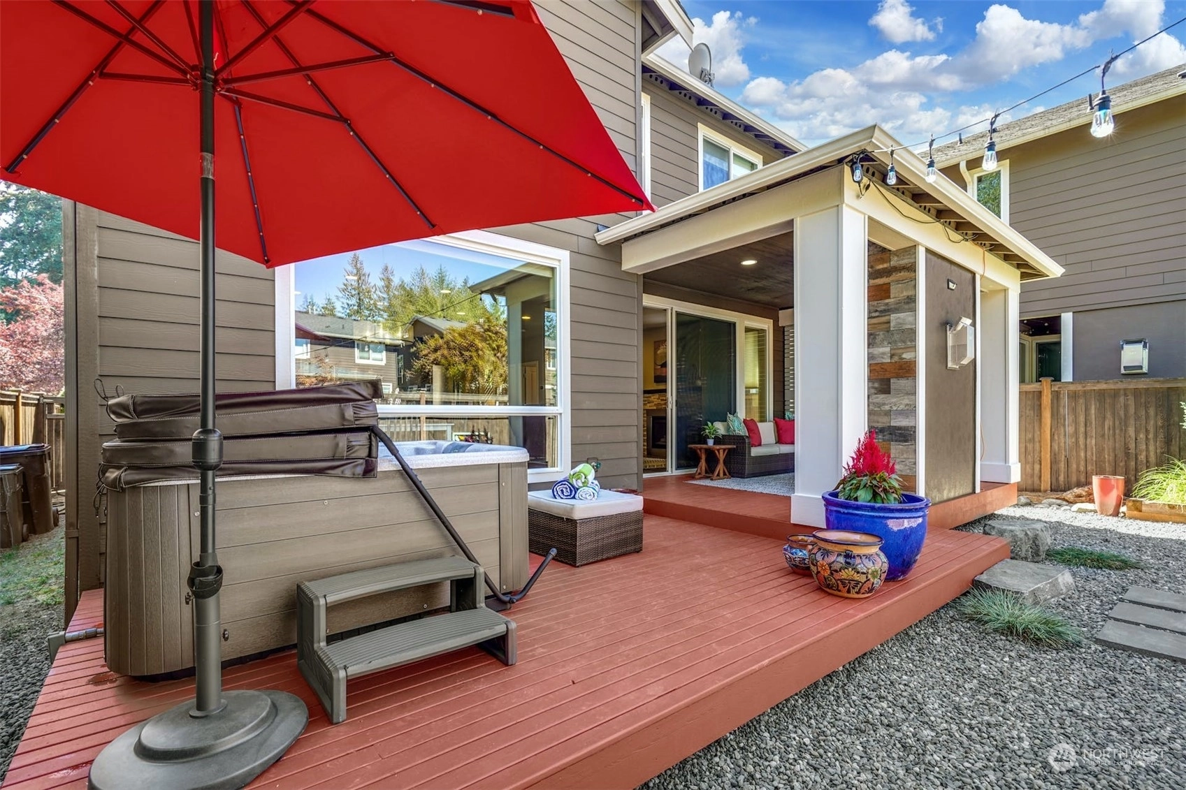 CONTEMPORARY MainVue home in Stonewater Creek, just 10 minutes from Silver Lake. The main floor plan features an open concept design. Upper level boasts Primary Suite, 3 Bedrooms, Loft area, 2 Bathrooms plus Laundry. Upgraded chefs Kitchen with quartz counters, spacious center island, blue glass backsplash & all SS appliances. Covered private screened deck area with upgraded gas fireplace & adjoining open deck area with hot tub. Numerous upgrades throughout the home: A/C, flooring, custom wall treatments, light fixtures and more. Your beautifully landscaped backyard comes with a gated entrance to the private community park & playground area. Upgraded value equals approximately $50K. *Hot Tub, Garage Racks & Freezer included in purchase.