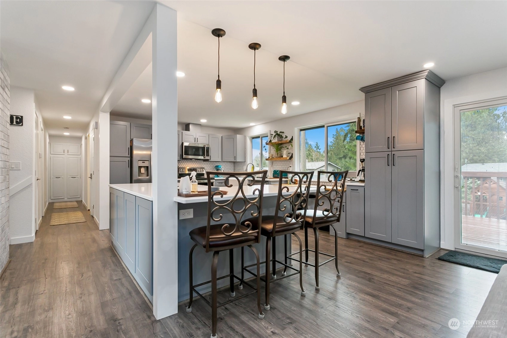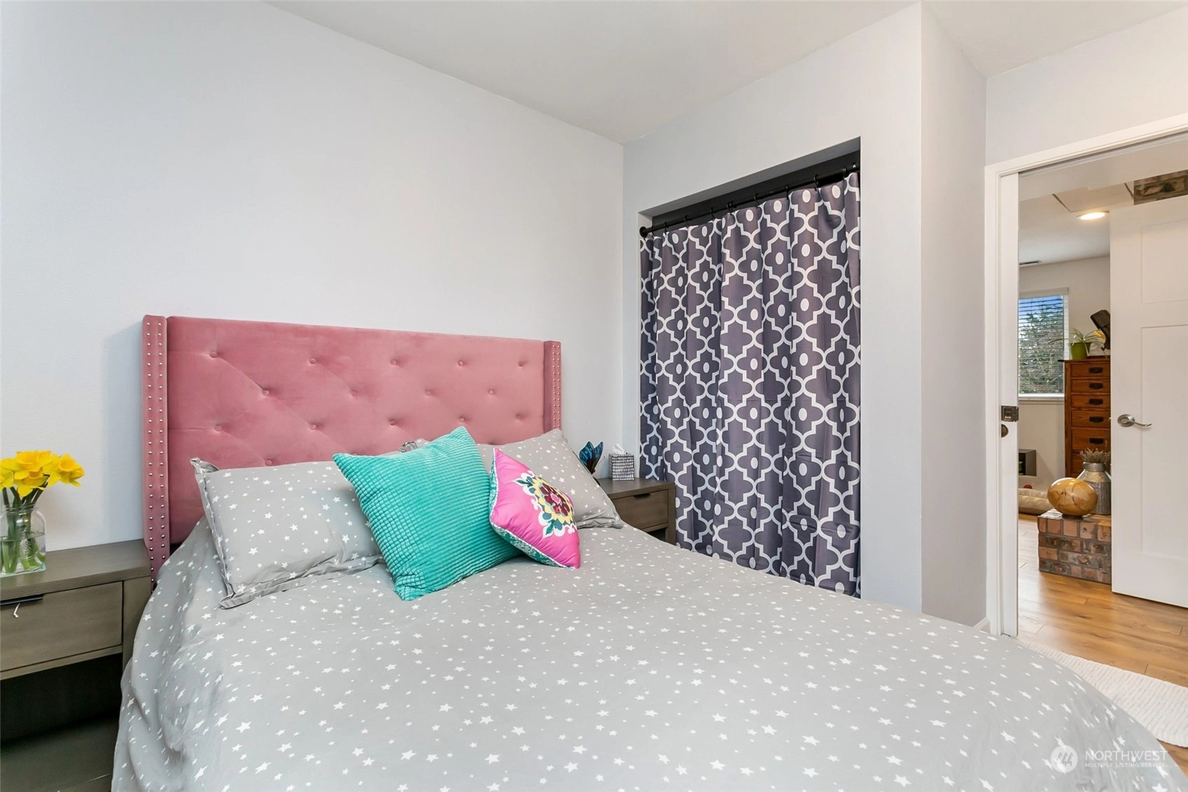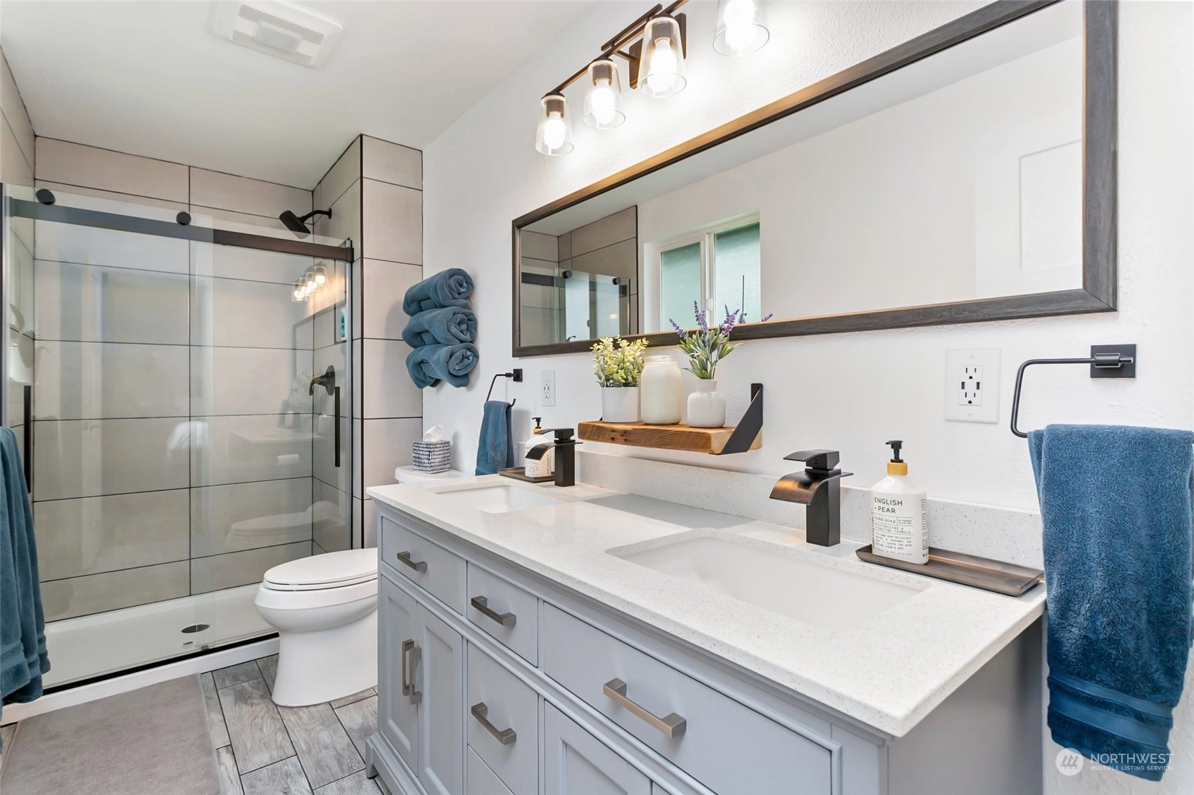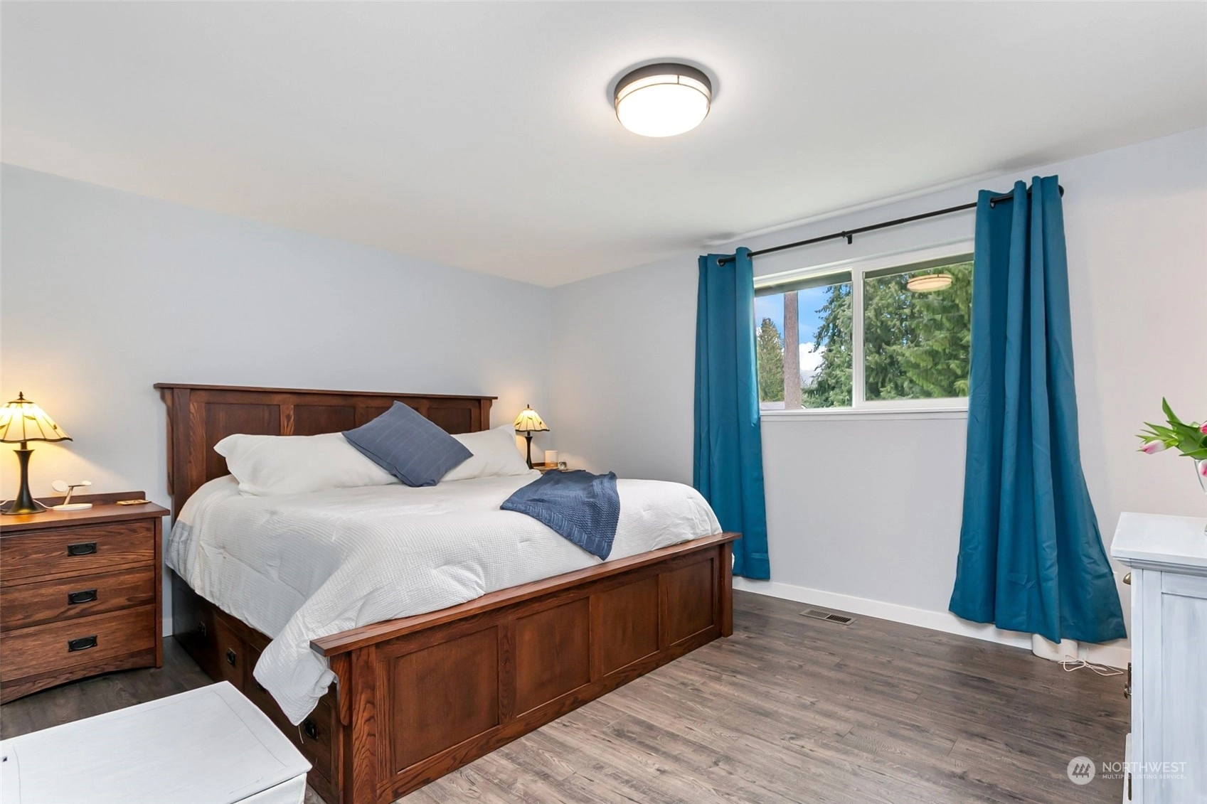 Charming home located in a quiet well established neighborhood. This beautiful gem is a 3 bedroom with an additional bonus room, and sits on a huge lot that is sure to impress. The kitchen has been thoroughly remodeled featuring gorgeous new quartz countertops and stainless steel appliances. Primary bedroom has a new closet and completely remodeled en suite bathroom. Step outside to the large, beautiful yard and enjoy the deck overlooking the established garden featuring apple, cherry, plum trees and more. Built in two car garage. This home includes a new heat pump, windows, flooring, RV parking, and truly so much more. Easy access to freeway, shops, and parks.