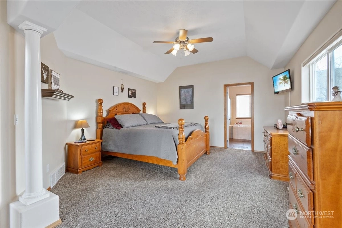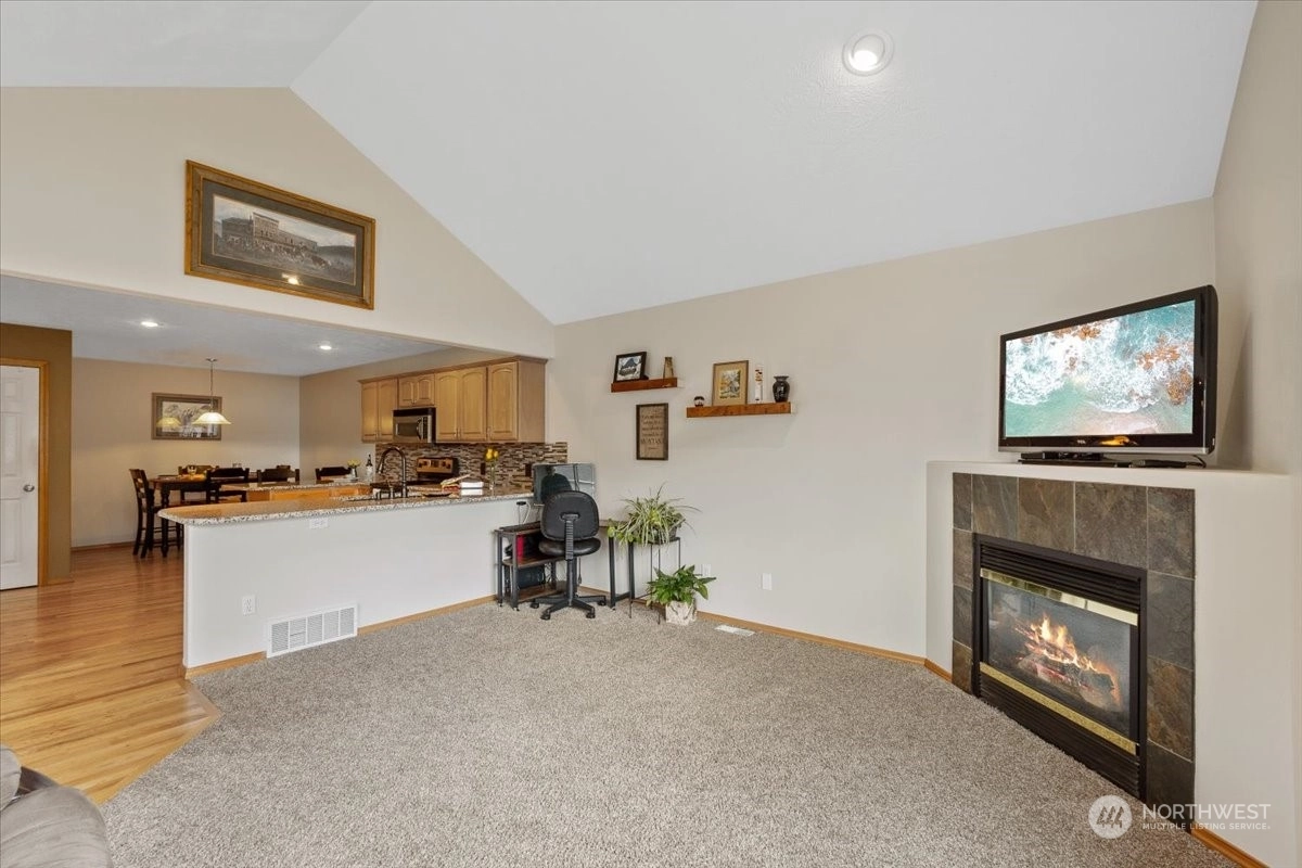 Hardwood Wall to Wall Carpet Bath Off Primary Ceiling Fan(s) Dining Room Security System Sprinkler System Vaulted Ceiling(s) Walk-In Closet(s) Wet Bar Fireplace Water Heater