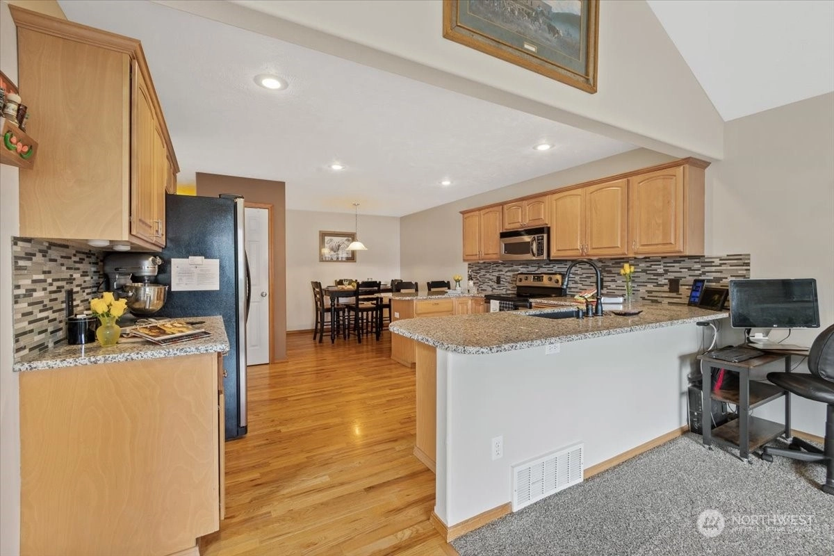 Welcome to this stunning 5 bedroom, 4 bath one-owner home located in the desirable Shelley Lake neighborhood. This very well maintained property offers main floor living with a spacious kitchen featuring stainless steel appliances & hard surface counters. There's formal & informal dining options and a family room leading to a beautifully backyard complete with a firepit. The primary bedroom features a full bath including a garden tub, large closet and a sitting area offering the perfect retreat after a long day. The fully finished basement is an entertainer's dream boasting a fully functioning wet bar with it's own pizza oven that's perfect for hosting gatherings and your special events. This home has it all!