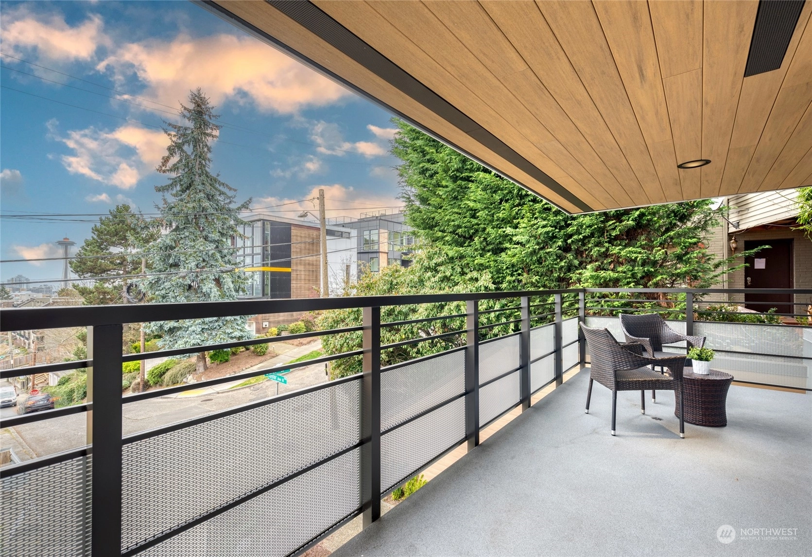 Enjoy views of the Space Needle, Seattle skyline and Lake Union from your gorgeous covered terrace, all year round! This boutique building has been completely renovated and has an entirely new building envelope. The oversized 2 bed unit includes 2 bathrooms plus a bonus space, and has an open concept feel with views from almost every room! The timeless kitchen has abundant storage, open flow and tons of prep space- perfect for entertaining. Gorgeous skyline views from the full primary suite, don't miss the walk-in closet. The versatile bonus space can be used as a den, office, workout space and more. Secure building with 2 parking spots, huge storage unit and low HOA dues! Easy access to Downtown, SLU and Climate Pledge Arena!