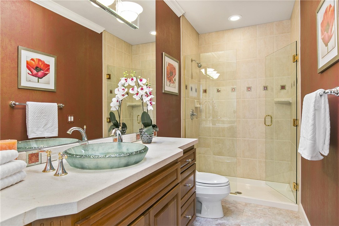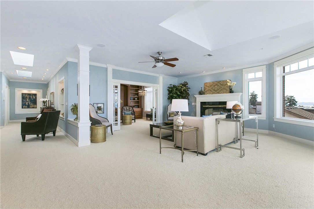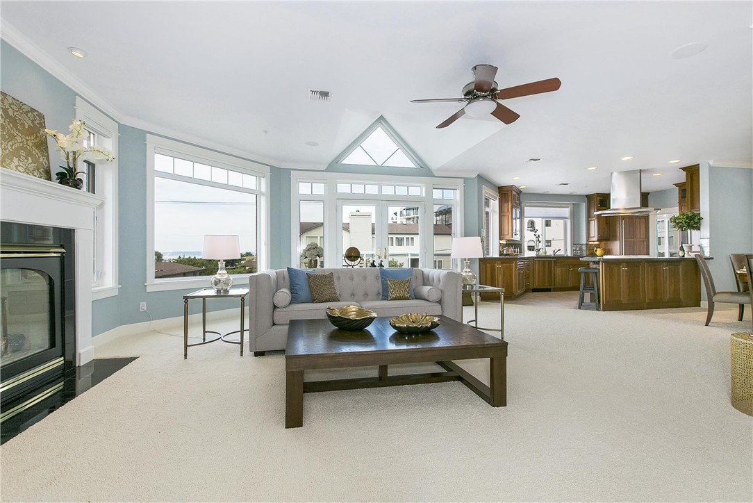 With views of Puget Sound & the Olympics, this tasteful Downtown Edmonds penthouse is among the finest in the area. Over 2500 sq ft of sophisticated living space features a chef’s kitchen open to gorgeous light-filled living & dining rooms, a generous den with a wall of custom built-ins, and two bedroom suites - each w/sumptuous 5 piece baths offering spa-like luxury. An almost unheard of 3 parking spots & abundant storage complete the package. Experience uptown living in Downtown Edmonds!