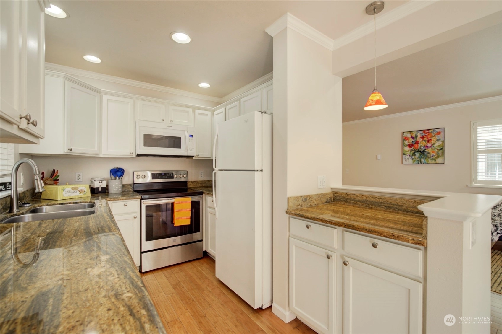 Come home to your retreat in the city! Light and bright with new carpet, new interior paint, granite counter tops, sustainable bamboo flooring, plantation shutters, open concept living and dining area. This home has a lot of storage and all appliances stay. 2 of the 3 bedrooms have walk in closets!Easy access to Everett Mall, Boeing, Hiway 99 and I-5 and yet a very private and quiet location in Shaw Creek. Spacious 1 car garage plus 2 more cars can fit in the driveway, enough parking space for your needs. Back deck has western exposure for longer sunshine this summer. This property belongs to Mukilteo school district. This is your place, tour now and see it in person.