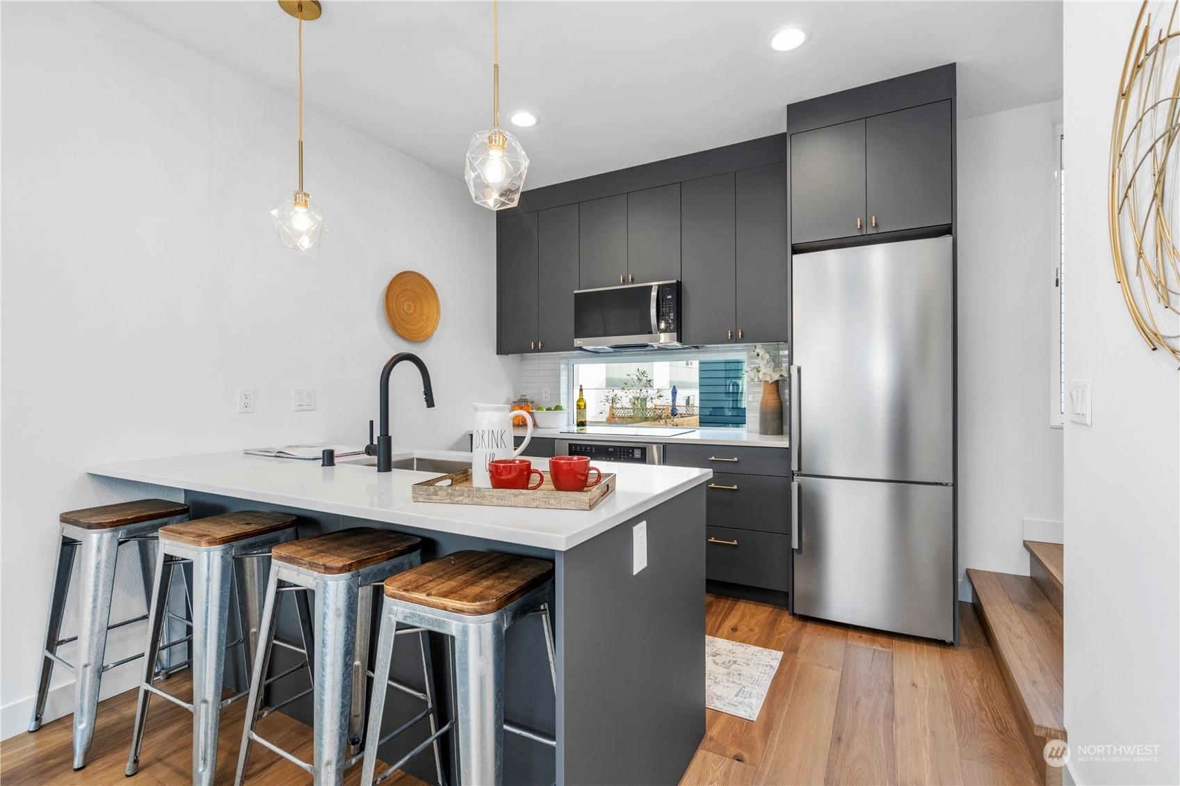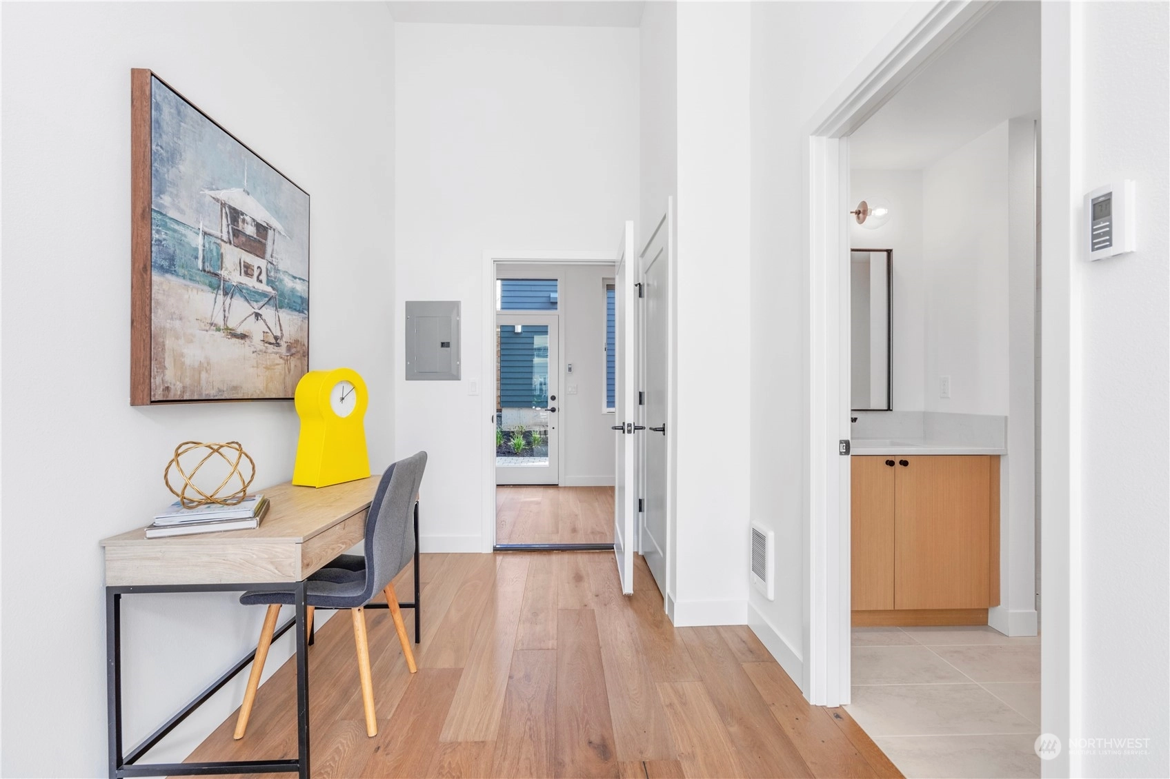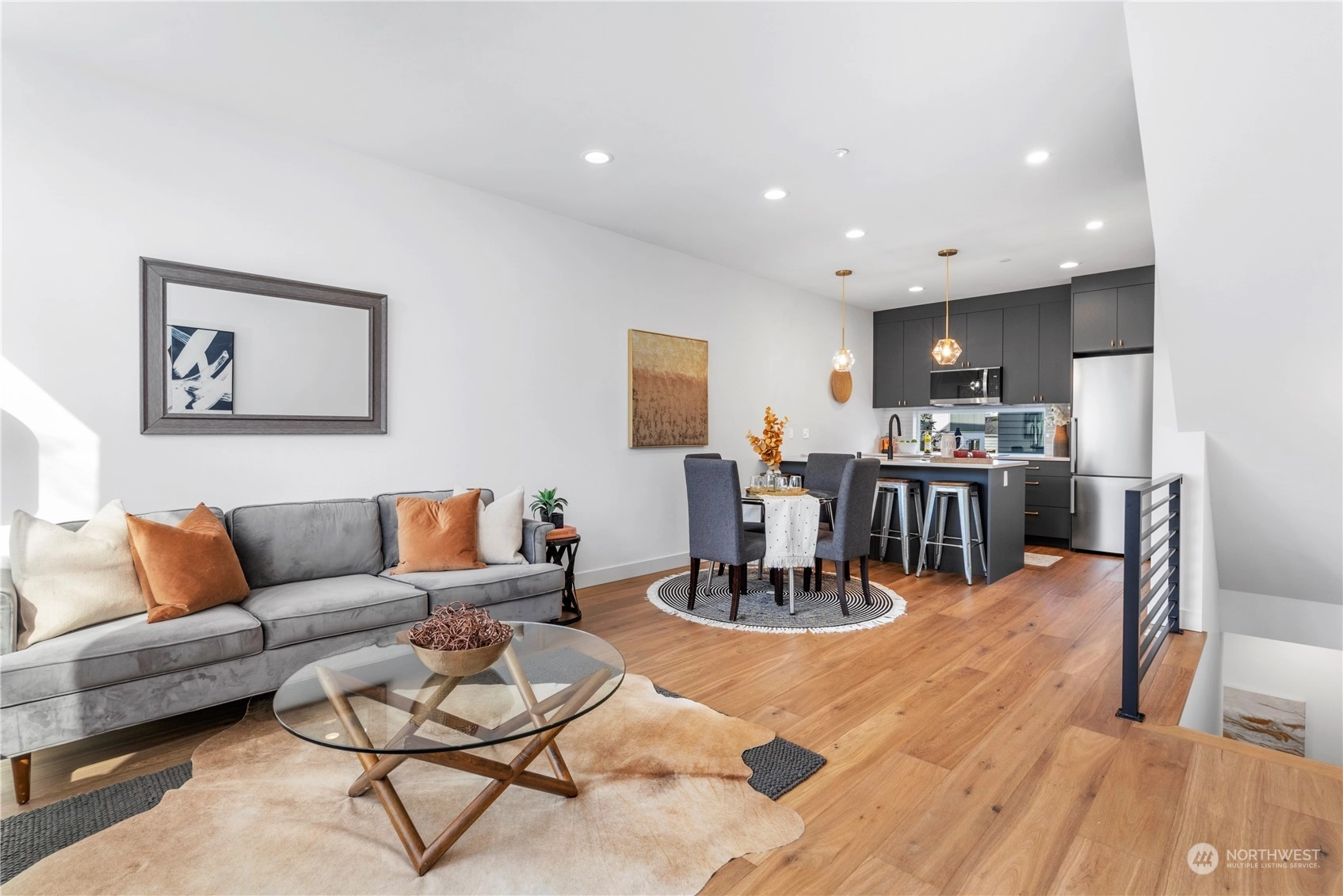 Exquisite new construction Live Work Units in the heart of the Morgan Junction neighborhood unparalleled to others! This Live Work commercial space is finished out with super high ceilings, tons of natural light, hdwd floors, separate entrance & parking stall. Separated Upper level with open great room living & kitchen with custom cabinets & hardwood floors throughout & mini split. Top floor primary with nice sized master bath & second bedroom or office with great Westerly views. Head up to the private roof top deck for entertaining & the best sunsets views of the Puget Sound & Olympic Mtns. Less than a block to everything you need or want including: grocery, gyms, bars, restaurants, coffee shops & transit. No HOA's. No expense was spared!