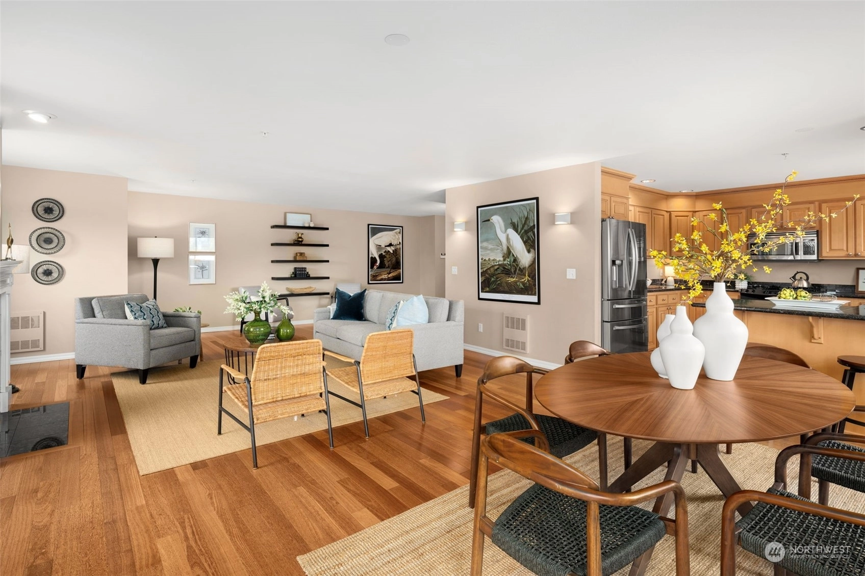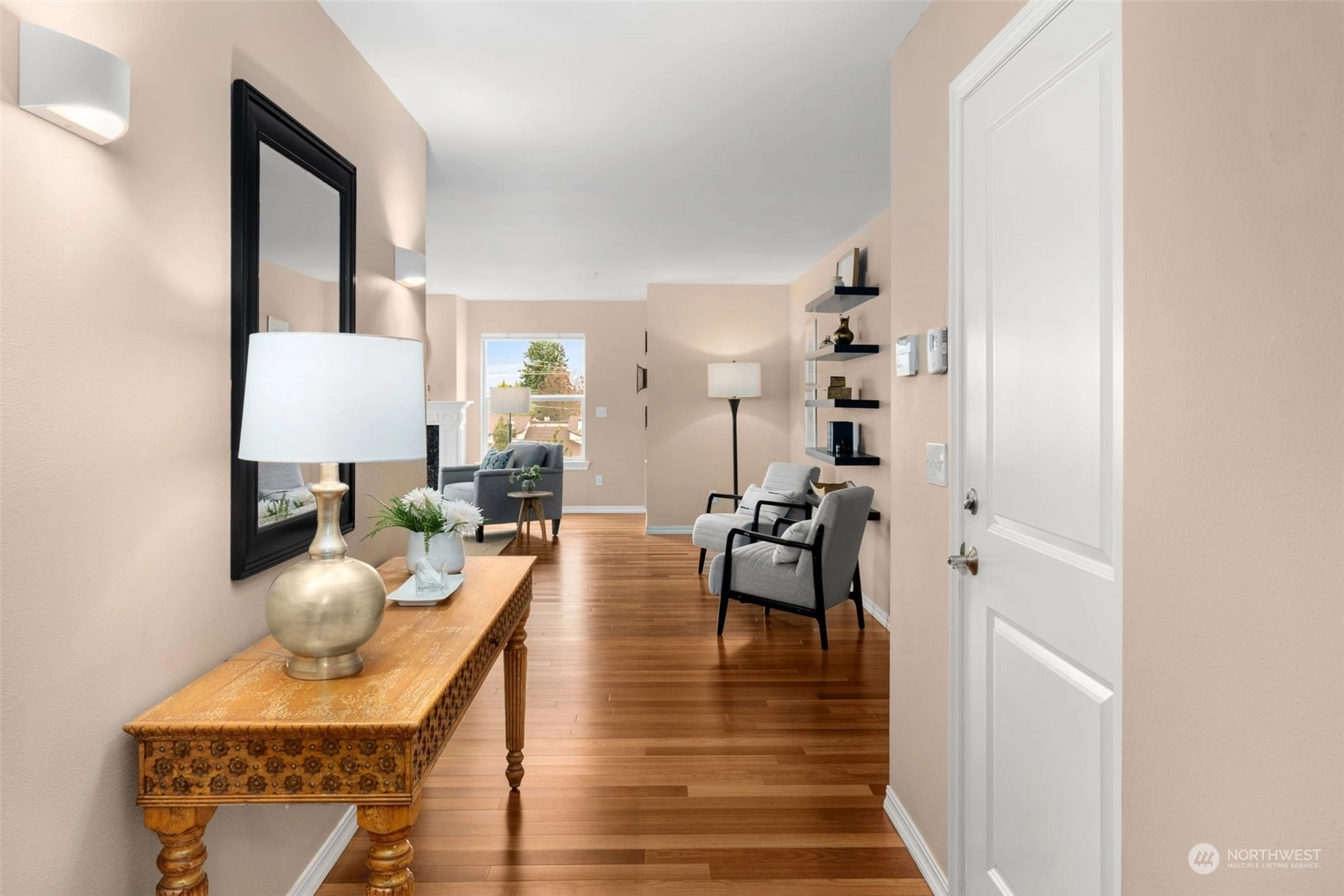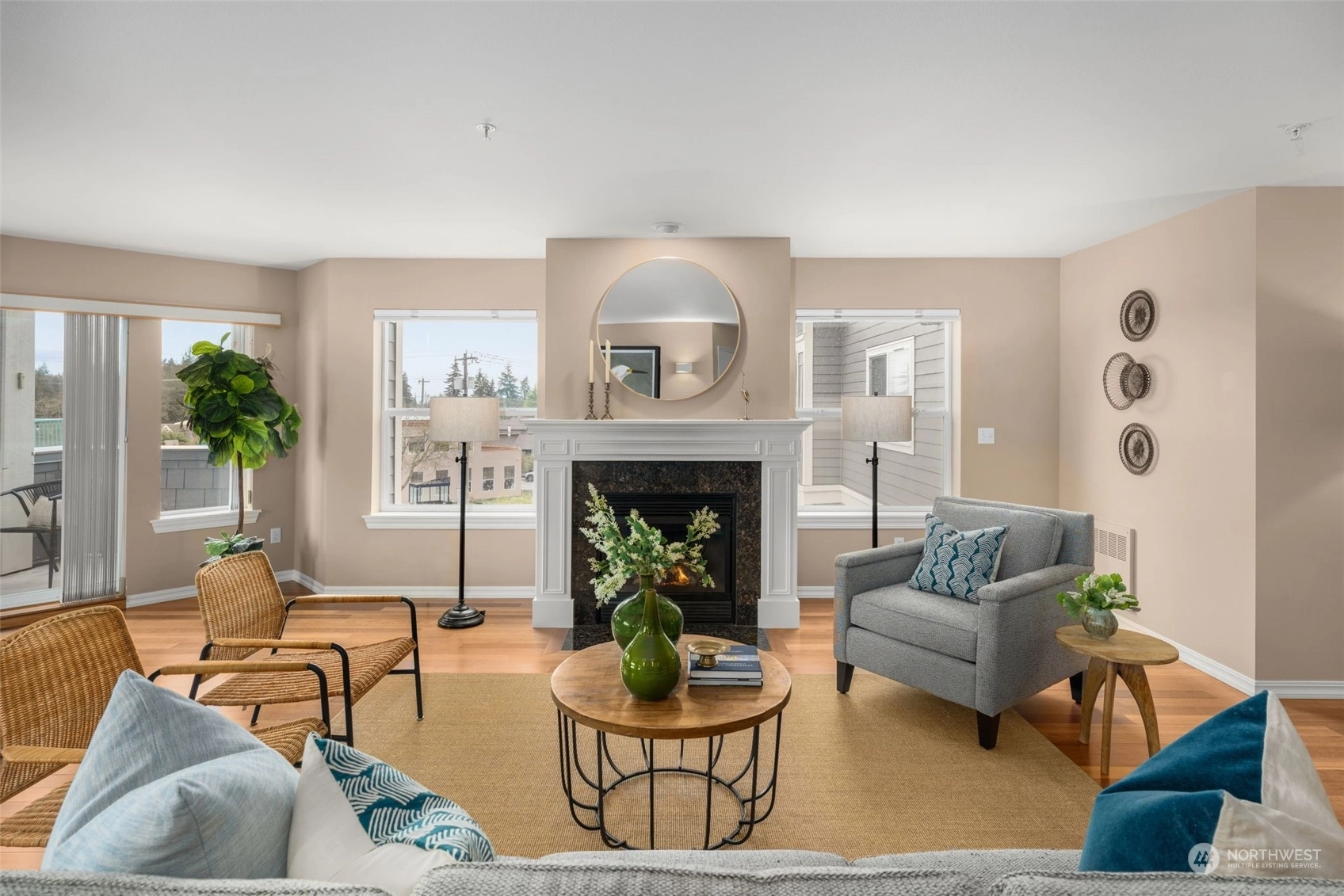 Stunning top floor condo with soaring Olympic Mountain views in coveted Richmond Beach. Enjoy single level living with easy elevator access. This SW-facing, light-filled home is an all-season retreat, featuring nearly 2,000 sf of gracious living space, with an inviting, open living & dining area + kitchen with breakfast bar, stainless appliances & beautiful hardwoods. Enjoy summer sunsets from your view deck or quiet evenings in by the gas fireplace. Home features 2 bedrooms + den/office & 2 baths incl. a primary suite with THE walk-in closet & en-suite bath. RARE bonuses: 2 secure garage parking spaces & a 200 sf storage room for all the extras. Stroll to Richmond Beach, shops, eateries & to all your new favorite neighborhood haunts!
