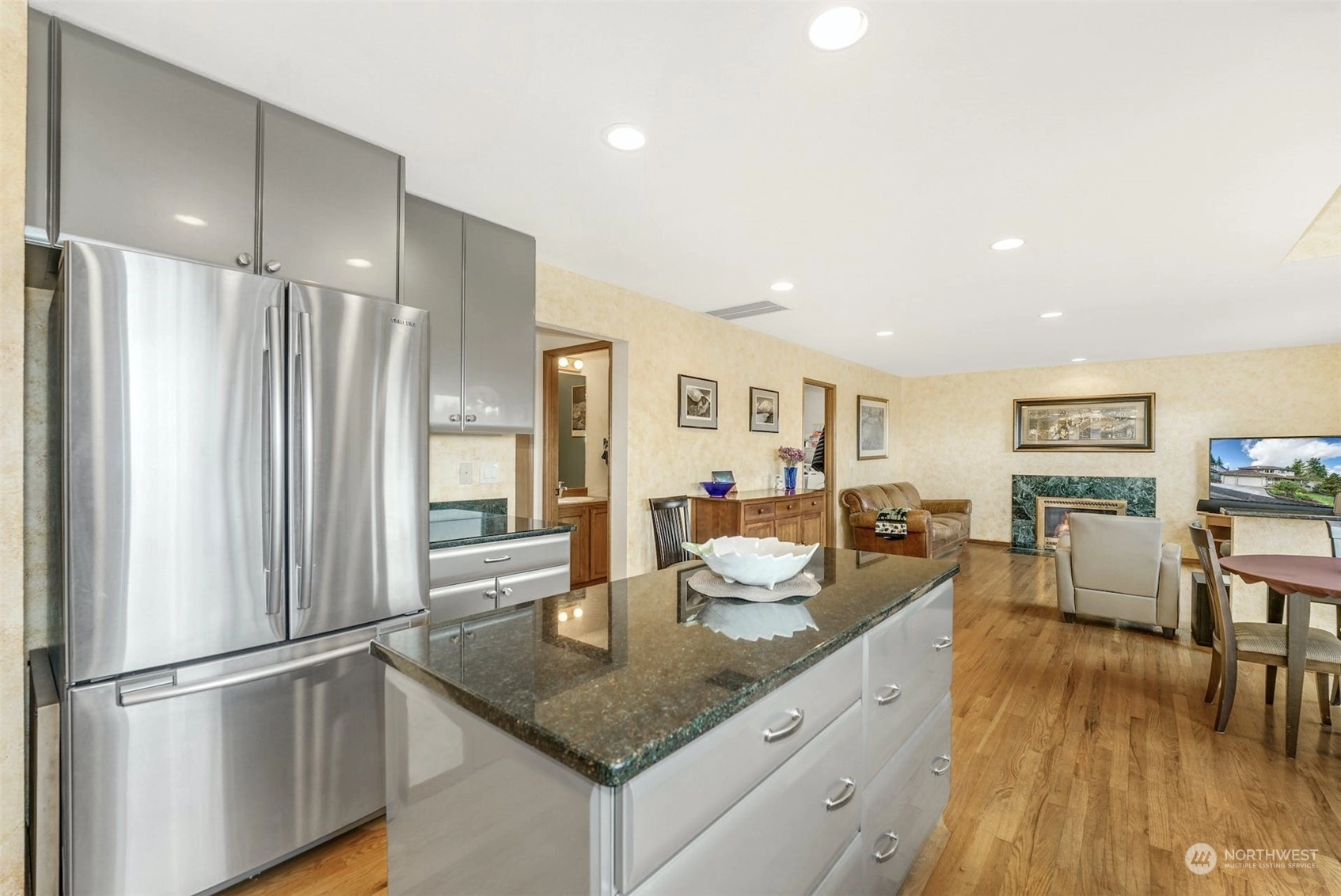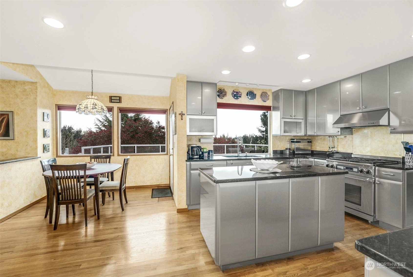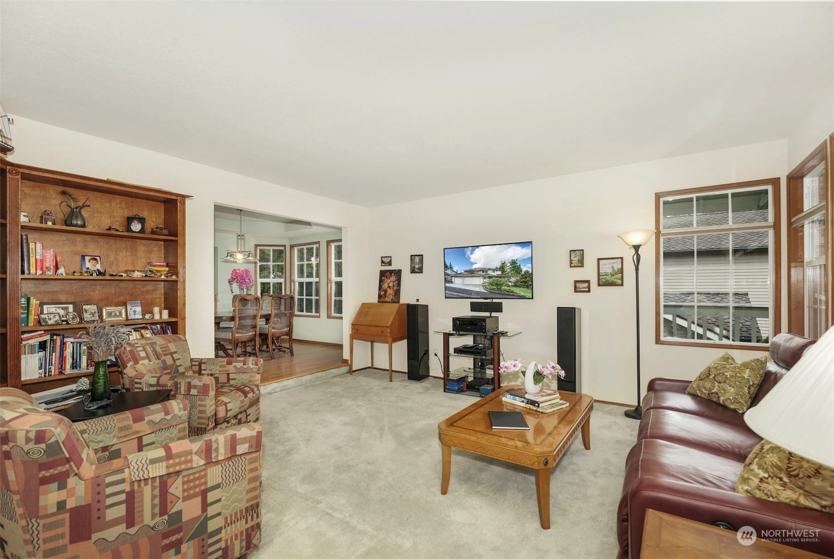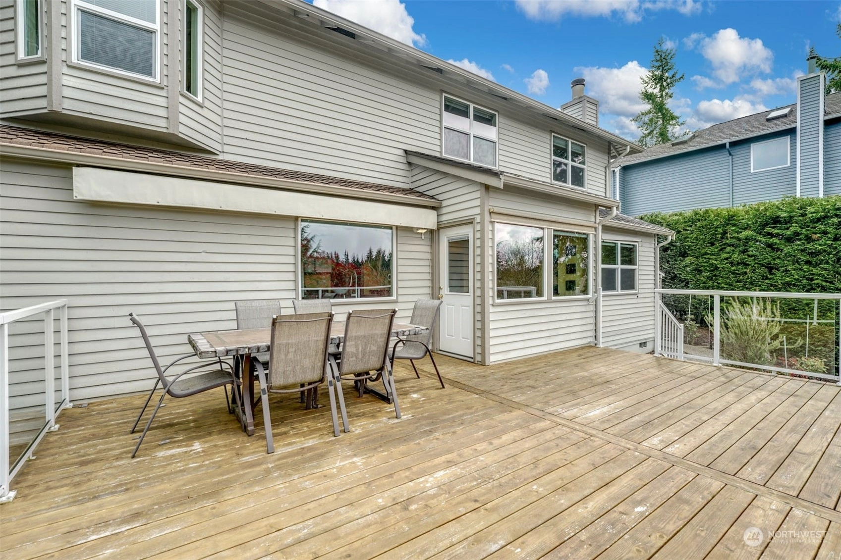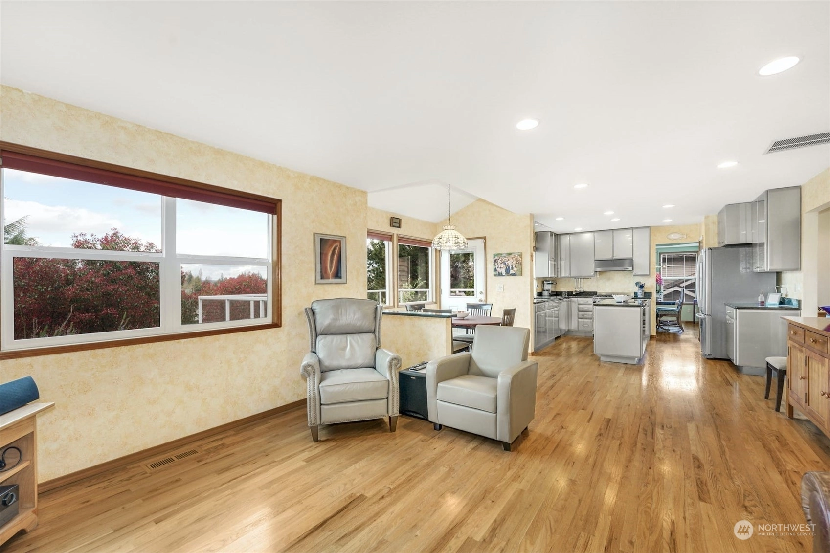 Beautifully maintained home in West Campus with 3 car attached garage (most in this neighborhood have 2 car garages), mature landscaping and great territorial/peak-a-boo view of Olypic Mts. Main floor has large new kitchen with modern cabinets (Craftmaid) from Italy, solid surface counters and high end stainless appliances (Stove is DACOR). Hardwood floors in entry, kitchen and family room. Upper floor boasts huge primary en-suite with double walk in closets plus 3 additional bedrooms and full guest bath. Large deck off living area has glass railings and automatic awning. Front and back sprinkler systems complete this move-in ready home!