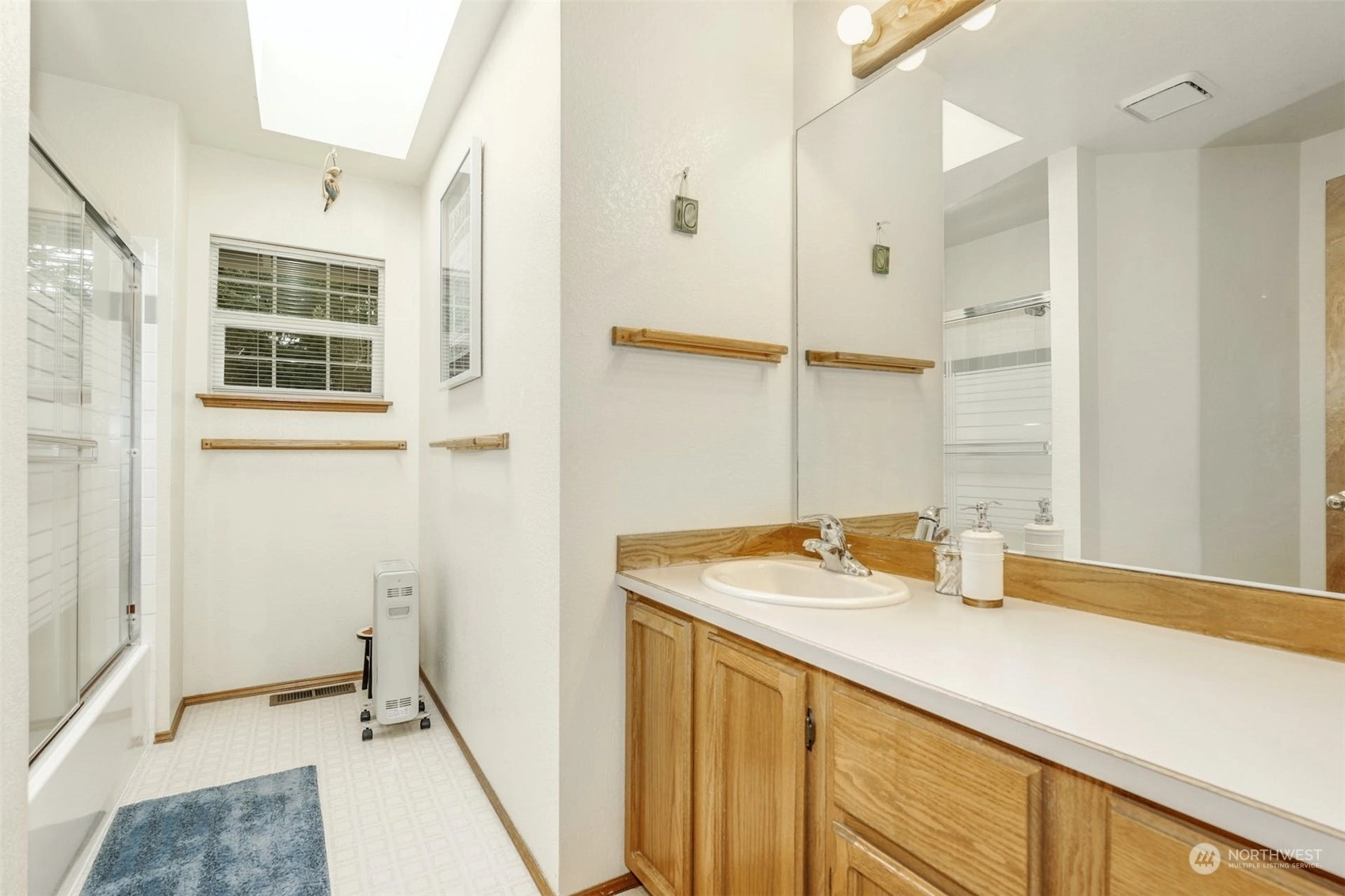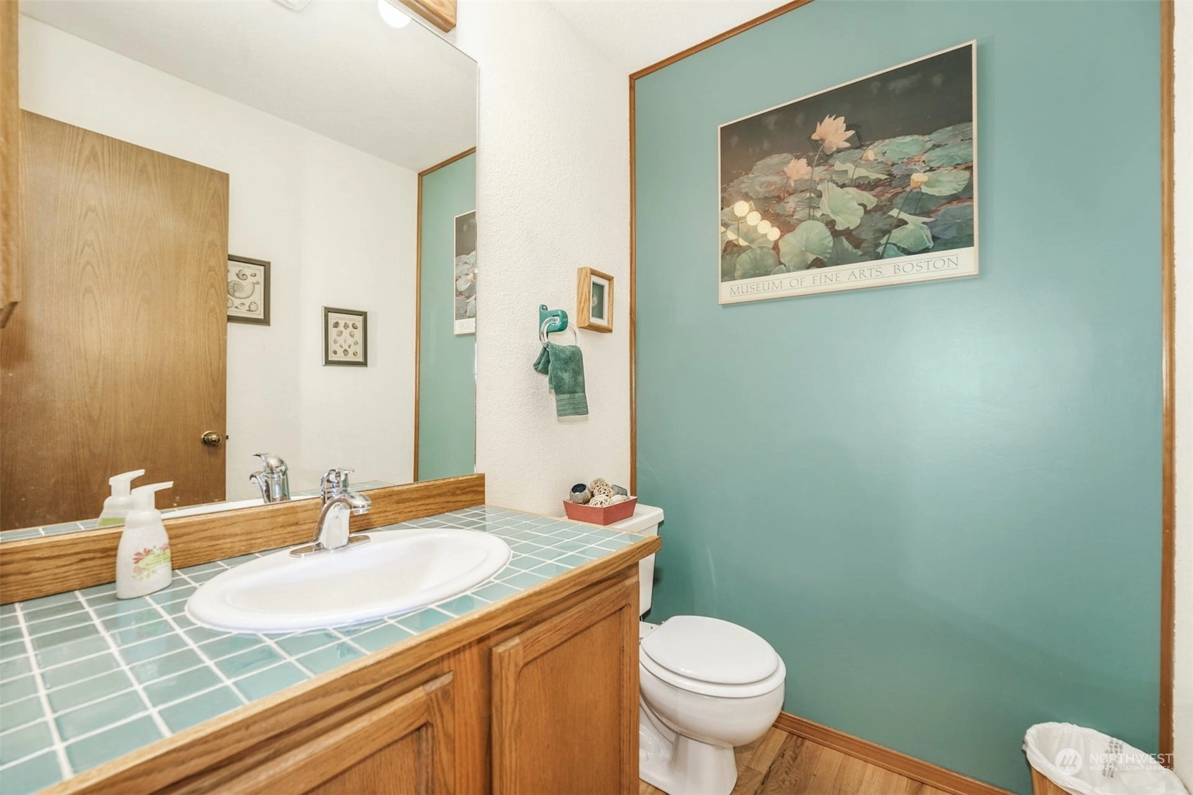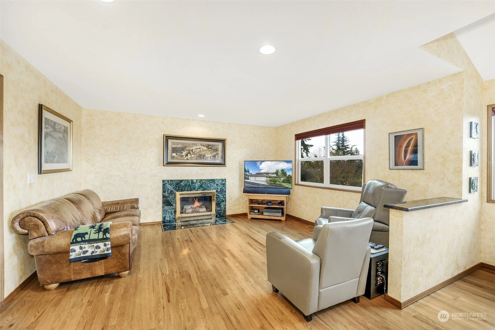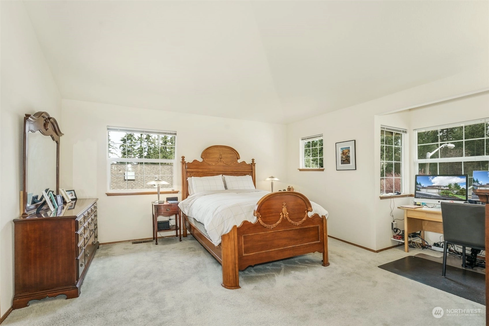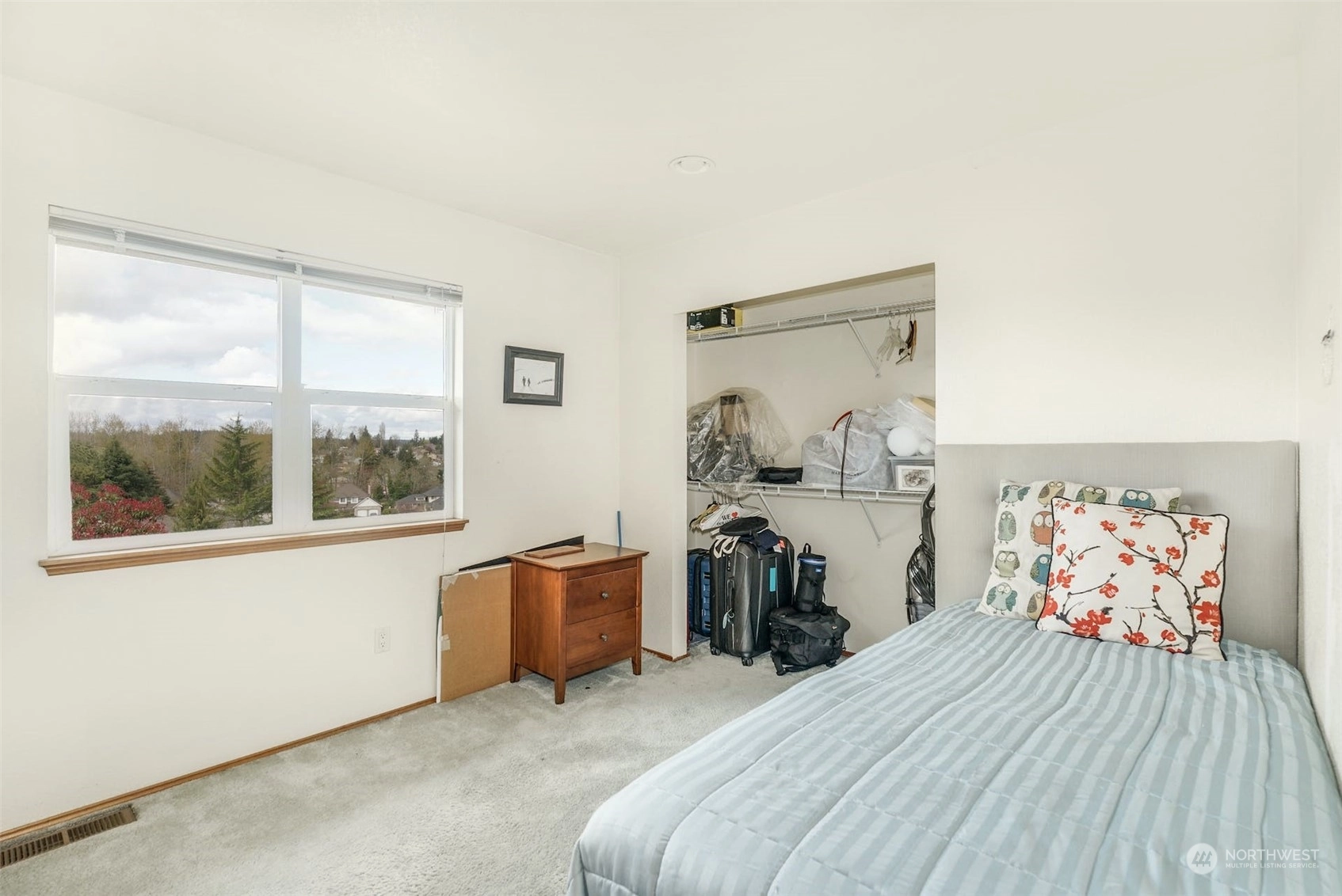 Beautifully maintained home in West Campus with 3 car attached garage (most in this neighborhood have 2 car garages), mature landscaping and great territorial/peak-a-boo view of Olypic Mts. Main floor has large new kitchen with modern cabinets (Craftmaid) from Italy, solid surface counters and high end stainless appliances (Stove is DACOR). Hardwood floors in entry, kitchen and family room. Upper floor boasts huge primary en-suite with double walk in closets plus 3 additional bedrooms and full guest bath. Large deck off living area has glass railings and automatic awning. Front and back sprinkler systems complete this move-in ready home!