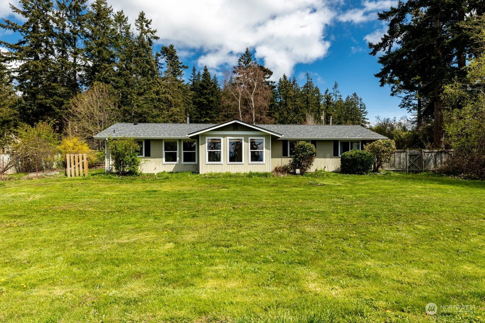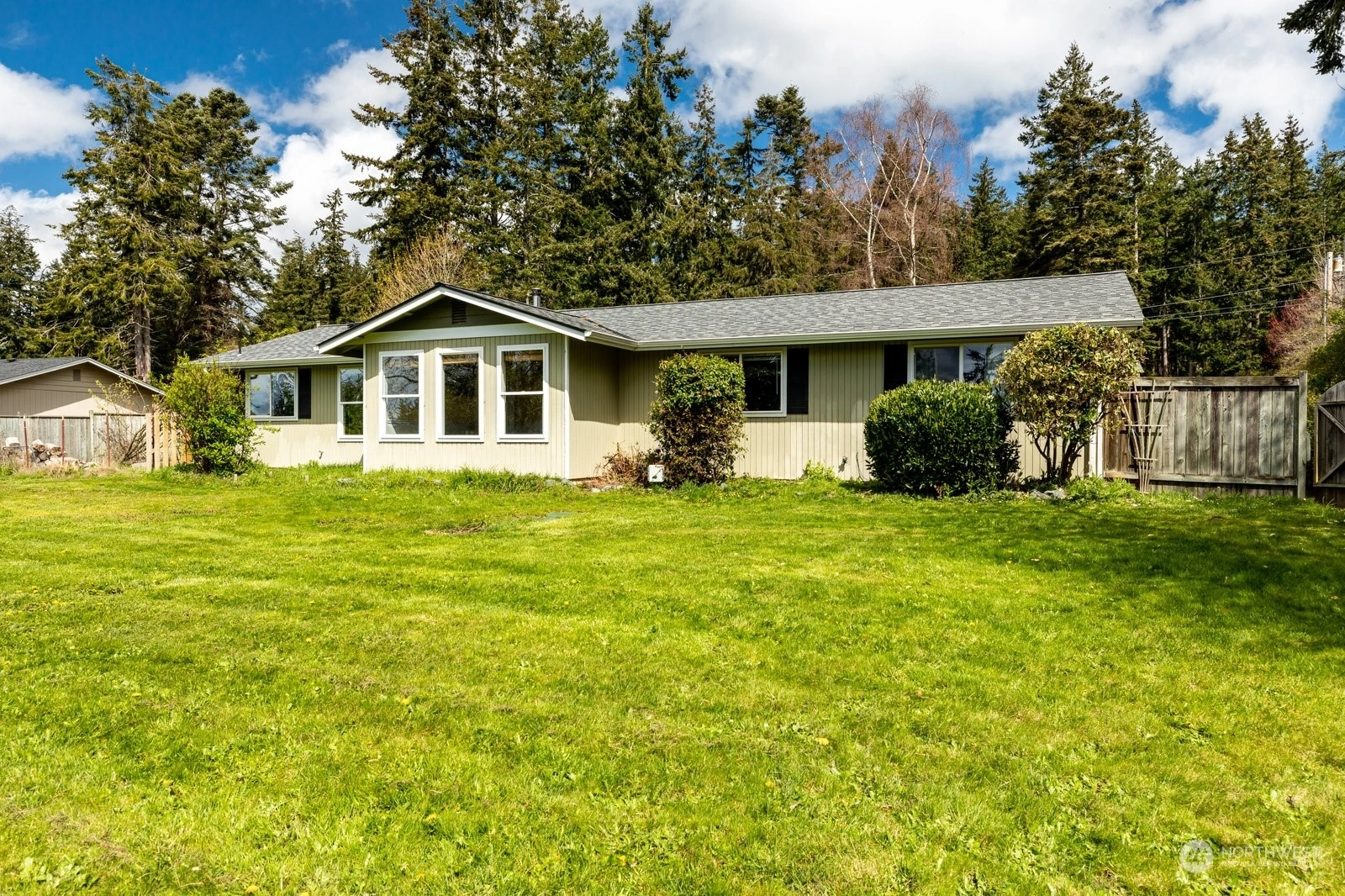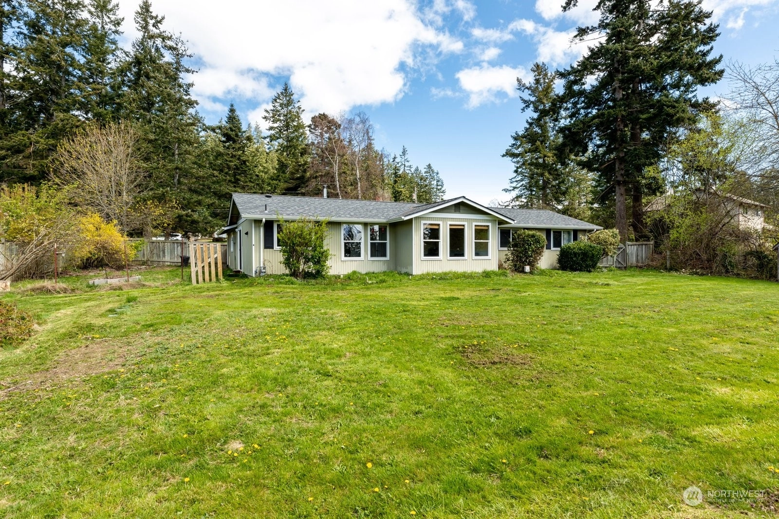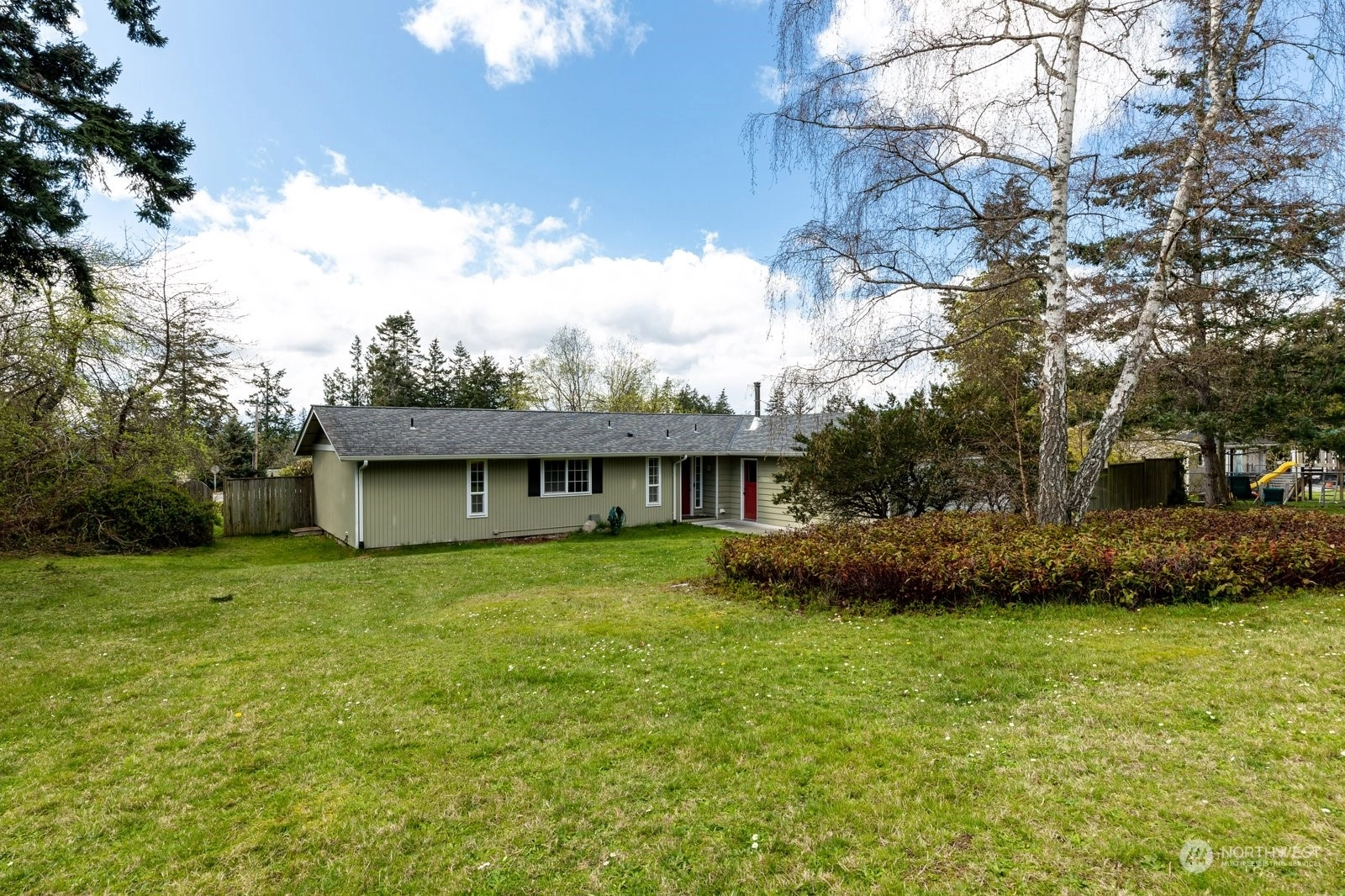 This beautiful single-level home is situated on a beautifully spacious park-like half acre lot. The cozy living area, complete with French doors, flows seamlessly into the open kitchen layout with a dining area, providing ample space for entertaining. This home boasts 3 bedrooms and 1.75 bathrooms, including a master bedroom with an attached master bath for added privacy and convenience. The wood burning stove adds a cozy touch to the living space, while the abundance of natural light illuminates the home beautifully. Additionally, this home features a newer roof, large front and fenced backyard, on a quiet and private dead-end street. With a short drive to town, boat launch, and NAS Whidbey, this house is ready for you to call it home.