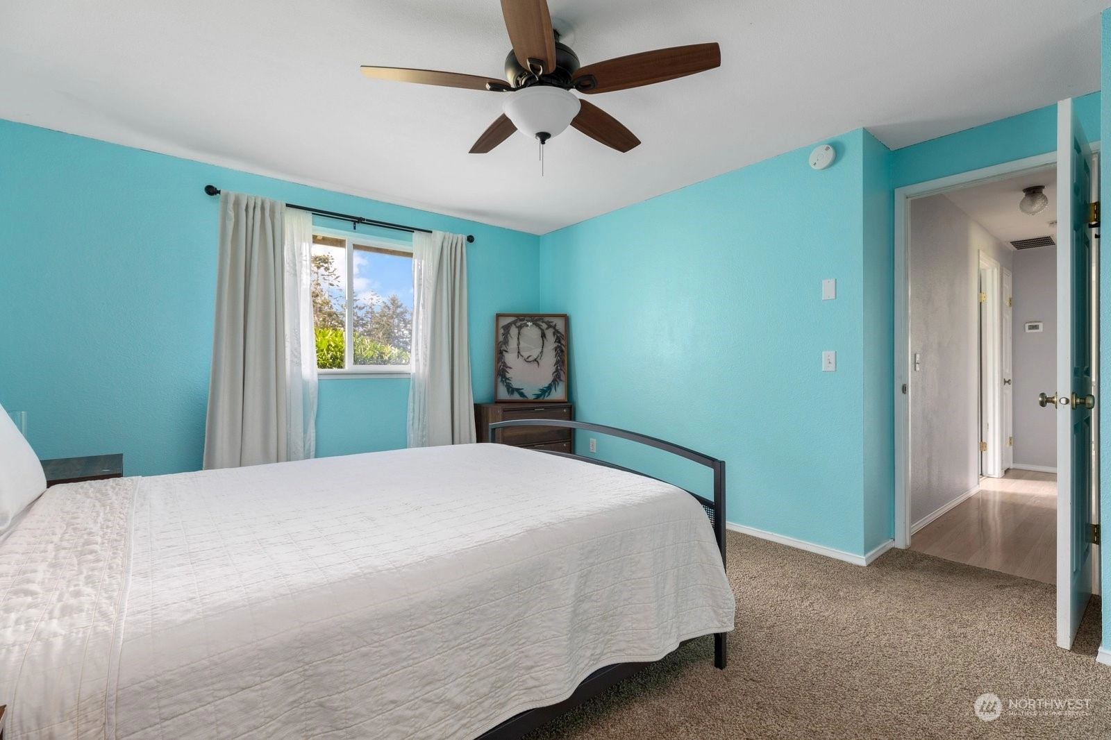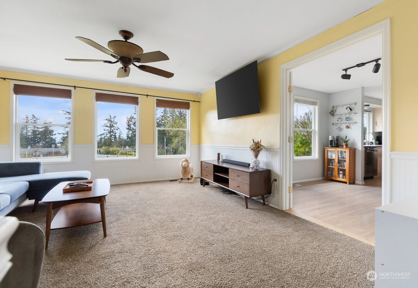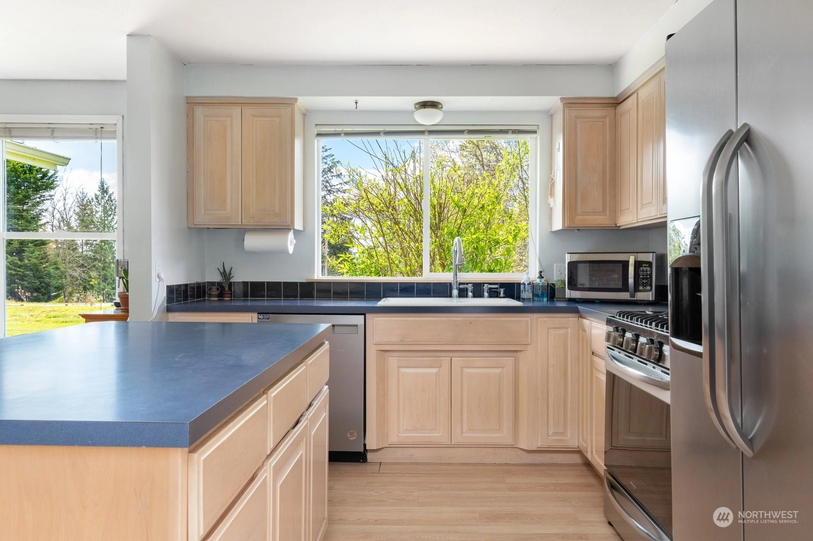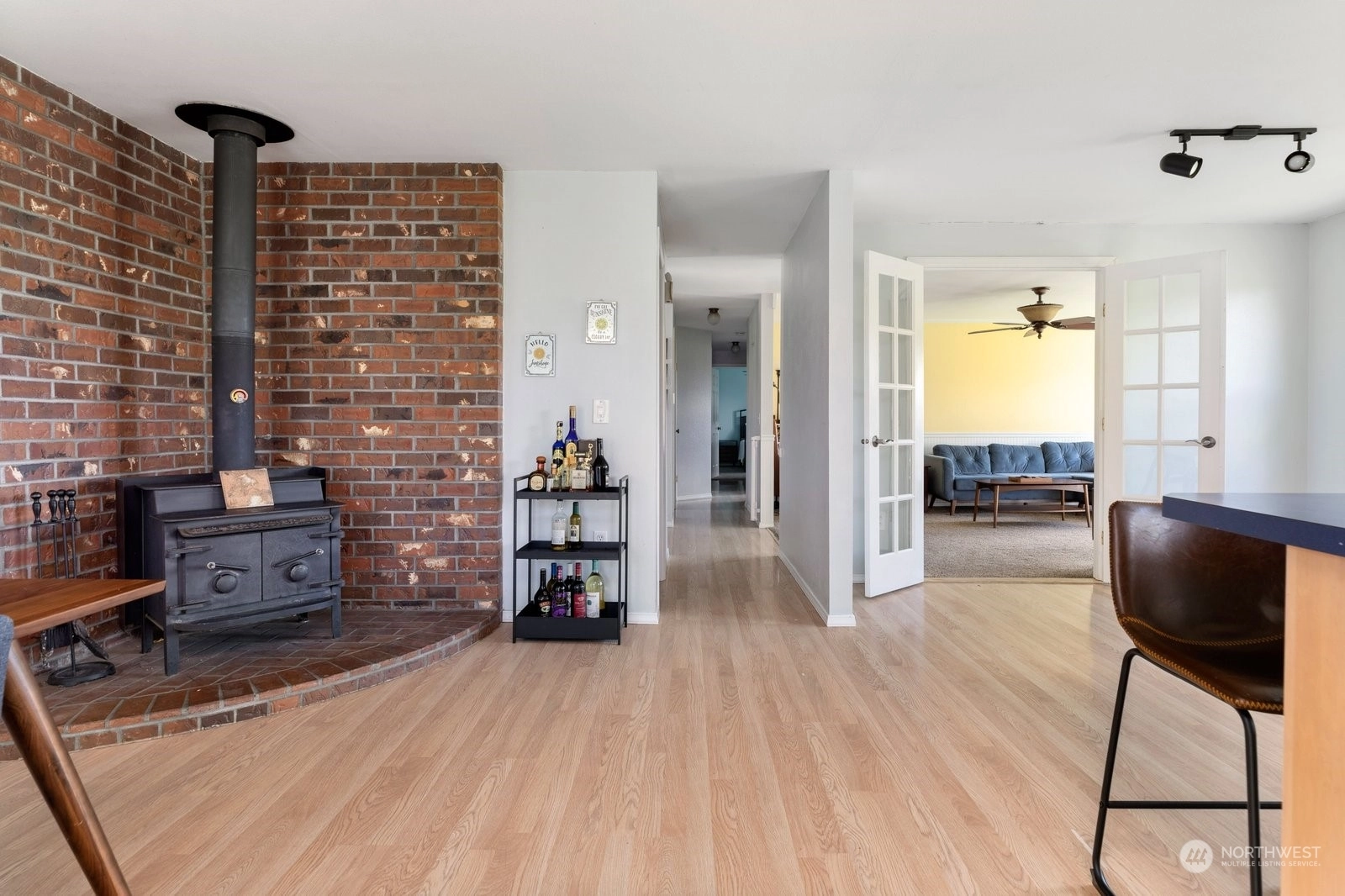 This beautiful single-level home is situated on a beautifully spacious park-like half acre lot. The cozy living area, complete with French doors, flows seamlessly into the open kitchen layout with a dining area, providing ample space for entertaining. This home boasts 3 bedrooms and 1.75 bathrooms, including a master bedroom with an attached master bath for added privacy and convenience. The wood burning stove adds a cozy touch to the living space, while the abundance of natural light illuminates the home beautifully. Additionally, this home features a newer roof, large front and fenced backyard, on a quiet and private dead-end street. With a short drive to town, boat launch, and NAS Whidbey, this house is ready for you to call it home.