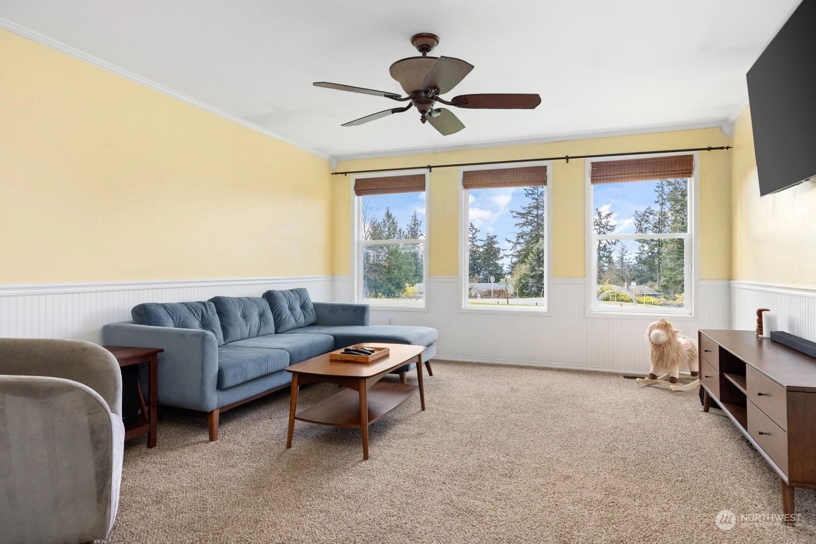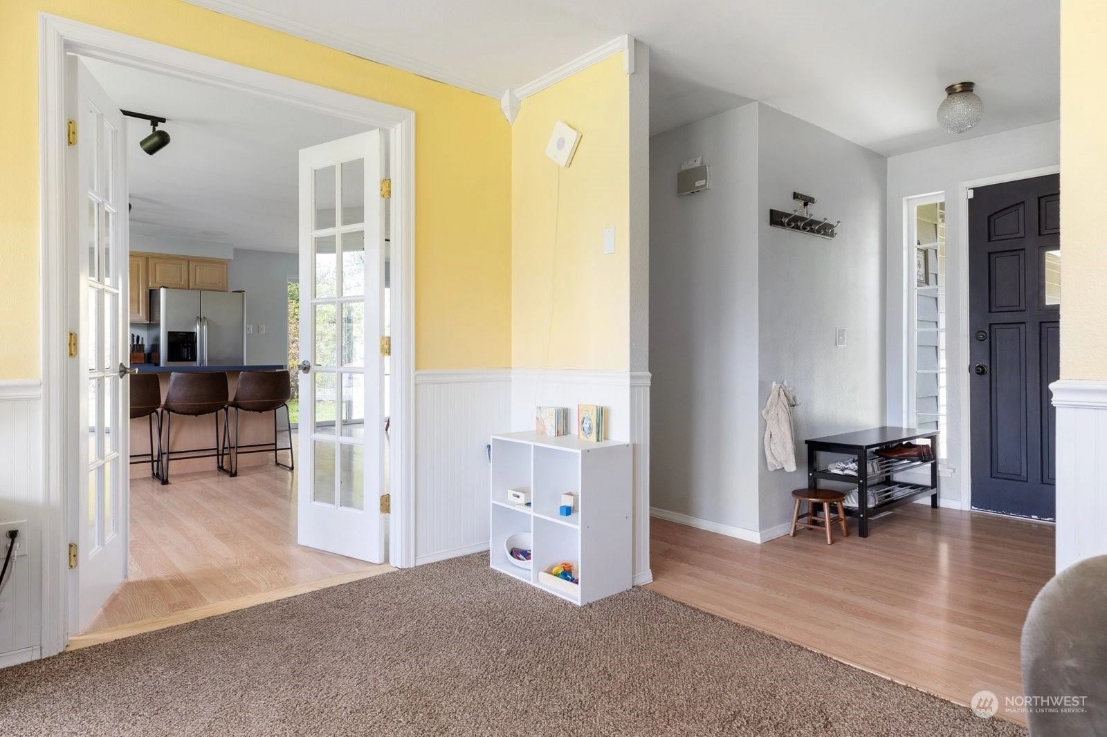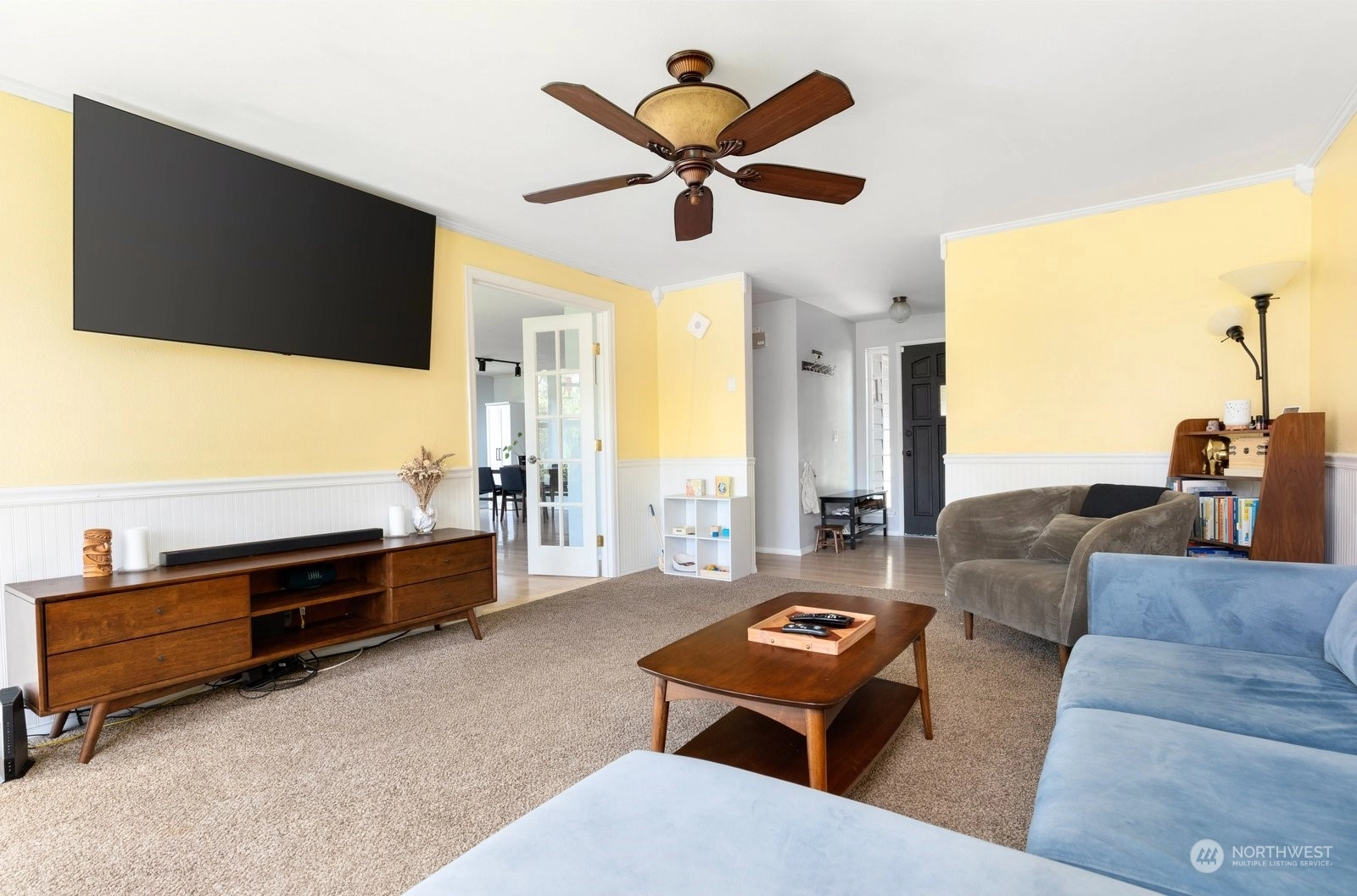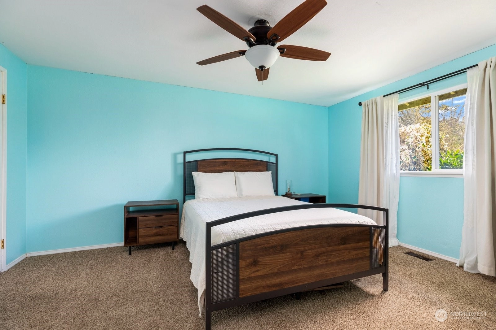 This beautiful single-level home is situated on a beautifully spacious park-like half acre lot. The cozy living area, complete with French doors, flows seamlessly into the open kitchen layout with a dining area, providing ample space for entertaining. This home boasts 3 bedrooms and 1.75 bathrooms, including a master bedroom with an attached master bath for added privacy and convenience. The wood burning stove adds a cozy touch to the living space, while the abundance of natural light illuminates the home beautifully. Additionally, this home features a newer roof, large front and fenced backyard, on a quiet and private dead-end street. With a short drive to town, boat launch, and NAS Whidbey, this house is ready for you to call it home.