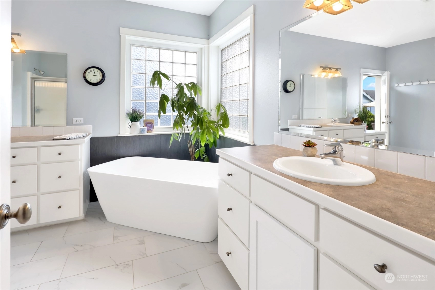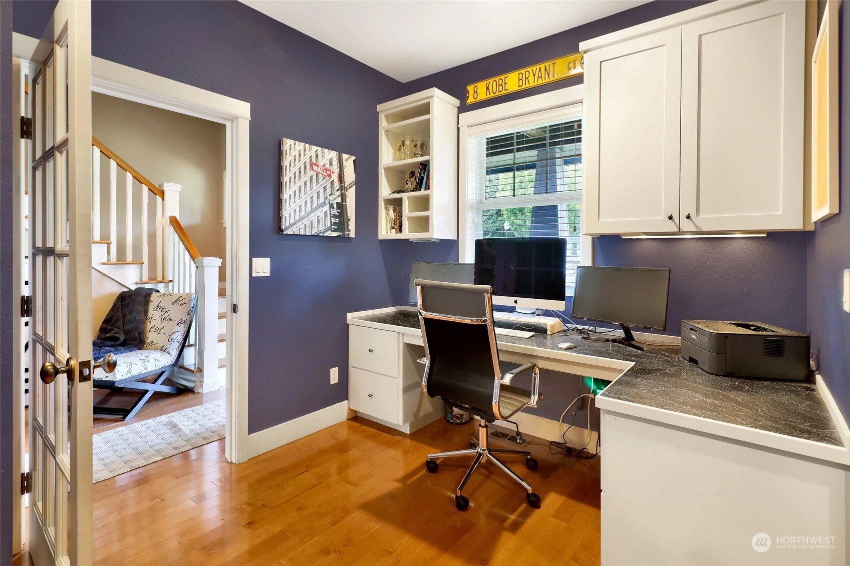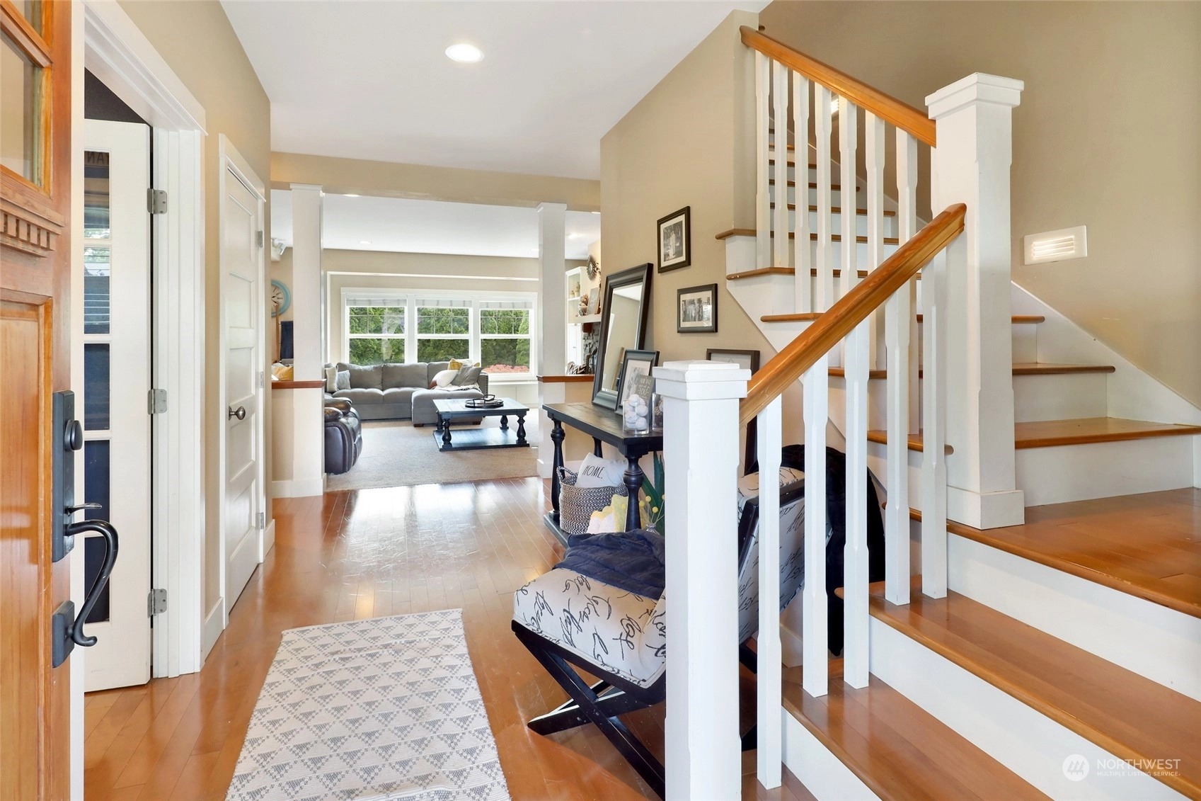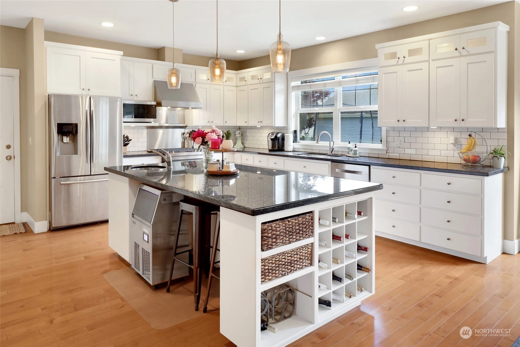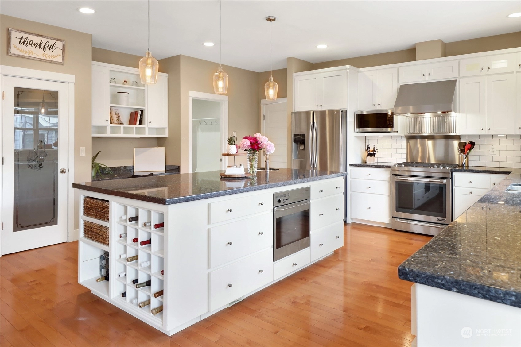 Absolutely stunning 3100+ sqft custom home situated in a quiet cul-de-sec on a large corner lot! Inviting open floor plan w/ beautiful hardwood floors & quality detailed finishes! Featuring a gorgeous gourmet chefs kitchen w/granite countertops, custom cabinetry, huge island w/ second oven, quality SS appliances, undercabinet lighting & spacious walk-in pantry. Beautiful custom built-ins w/ added storage, new furnace & central AC! Private office right off the entry & huge bonus room w/ separate entrance through the garage. Main floor primary ensuite w/ new updates & finishes! 2 bedrooms upstairs, along w/ loft/rec area & newly updated bath! Large back patio w/ bbq hookup, hot tub w/ manicured yard & sprinklers. Truly an entertainer's DREAM!