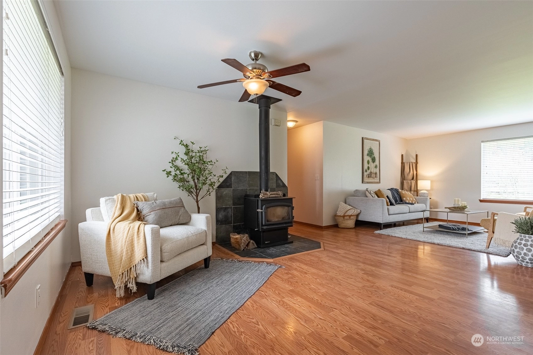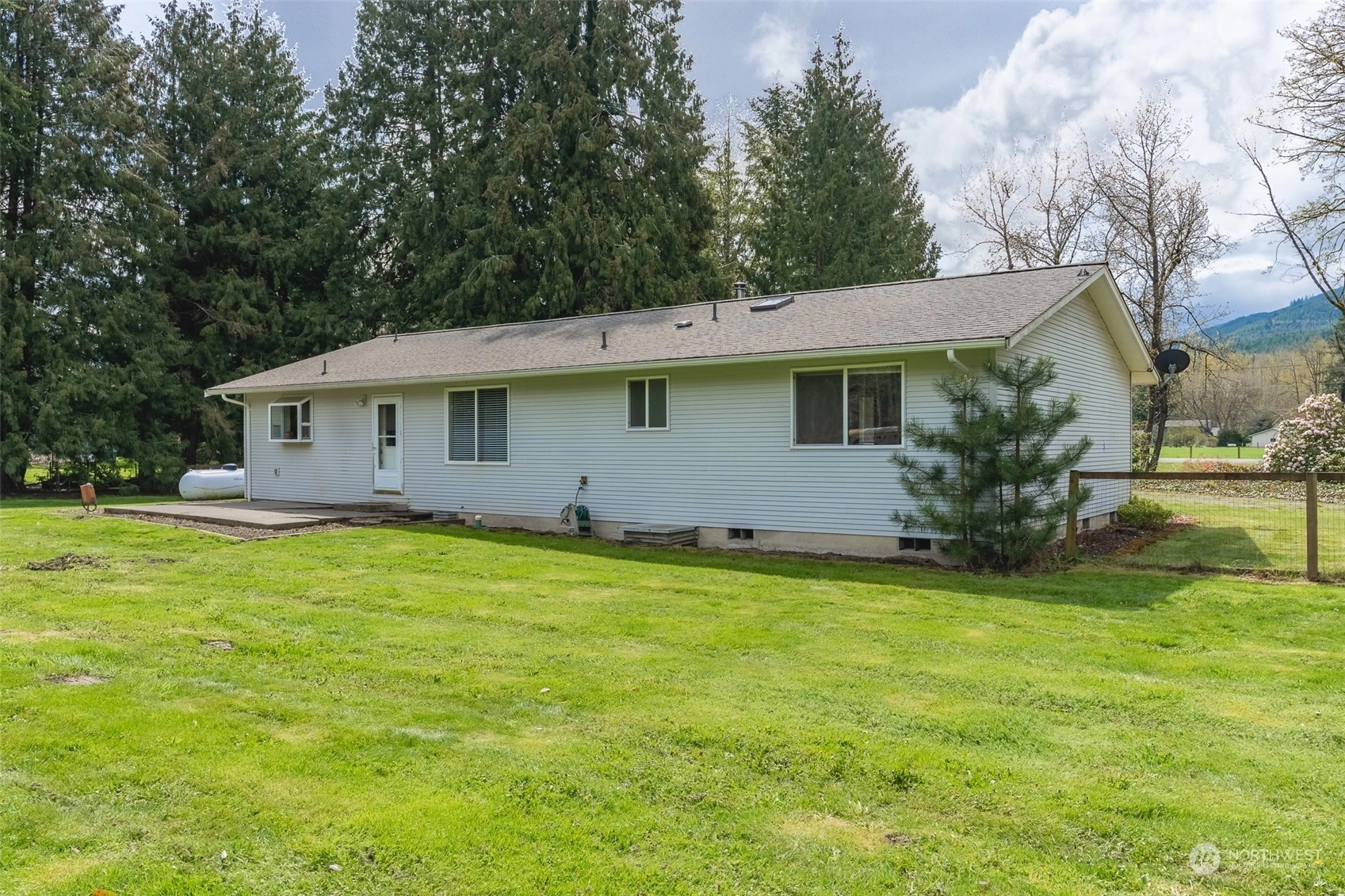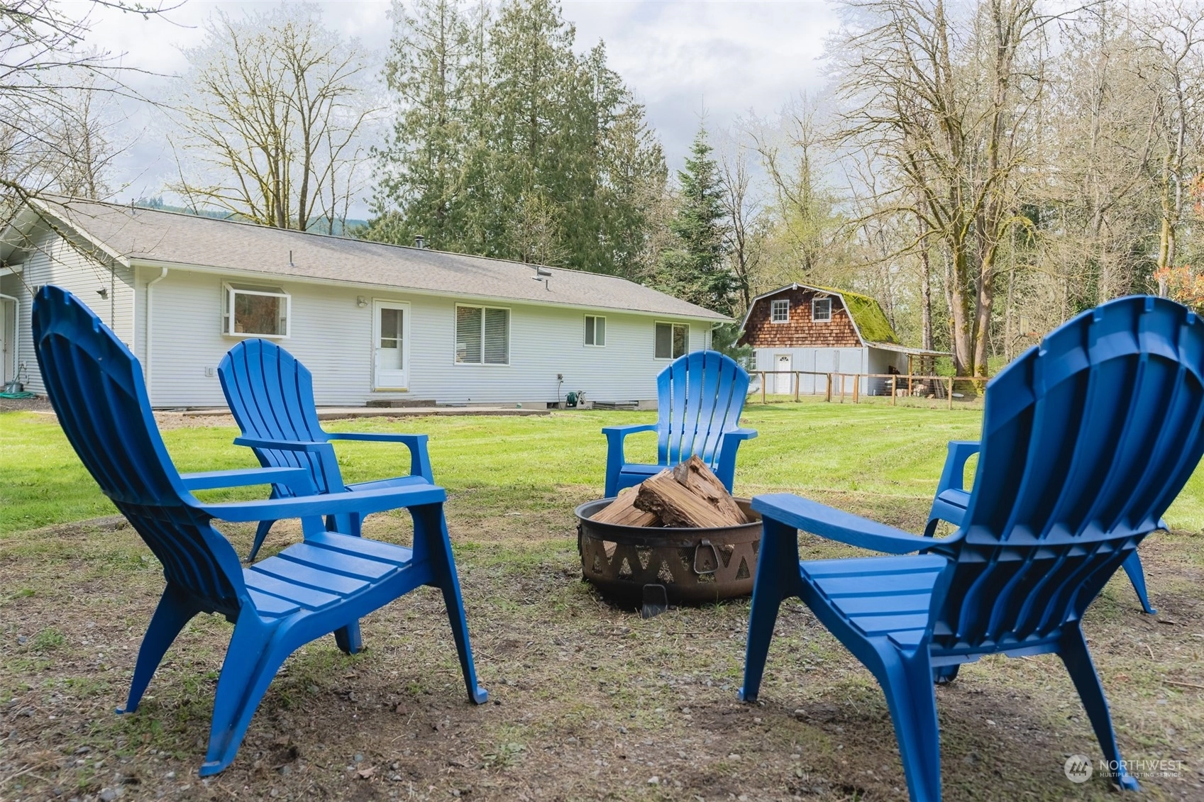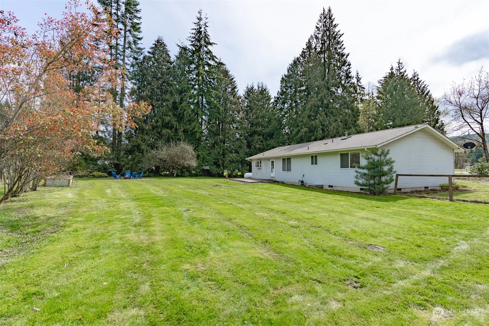 Welcome to this charming 3-bedroom, 2-bathroom rambler situated on a sprawling 3/4 acre lot. The property boasts a spacious and fully fenced backyard, perfect for outdoor activities and entertaining guests. The outbuilding provides storage space for all your tools and equipment or could be used as a workshop, while the fire pit adds to the overall ambiance of the property. Outdoor space also includes, basketball hoop, RV parking and hot tub hookup. Inside, the home features an open layout with large windows that let in plenty of natural light. The living room is cozy and welcoming, with a fireplace. The kitchen has ample storage and an island for extra counter space. Don't miss your chance to make this delightful property your own!