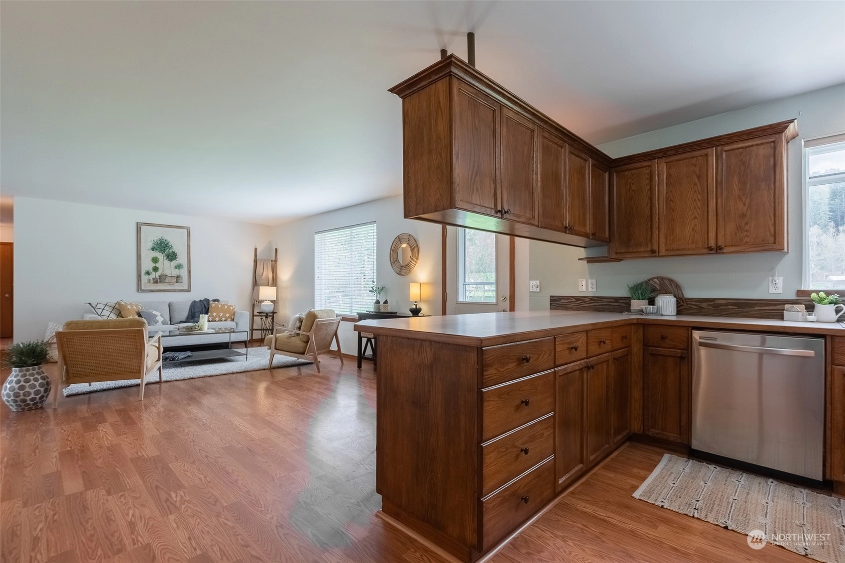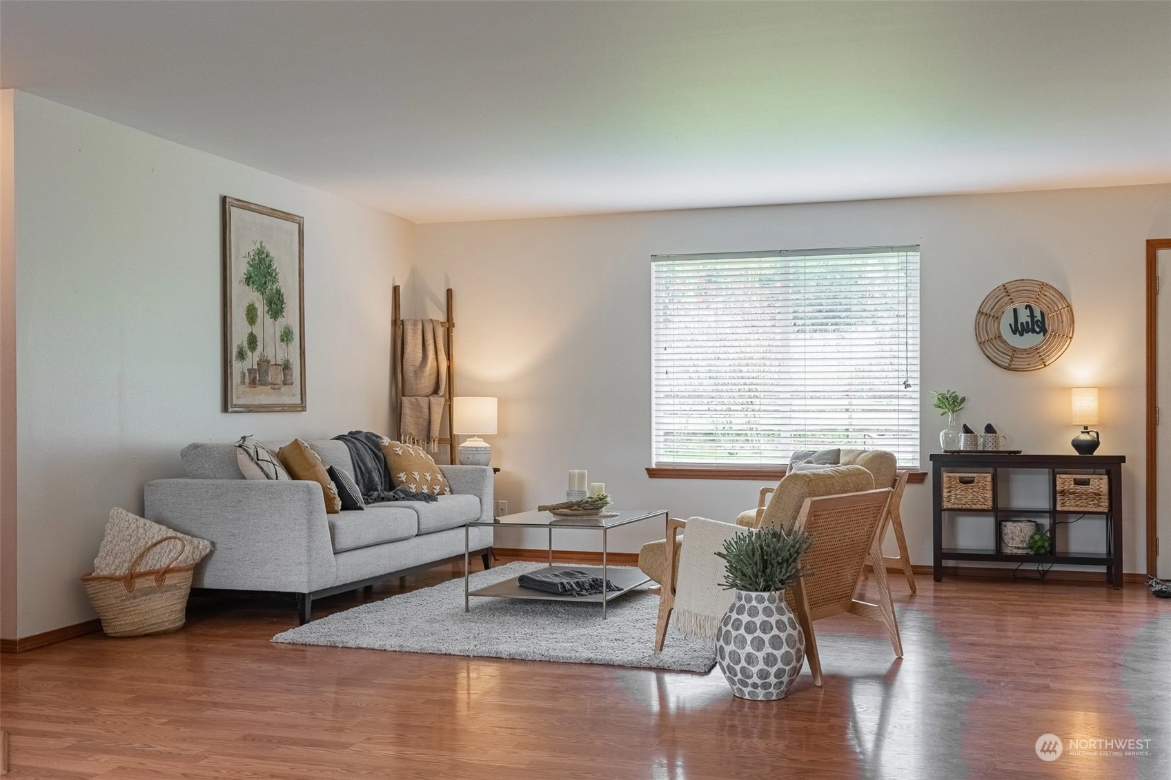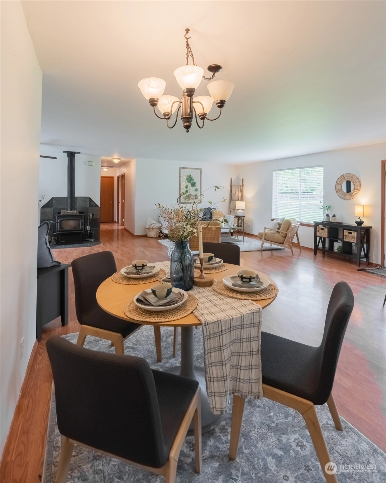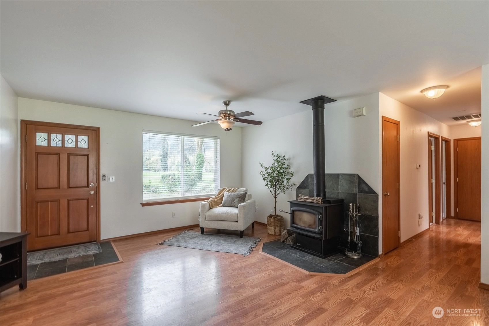 Welcome to this charming 3-bedroom, 2-bathroom rambler situated on a sprawling 3/4 acre lot. The property boasts a spacious and fully fenced backyard, perfect for outdoor activities and entertaining guests. The outbuilding provides storage space for all your tools and equipment or could be used as a workshop, while the fire pit adds to the overall ambiance of the property. Outdoor space also includes, basketball hoop, RV parking and hot tub hookup. Inside, the home features an open layout with large windows that let in plenty of natural light. The living room is cozy and welcoming, with a fireplace. The kitchen has ample storage and an island for extra counter space. Don't miss your chance to make this delightful property your own!