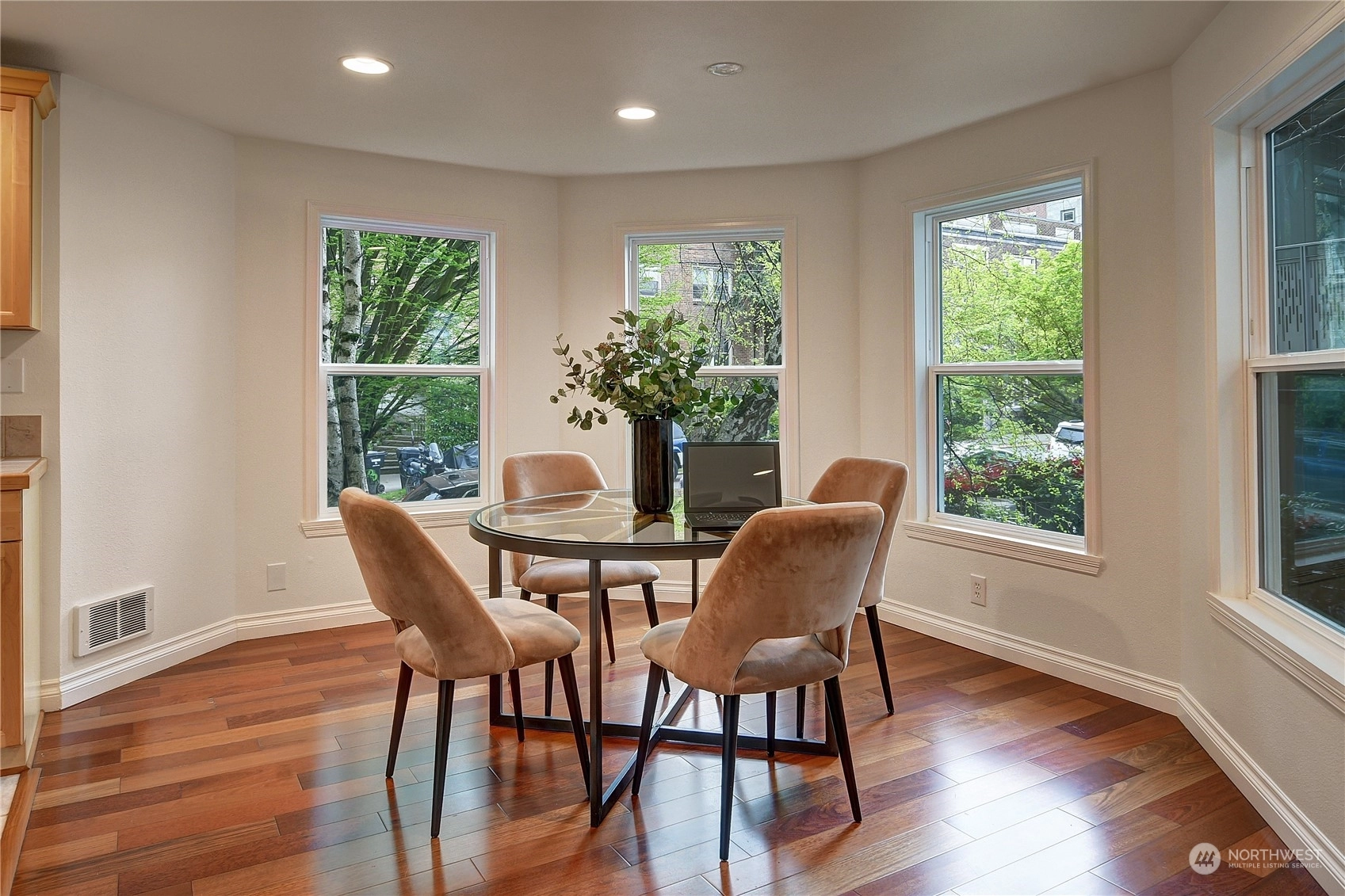 Perfect retreat on Capitol Hill close to everything the city offers. 1 block from Top Pot for morning coffee/doughnuts or dinner and drinks at Single Shot. 4 blocks to Broadway and a short walk to the light rail station. This condo has been thoroughly updated and well maintained. Open concept allows a large kitchen which flows to your dining with bay windows and the living room opening to a covered deck. Enjoy curling up by the fireplace on cold winter nights. Down the hall is the full Bath with jetted soaking tub and heated tile floors next to the bedroom. This space was made for entertaining. Hardwood, tile floors, no carpet. Freshly painted, new water heater, new up/down blinds. 1 dedicated off street parking spot and storage locker.