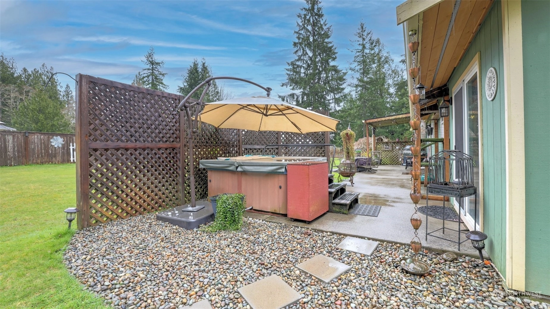 Welcome to this charming 3 bedroom 2 bath rambler on a gorgeous, fully fenced lot. Enter to open sight lines & popular great room floorplan. The beautifully updated kitchen features new cabinetry, quartz counters, stunning white subway tile back splash & butcher block island. Don't miss the custom walk-in pantry! Primary suite featuring en suite 3/4 bath & private patio & hot tub. Newer roof! Newer double pane windows. Enjoy air conditioning & newer heat pump. Extend your living space outdoors to the gorgeous, fully-fenced yard with entertainment sized patio, covered seating area, garden space, sprinkler system & large garden shed with electricity. Enjoy space for boat or RV! Easy access to Olympia business hubs & Pacific coast beaches!