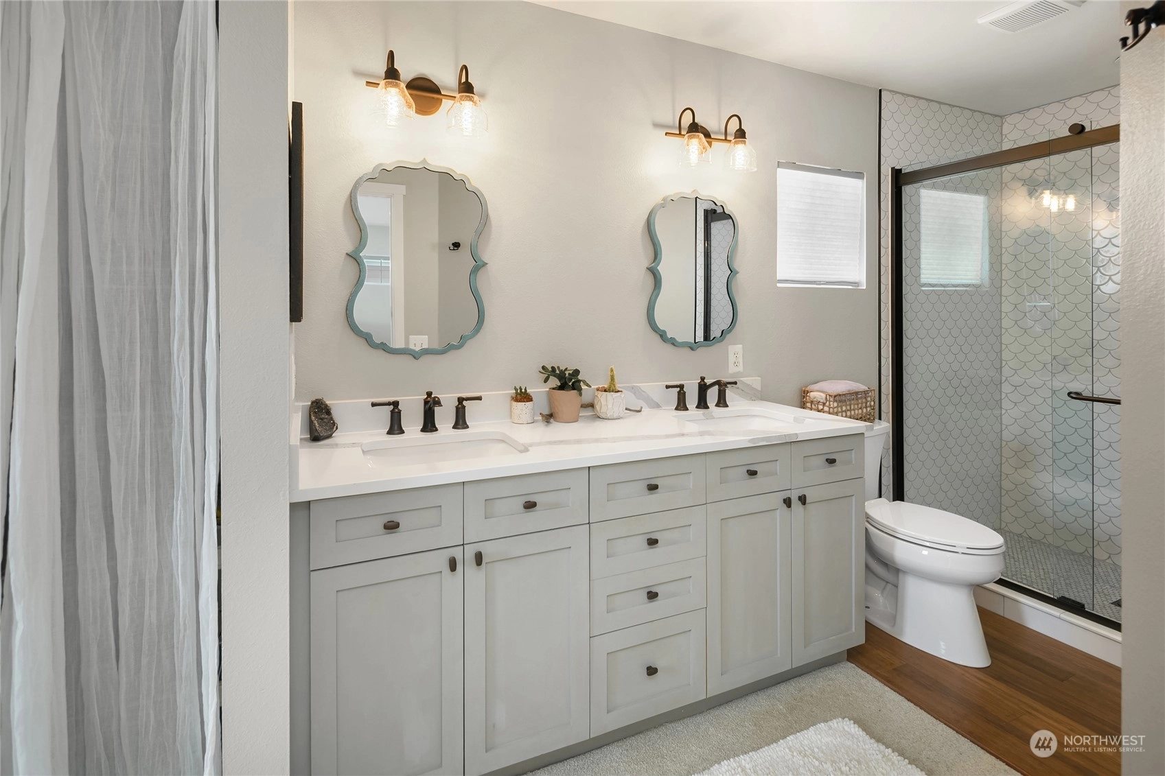 This wonderfully updated townhome near downtown Issaquah is situated in a small gated community with a darling private, fenced yard with a low maintenance deck, garden spot and lovely mountain views. Inside you will find a greatroom-inspired main floor bathed in natural light, with a lovely tiled fireplace, a main floor office/playroom/den or....? a mudroom/laundry off the garage, a totally remodeled kitchen and new new flooring throughout the main floor. Upstairs is an open loft-style bonus rm/office space/playroom, two bedrooms with a guest bathroom plus a spacious primary suite with a mountain view, walk-in closet and private bath. The two car garage is spacious with upgraded storage for all the toys! Issaquah schools.