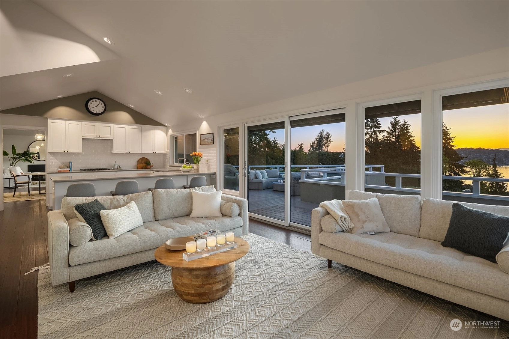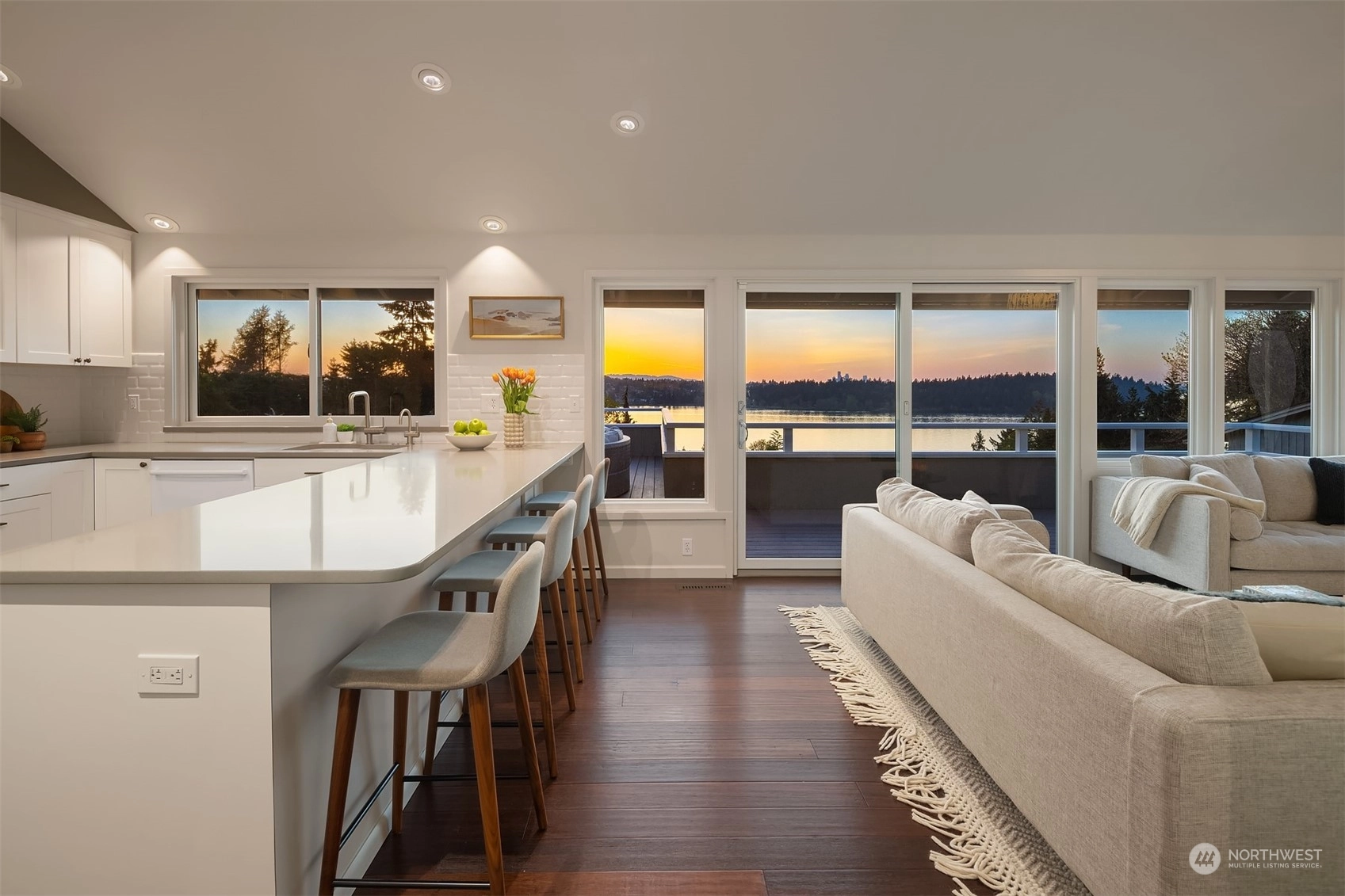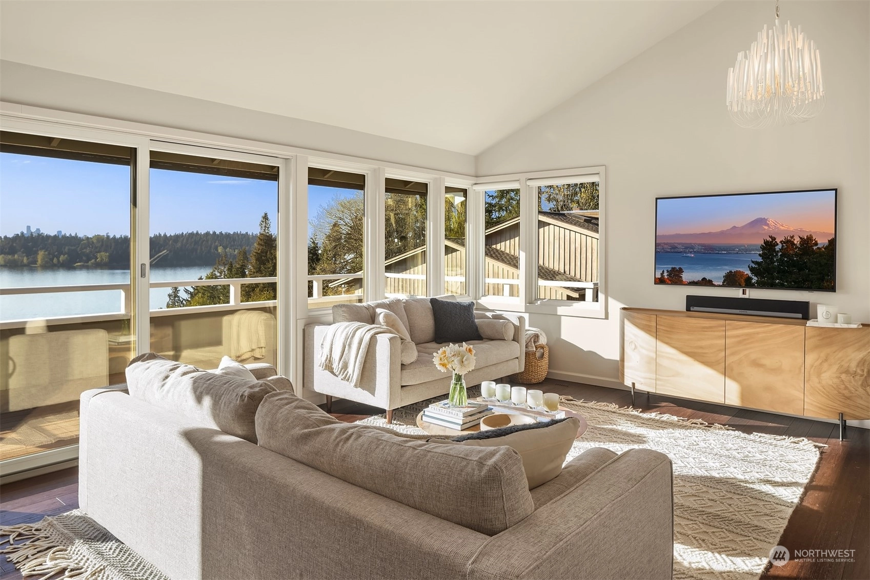 Soaring, light-filled spaces & inspiring western views of the lake, Seattle skyline, and Olympic Mountains offer a serene oasis in one of the Island’s favorite westside neighborhoods. Extensive renovations have created a place of light & style with a SoCal vibe. Walls of windows illuminate the interiors & sliders out to the deck provide beautiful indoor/outdoor living ideal for entertaining. The view primary suite is perfectly located on the main, while the views continue on the completely renovated lower level with new bath, fireplace, floors, carpet, paint & more. With 3 addl. bedrooms, office & rec room, this home offers everything desired for easy living. Gorgeous landscaping, new Jacuzzi & plenty of room for play. Island sunsets await…