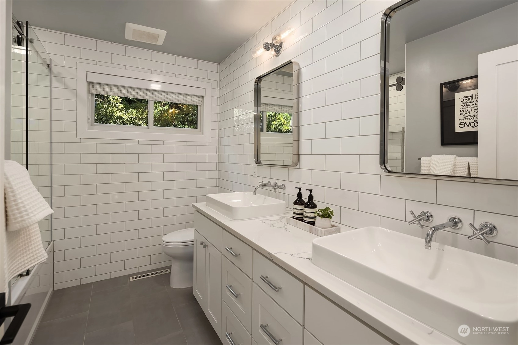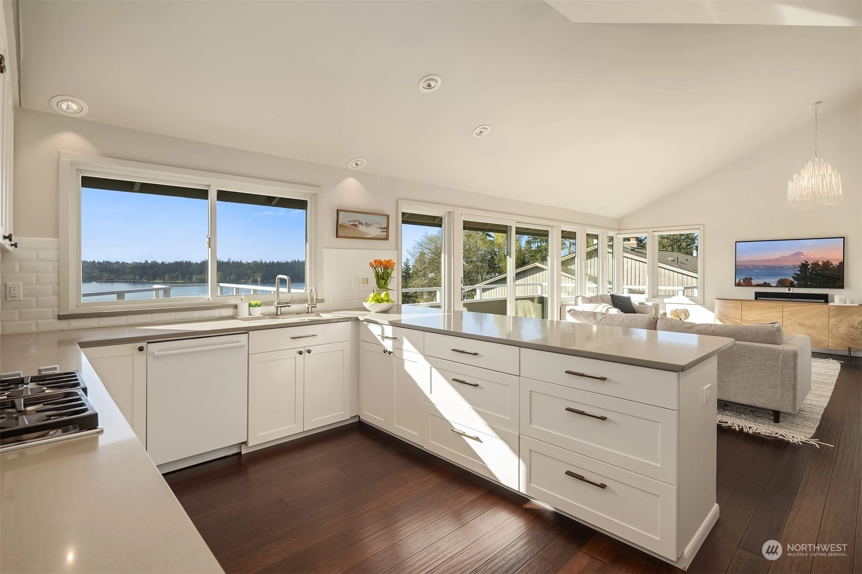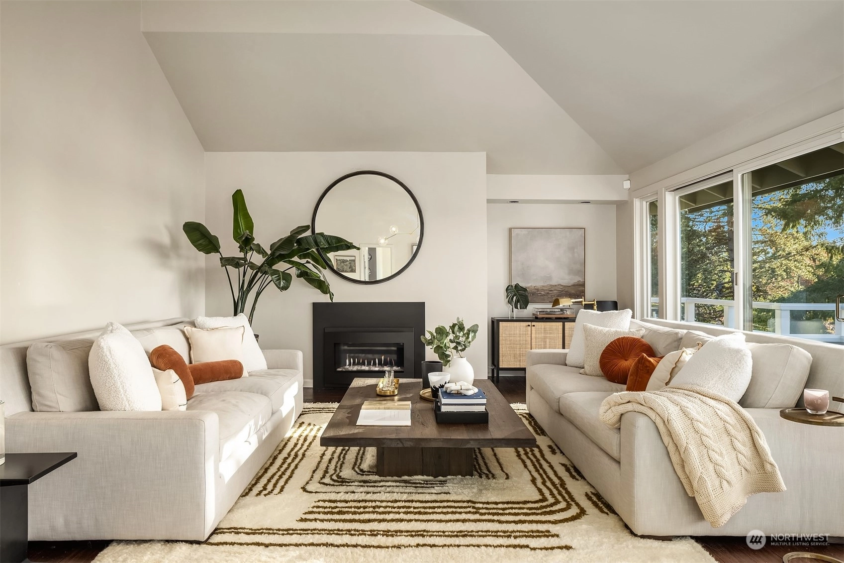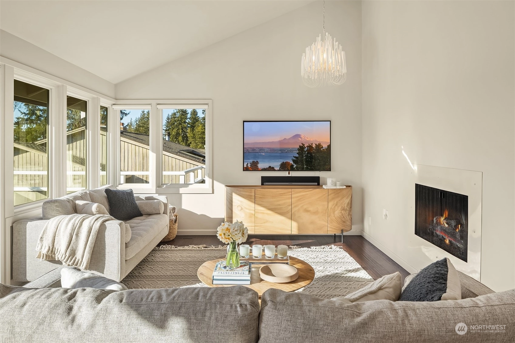Soaring, light-filled spaces & inspiring western views of the lake, Seattle skyline, and Olympic Mountains offer a serene oasis in one of the Island’s favorite westside neighborhoods. Extensive renovations have created a place of light & style with a SoCal vibe. Walls of windows illuminate the interiors & sliders out to the deck provide beautiful indoor/outdoor living ideal for entertaining. The view primary suite is perfectly located on the main, while the views continue on the completely renovated lower level with new bath, fireplace, floors, carpet, paint & more. With 3 addl. bedrooms, office & rec room, this home offers everything desired for easy living. Gorgeous landscaping, new Jacuzzi & plenty of room for play. Island sunsets await…