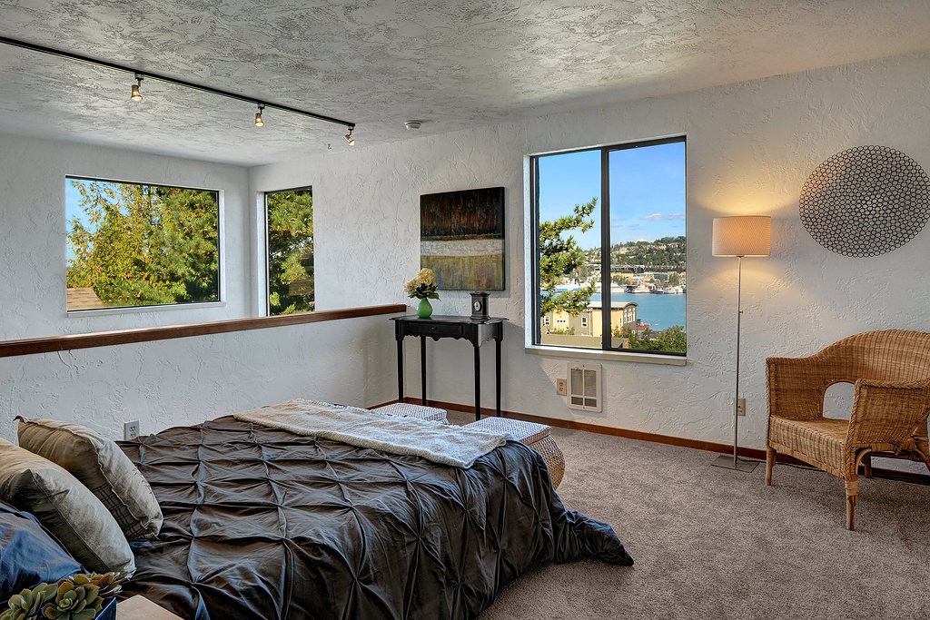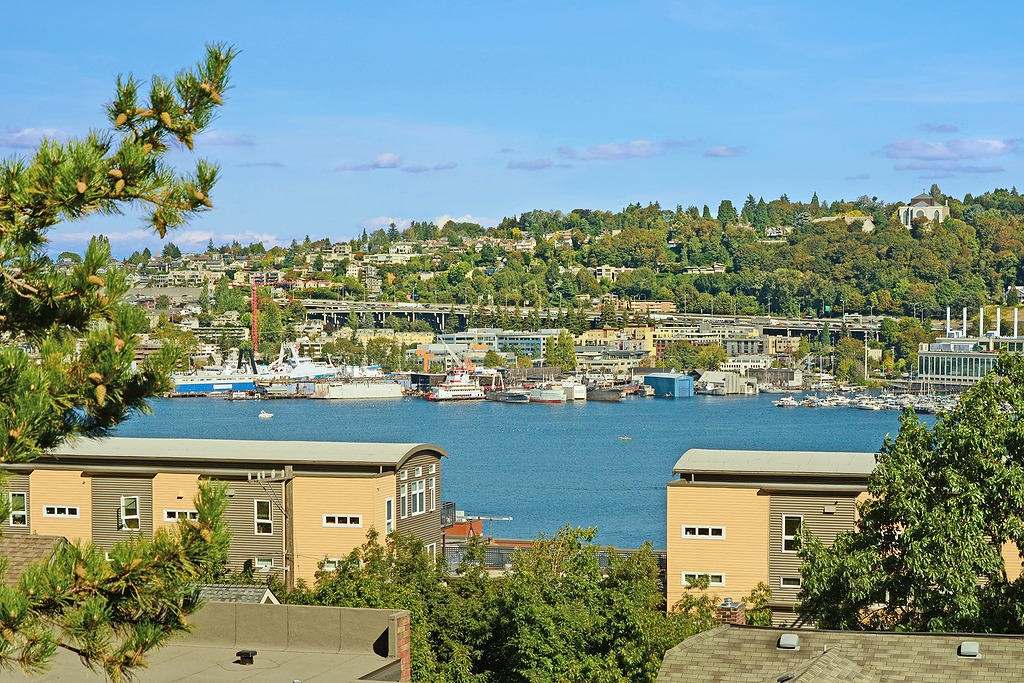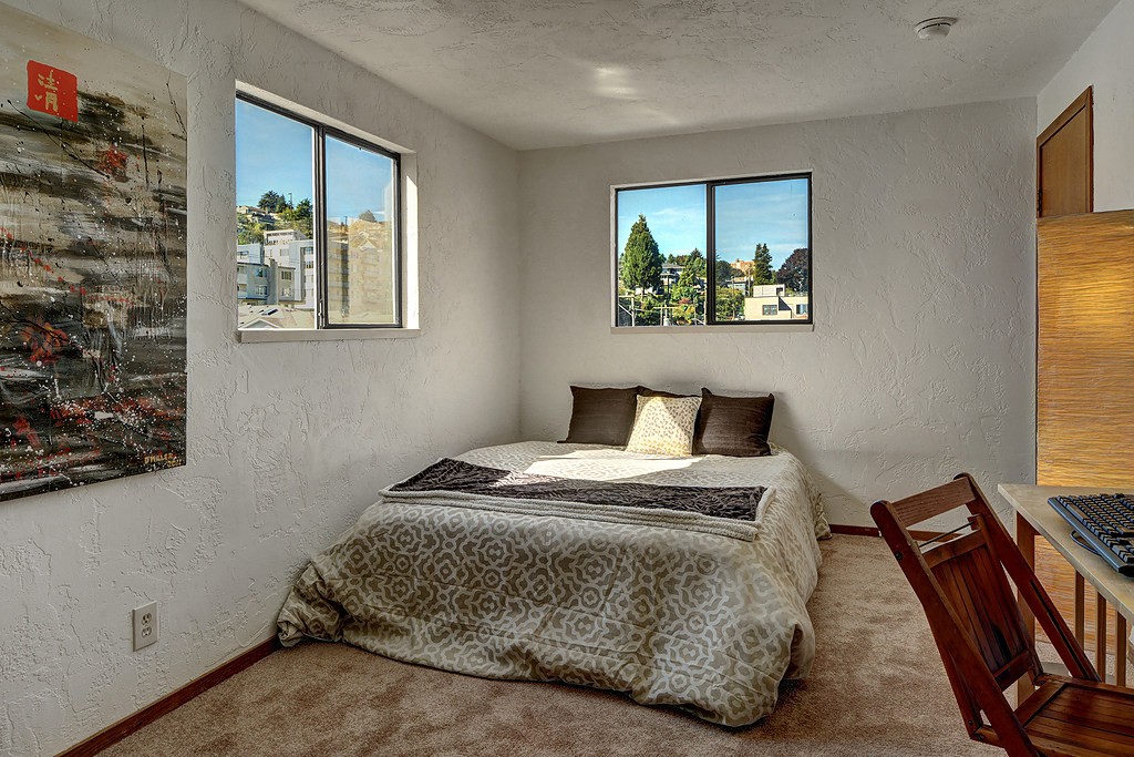 Spacious, light-filled 2-level penthouse w/lots of Lake Union, Capitol Hill & SLU cityscape views! Very cool layout waiting for your design touches. Private & quiet NE corner top-floor, big view loft-style master w/walk-in closet & ensuite bath. Balcony, extra storage, secure garage & lobby, elevator, small 10-unit bldg. Washer & dryer in unit! Superb SE Queen Anne location. Walk to eateries, shopping, EMP, Seattle Center & more. 83 Walkscore & excellent transit score!