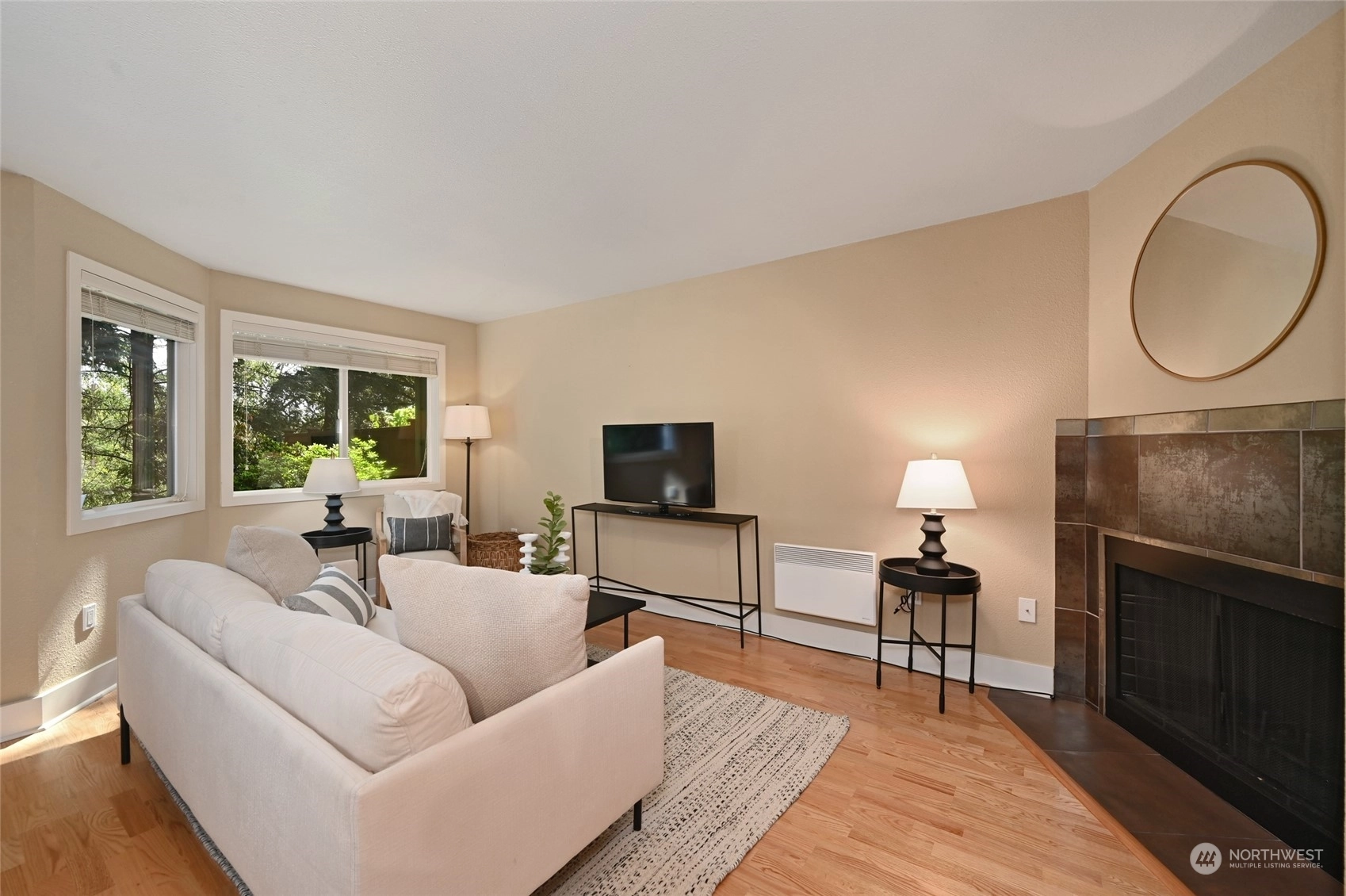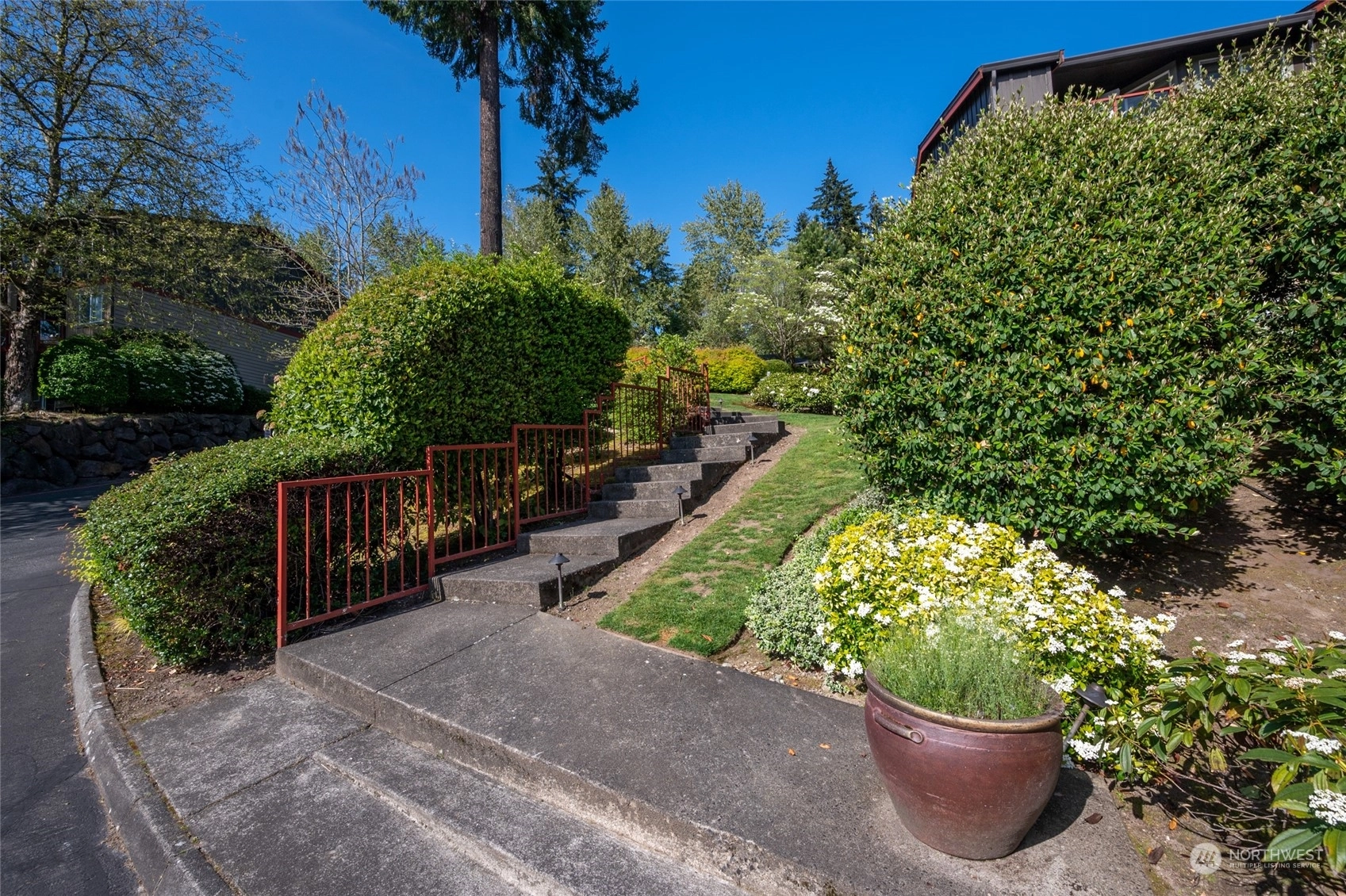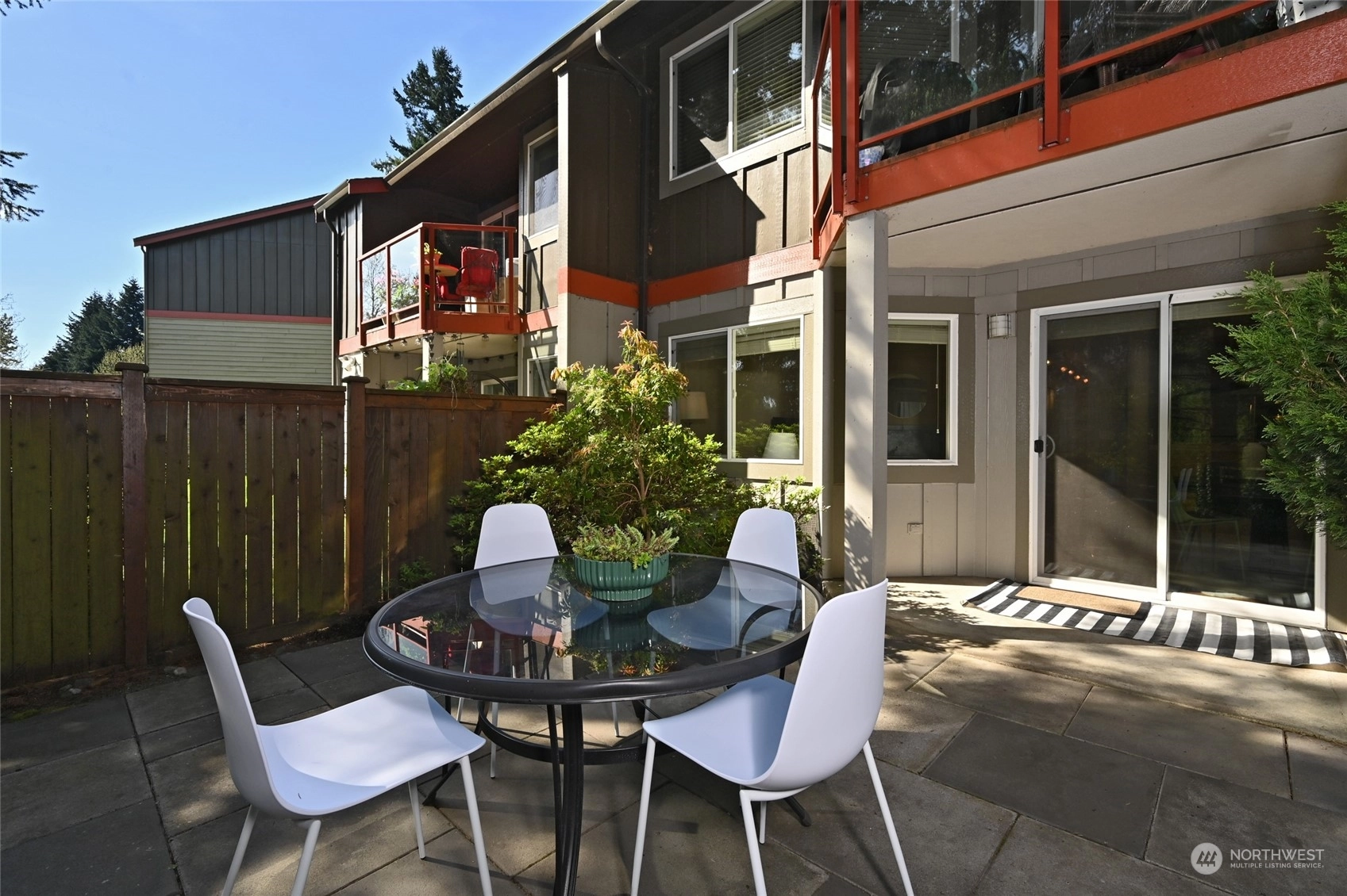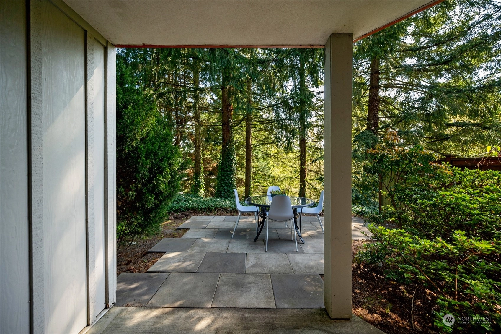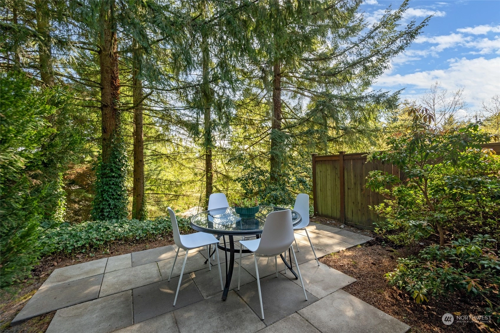 Looking for a tranquil 'turnkey' space? This is a must see for all of you condo dwellers looking for privacy, a large patio and amazing outdoor space! There are so many great features here! Gorgeous [real oak] hardwood floors throughout, a cozy wood burning fireplace, and a nice size kitchen with stainless appliances. A slider opens out to nature... imagine breakfast 'al fresco' before a busy day! Excellent location, just minutes to either DT Kirkland or DT Bellevue and super easy access to 520 or 405. And if you prefer to walk, jog or ride your bicycle, the Corridor is literally steps from the door! Super low HOA dues too!
