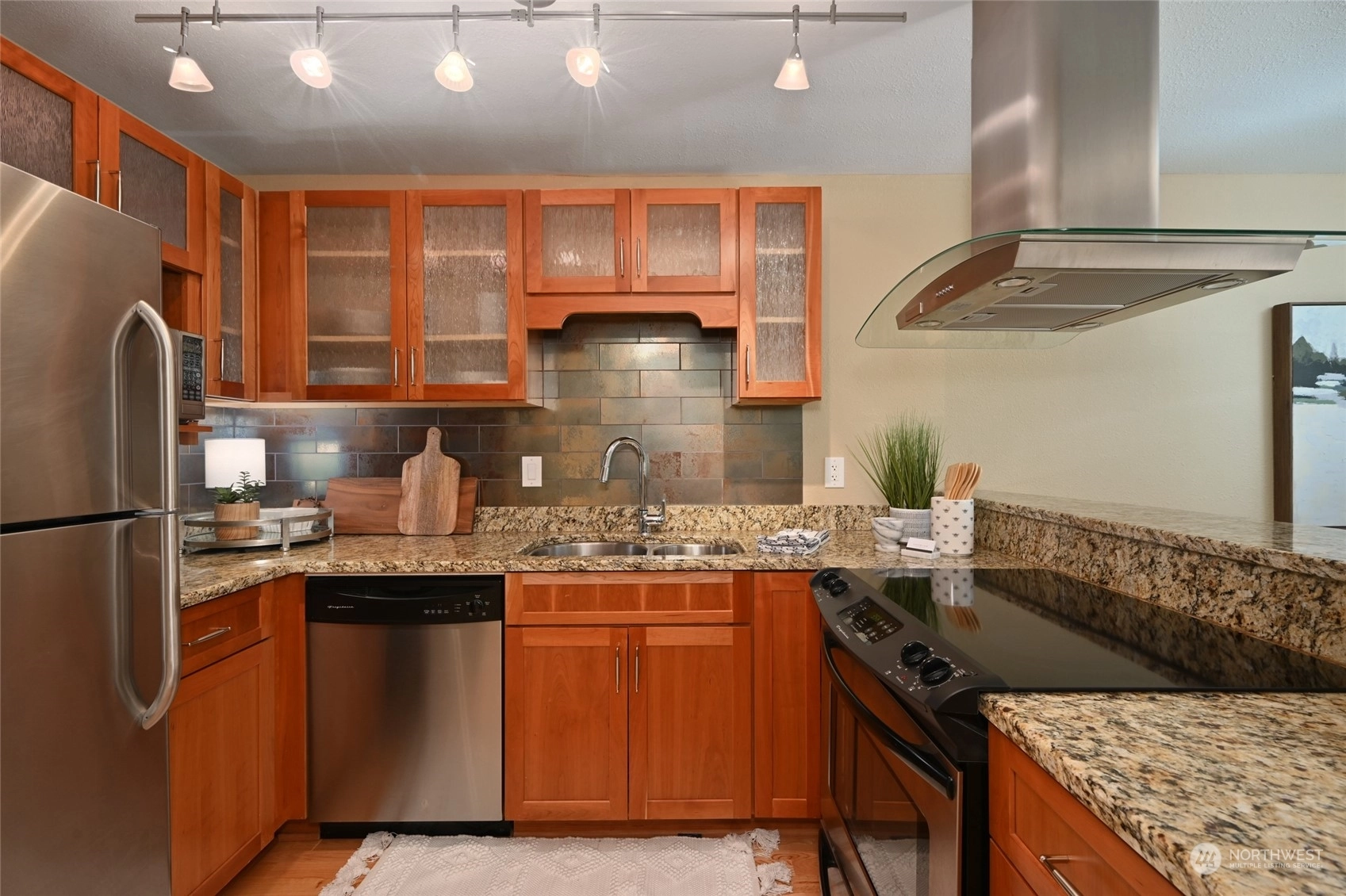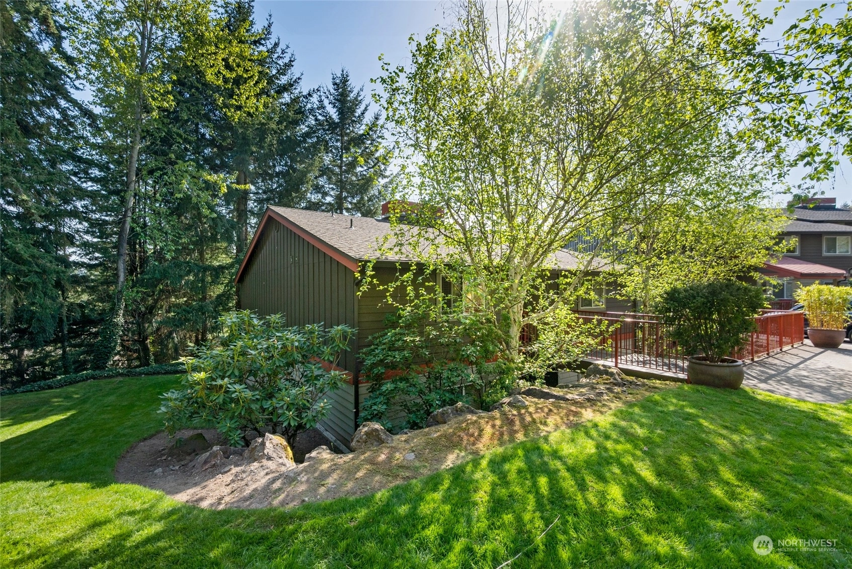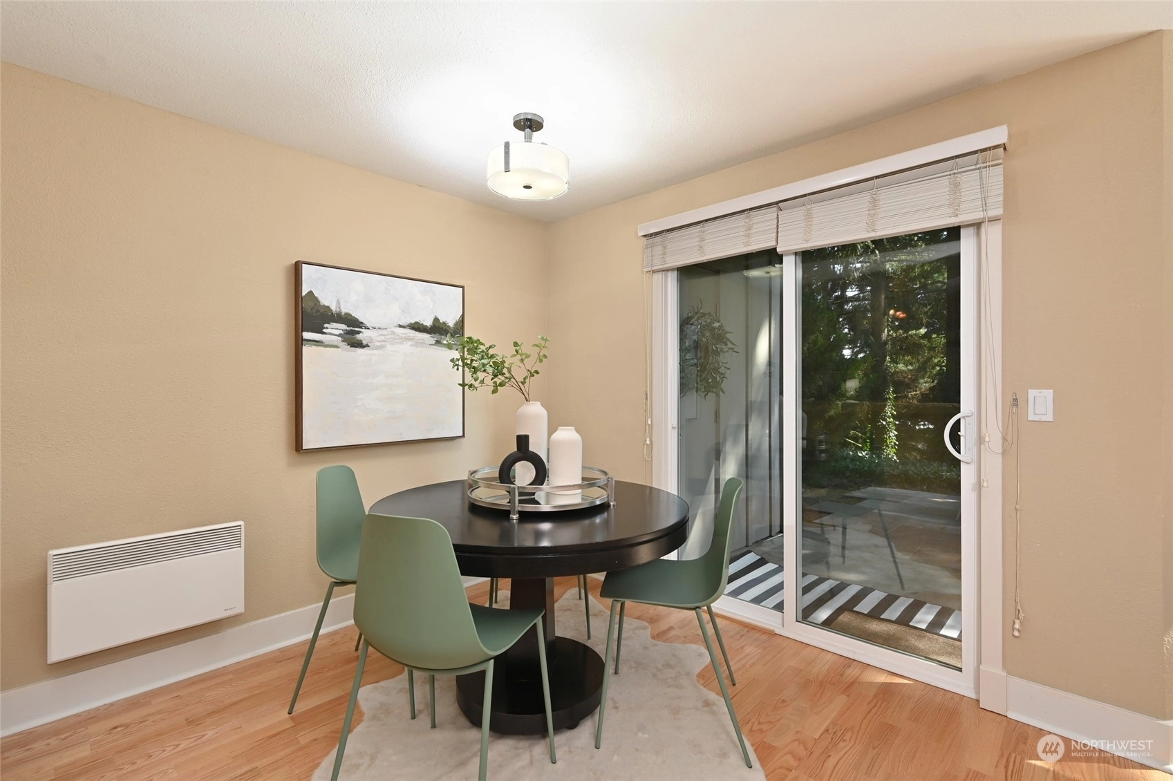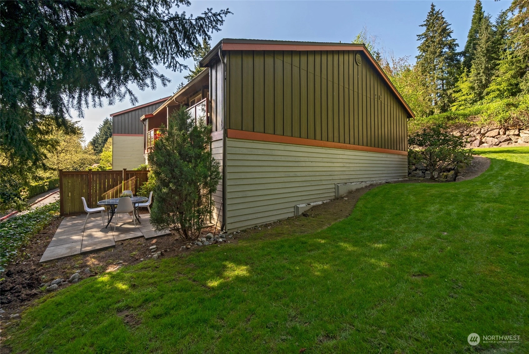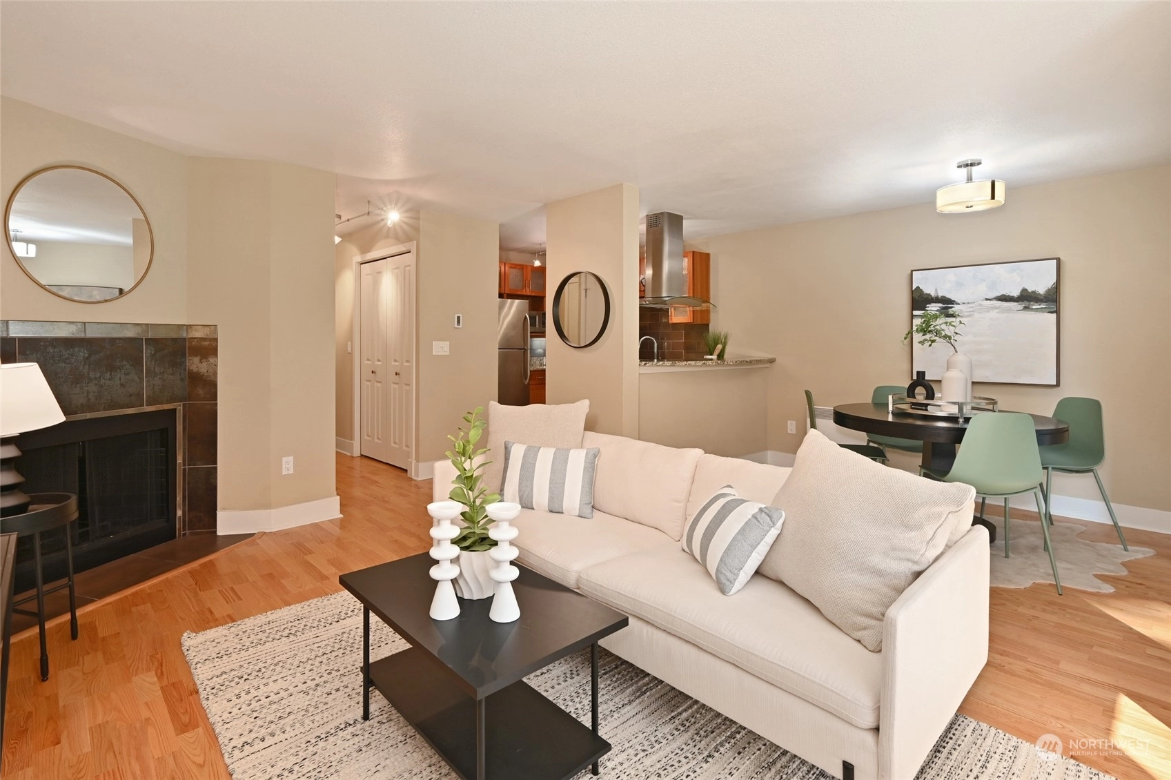 Looking for a tranquil 'turnkey' space? This is a must see for all of you condo dwellers looking for privacy, a large patio and amazing outdoor space! There are so many great features here! Gorgeous [real oak] hardwood floors throughout, a cozy wood burning fireplace, and a nice size kitchen with stainless appliances. A slider opens out to nature... imagine breakfast 'al fresco' before a busy day! Excellent location, just minutes to either DT Kirkland or DT Bellevue and super easy access to 520 or 405. And if you prefer to walk, jog or ride your bicycle, the Corridor is literally steps from the door! Super low HOA dues too!