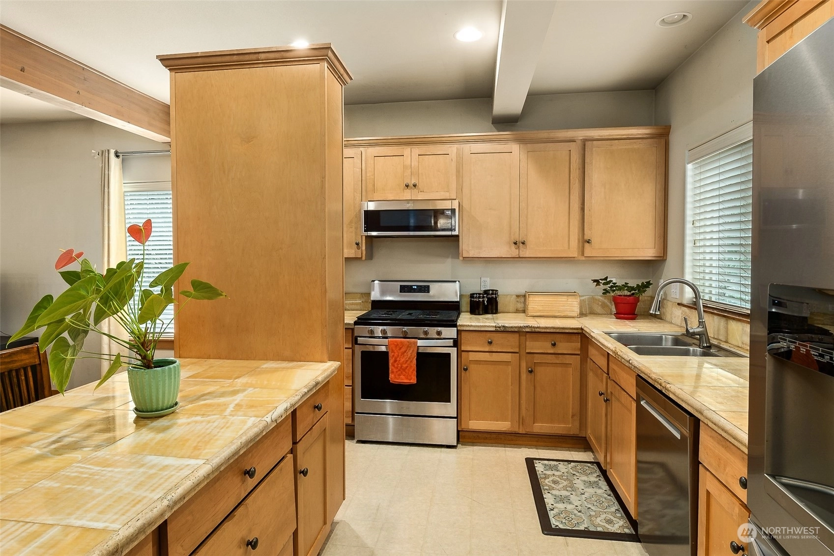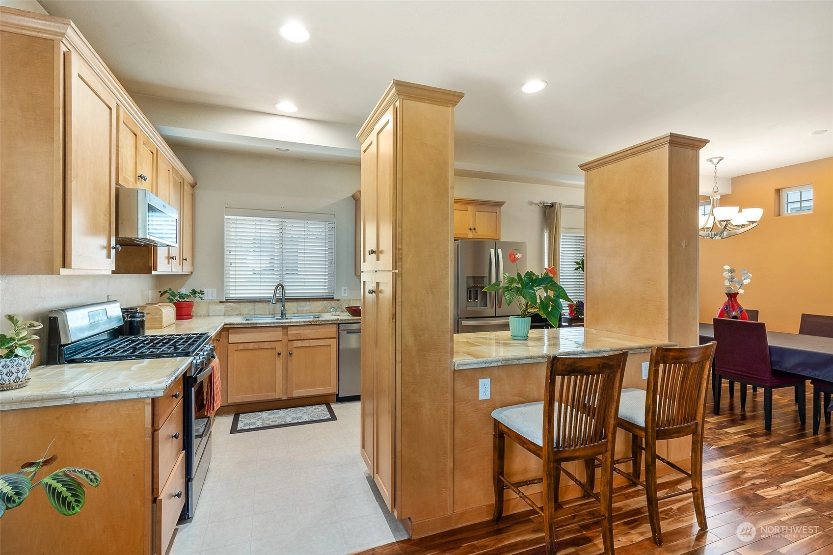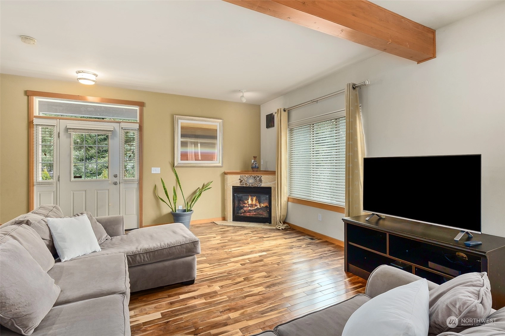 Rare opportunity in desirable Carriage Gardens! Tucked away at the end of a beautifully landcscaped, private enclave, you will find this well maintained Craftsman style home. As you enter, notice the quaint garden-style covered front porch- and then the great room, with impressive wood beamed ceilings and an abundance of windows and natural light. Main floor features gleaming hardwoods, a charming gas fireplace, spacious kitchen with breakfast bar, and formal dining room. Upstairs is your full primary suite, a 5-piece bath, 2 add'l bedrooms and main bath. Bonus room down, perfect for media/office/flex. Beautiful, professionally maintained gardens, fabulous location near the new Orange Line to Light Rail, and award winning Edmonds schools!